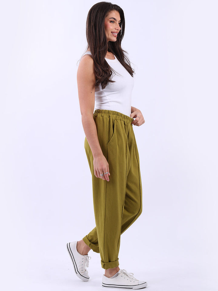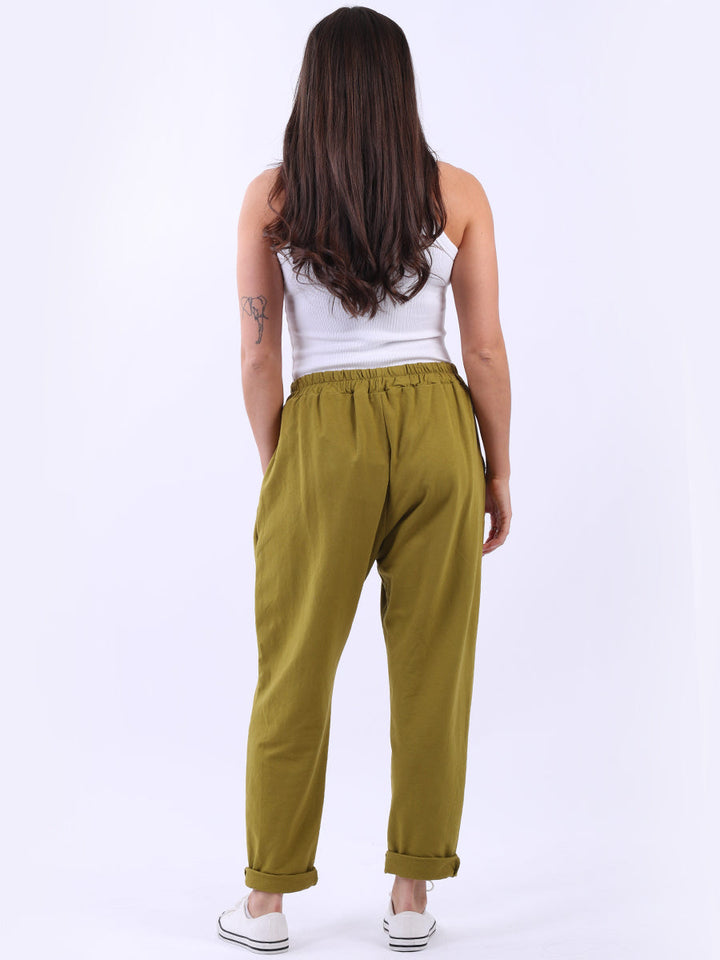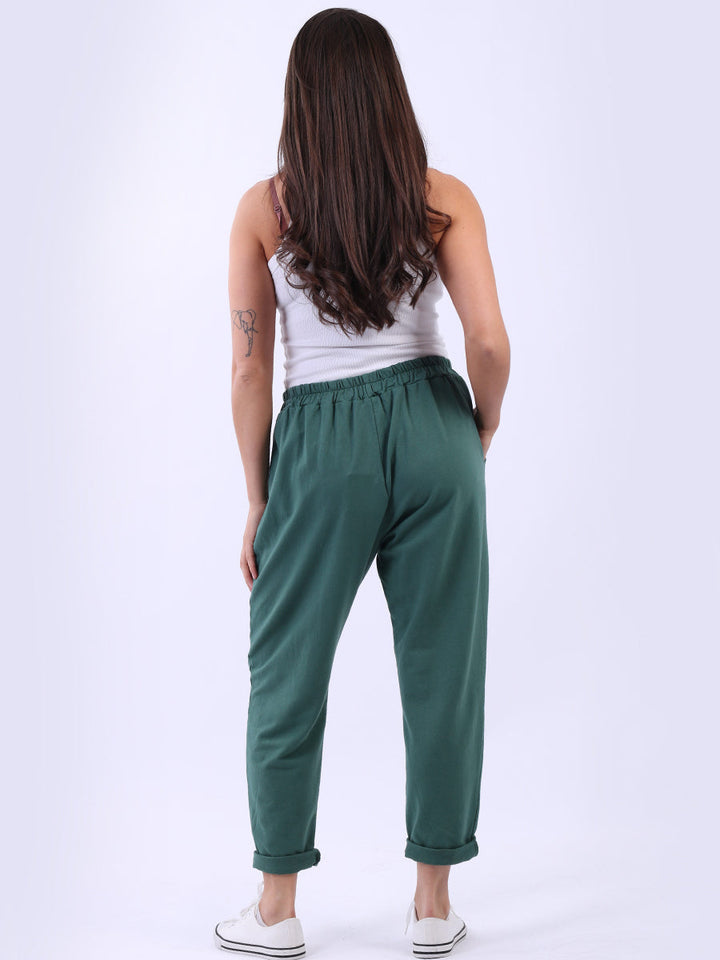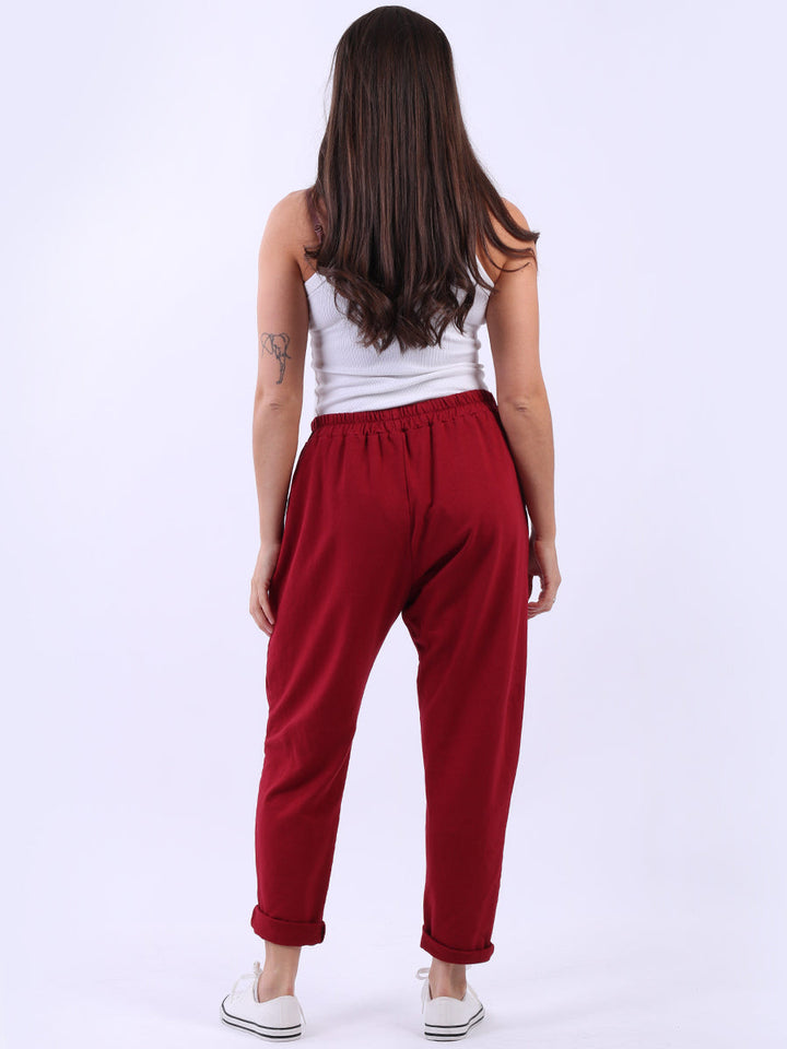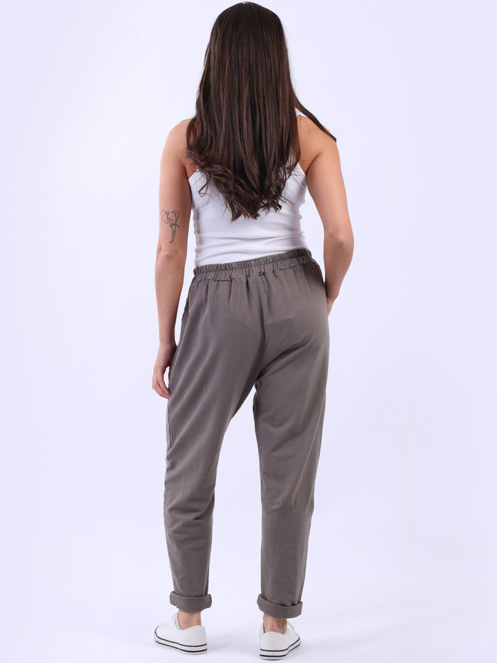 Opt for old-money aesthetics with these made-in-Italy regular-fit cotton joggers brought to women by Wholesale Fashion Store London. These pants feature a comfortable elastic waist and practical side pockets while keeping the overall design simple with a plain hue and rolled-up hem.