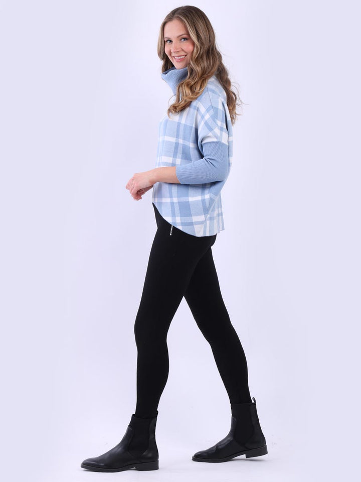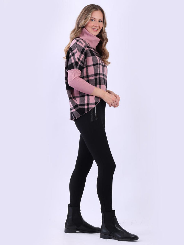 Check Print Cowl Neck Batwing Lagenlook Knitted Jumper