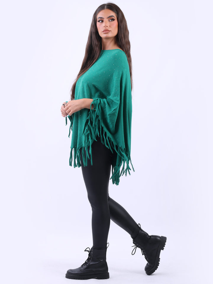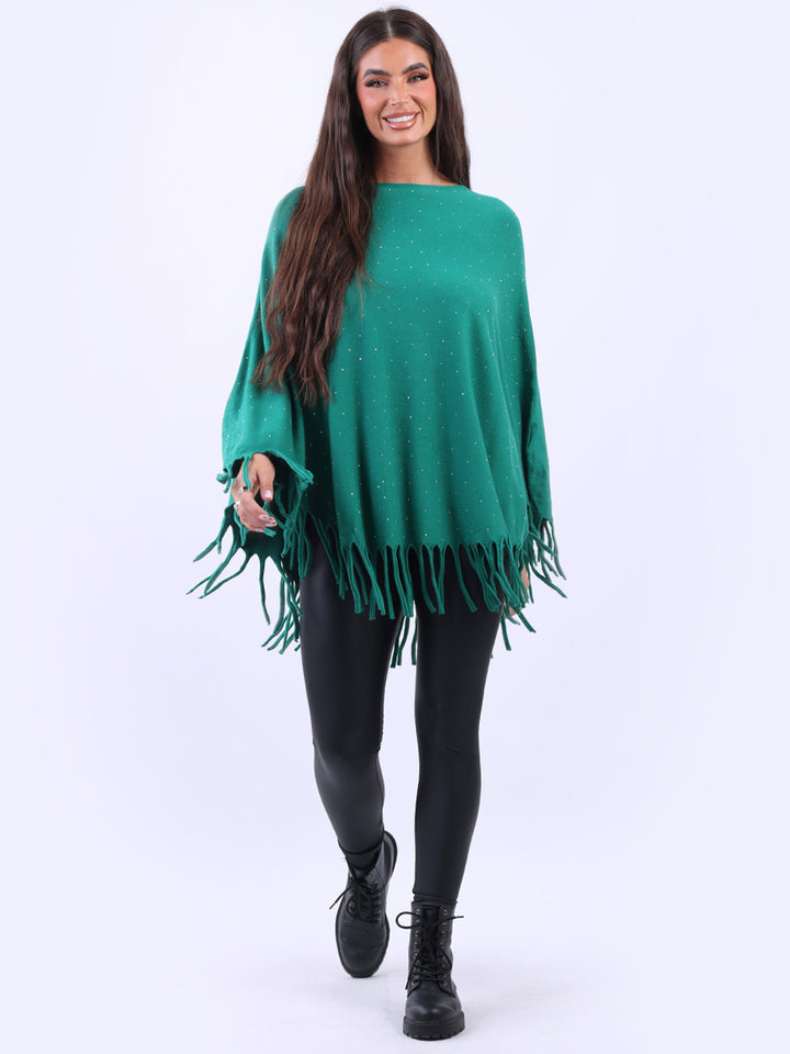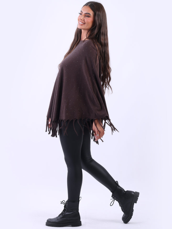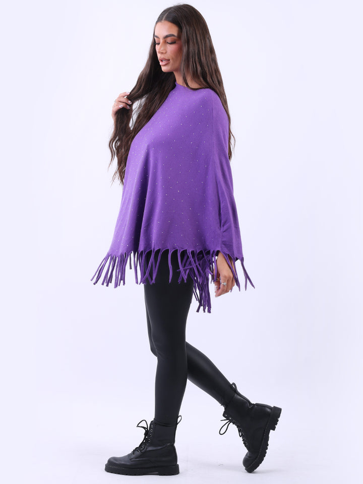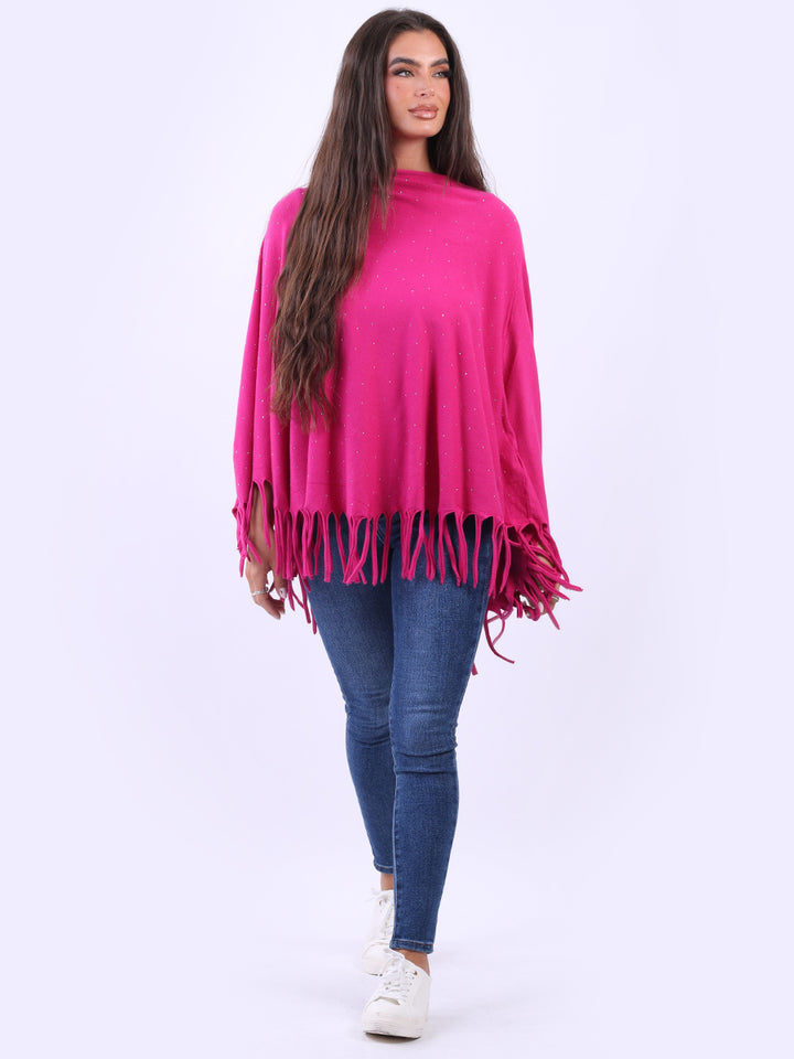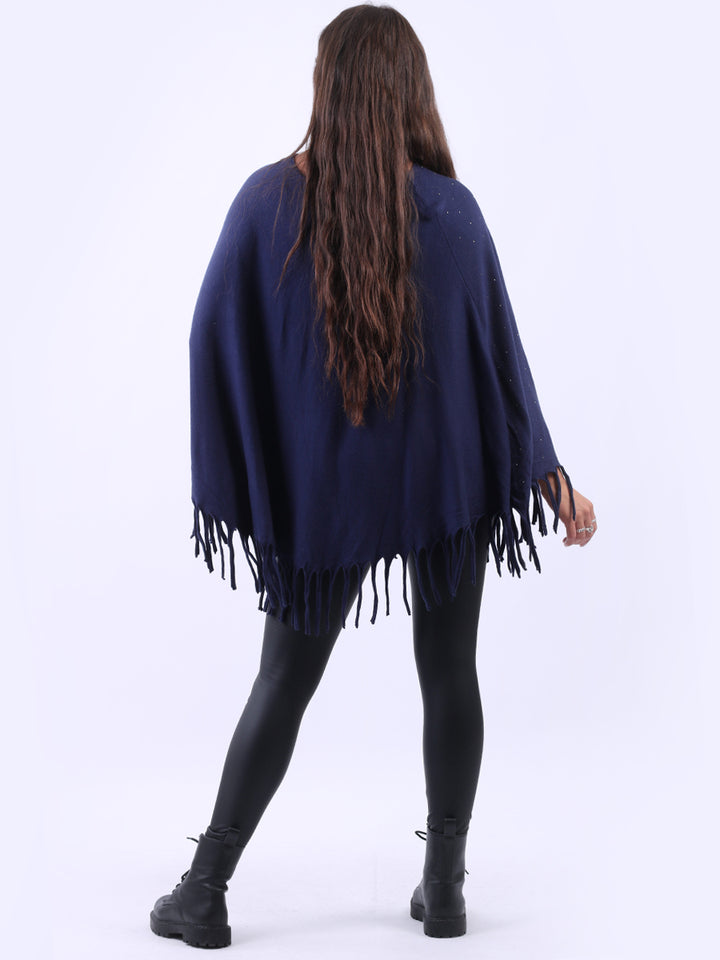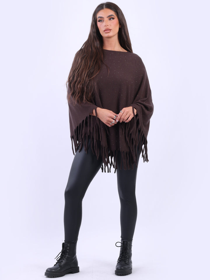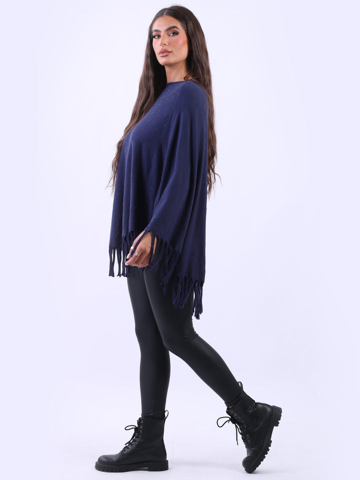 Chunky Fringed-Hem Glittery Women Knitted Poncho
