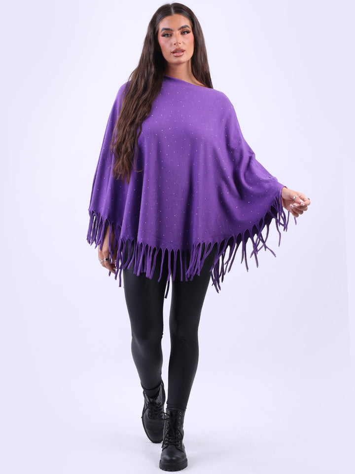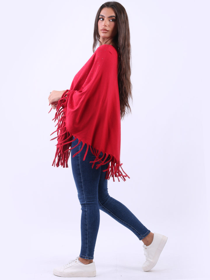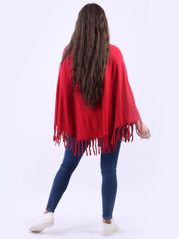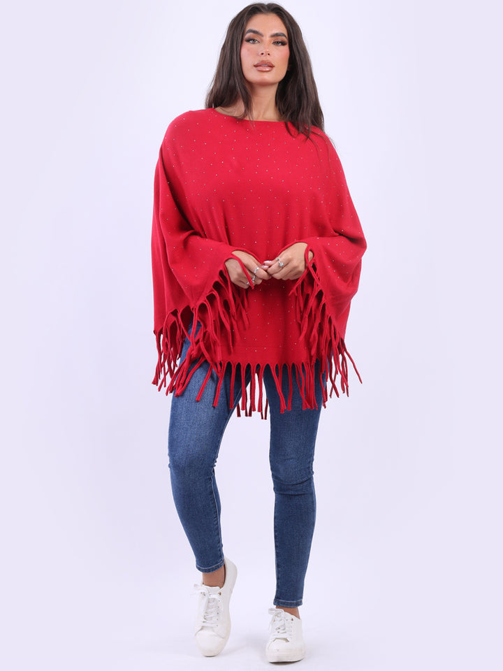 Glamorous and gorgeous with all the finesse of ideal soft fabric fibers that give a feel of heavenly softness. Redwholesale women knitted poncho featured with boat neckline, draping shoulders with flirty fringe at the hem, lagenlook plus size fit and glittery detailing. Dress it over skinny denims for adventurous finish.