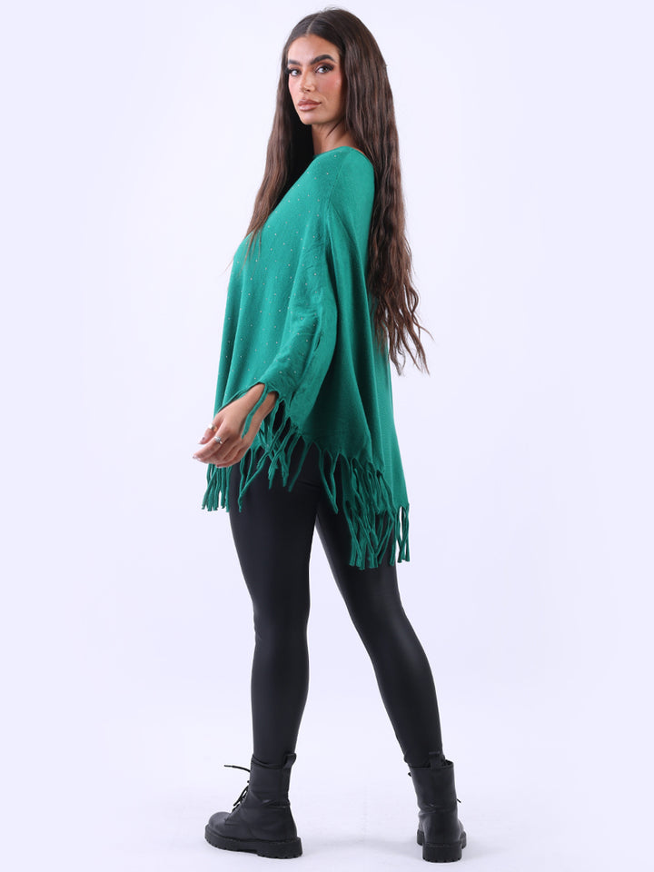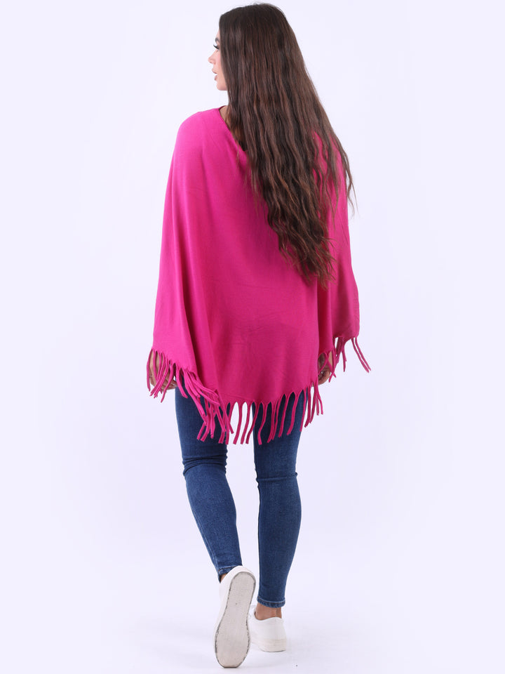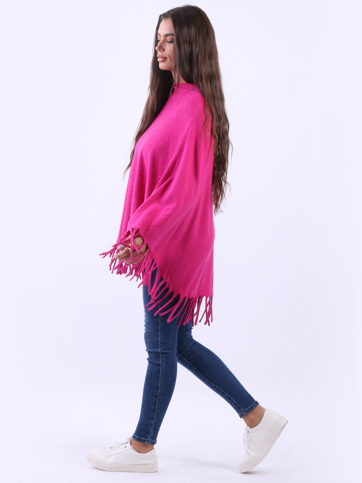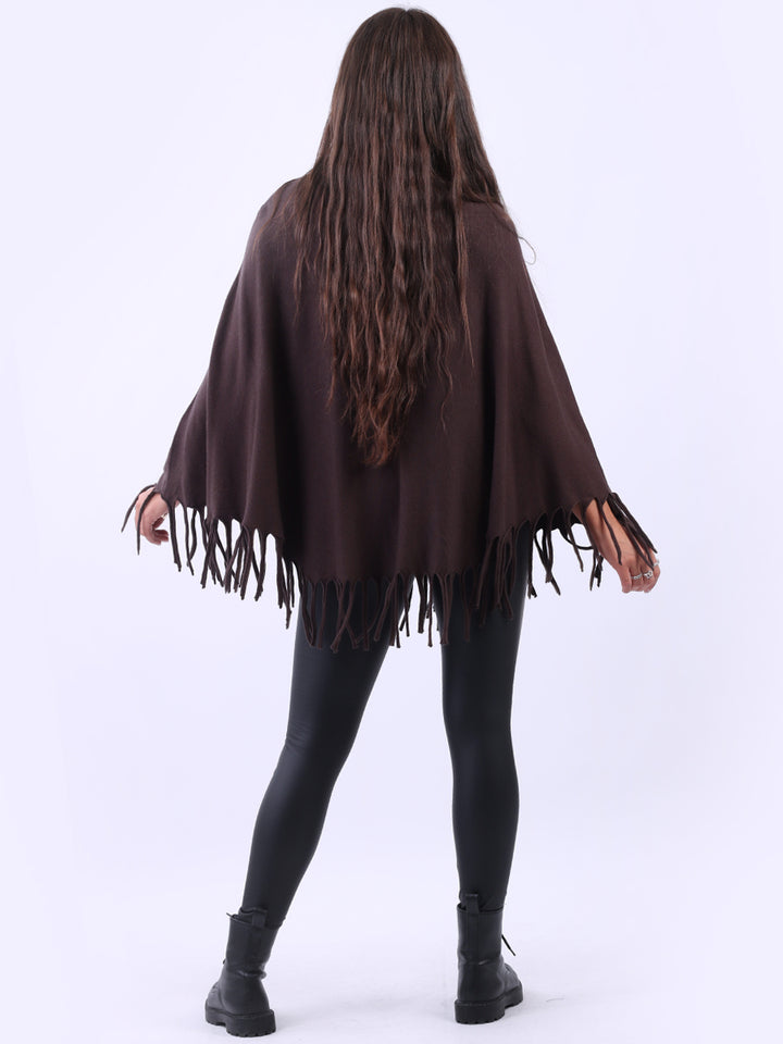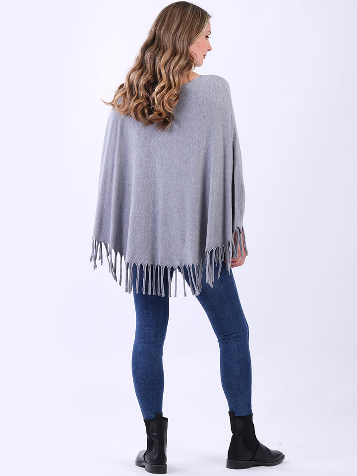 Glamorous and gorgeous with all the finesse of ideal soft fabric fibers that give a feel of heavenly softness. Redwholesale women knitted poncho featured with boat neckline, draping shoulders with flirty fringe at the hem, lagenlook plus size fit and glittery detailing. Dress it over skinny denims for adventurous finish.