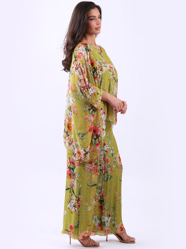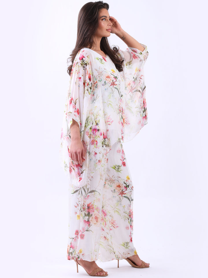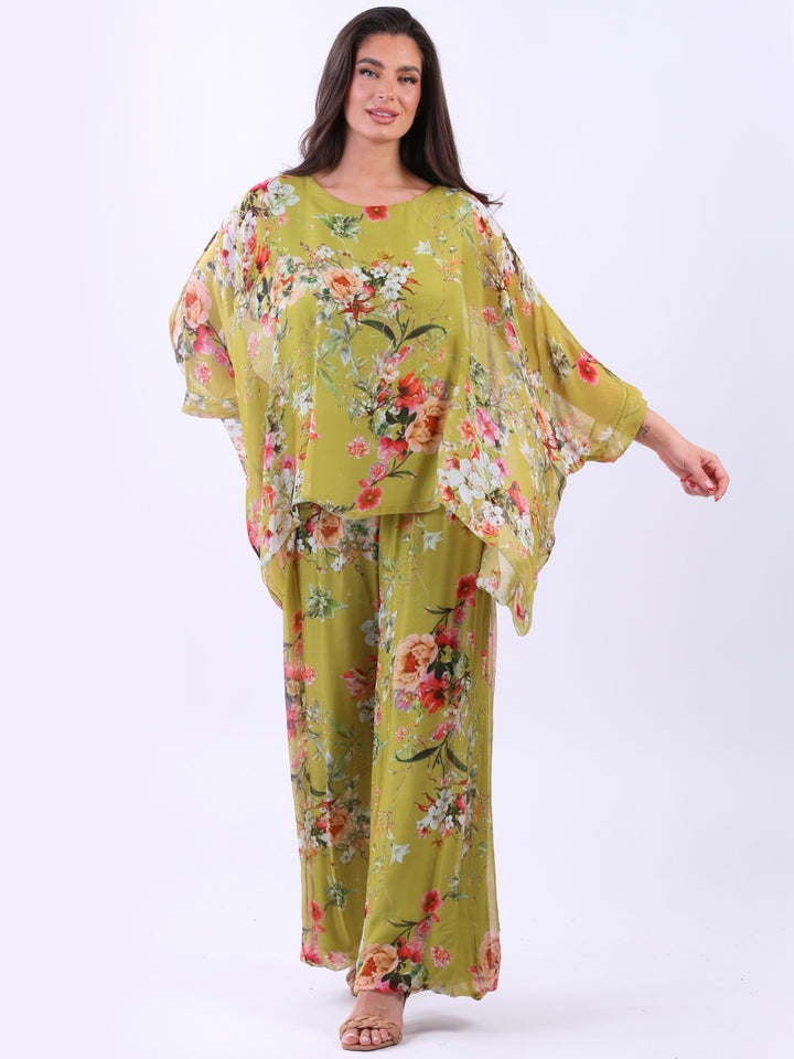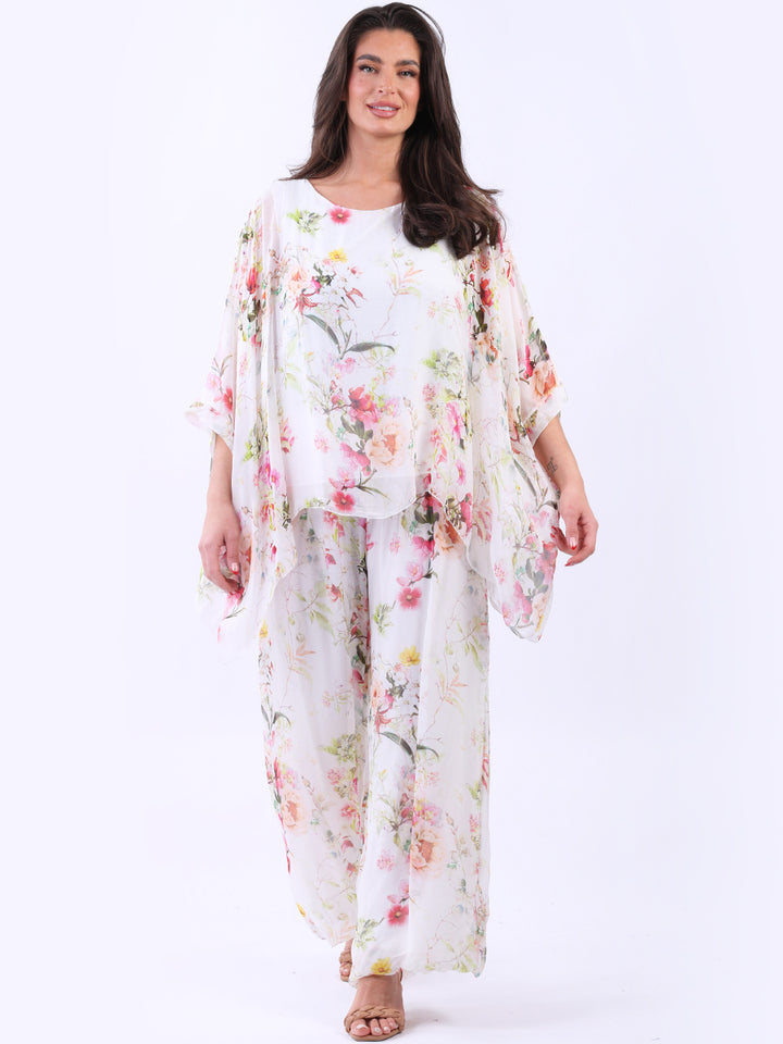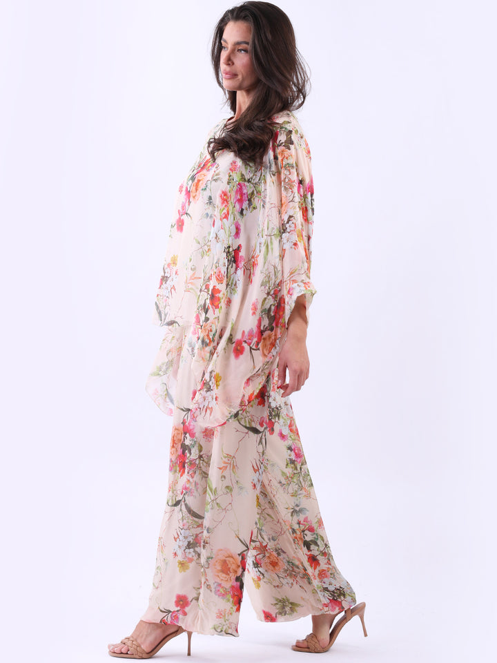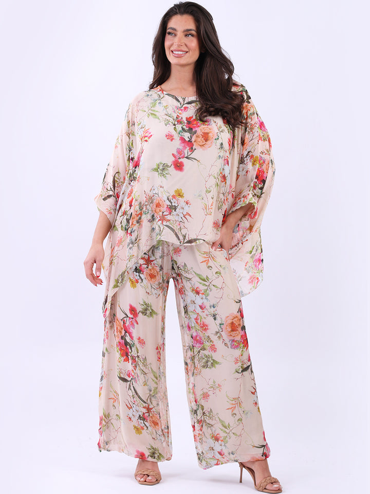 Luxurious and full of character that is charismatic and attractive. The posh and high end silk is made in Italy to ensure perfection and purity. The silk top has stunning floral print, wide round neckline, essential and soft under lining handling sleeves. The two layer top is ideal for formal events or even a take along to the work place. Dress with wide leg pants and square heels.