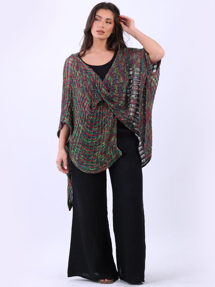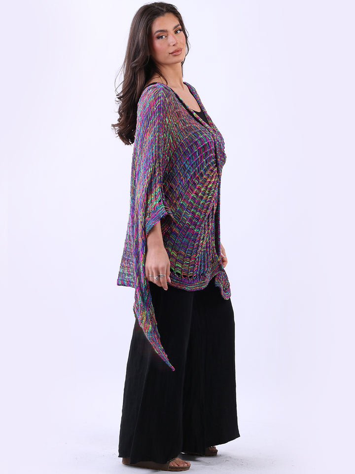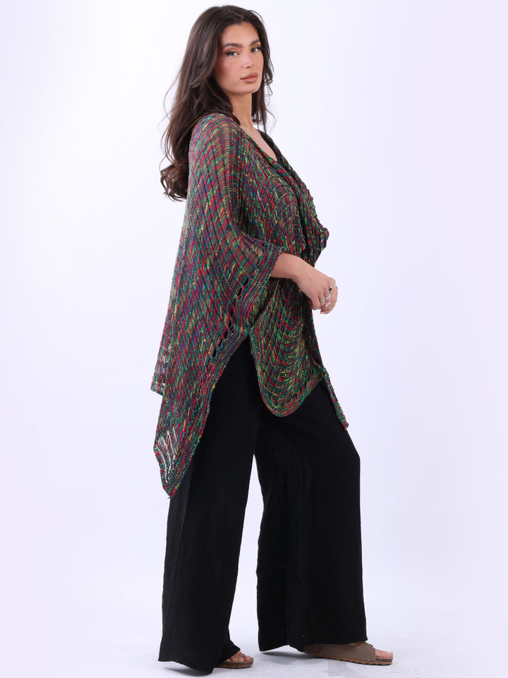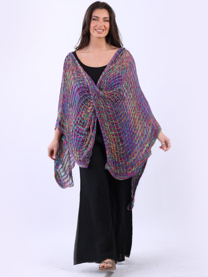 Dressing up for every place and situation is a dream of the women wearers that is realized with this ideal made in Italy beach cover-up. This is an ideal mixture of form, features and fabric with pure and authentic fabric that is soft on the skin and very attractive with its multicolor finish. Plunging free style baggy neckline, flared hem and crotchet style intricate woven finish makes it sensual and sensational. Layer it over beach wear and women wearers can feel more confident and attractive.