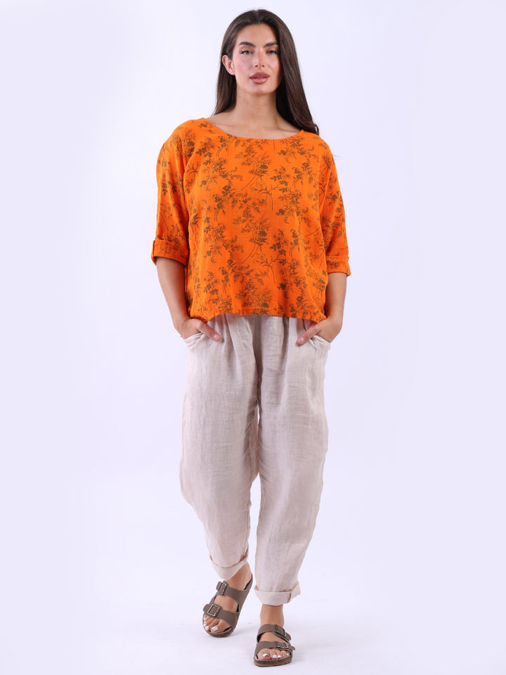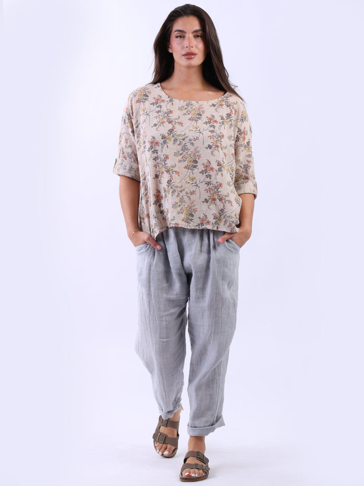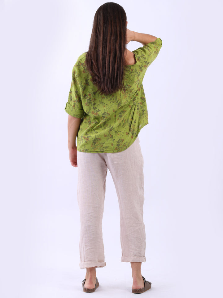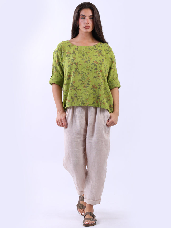 Exclusively designed for women this baggy crop top is adorned with a small delicate floral print. Fashionista ladies love it for its simple and versatile features like a bay neckline, rolled-up sleeves, and relaxed fit. Pair it with slim fit jeans or tailored trousers for a cool and chic look.