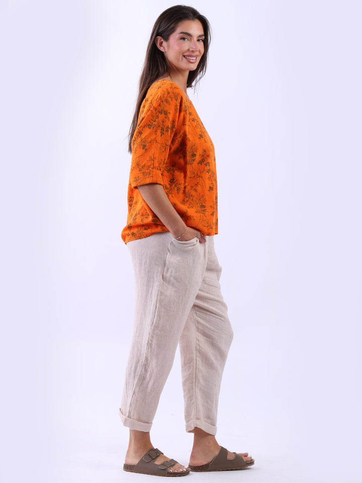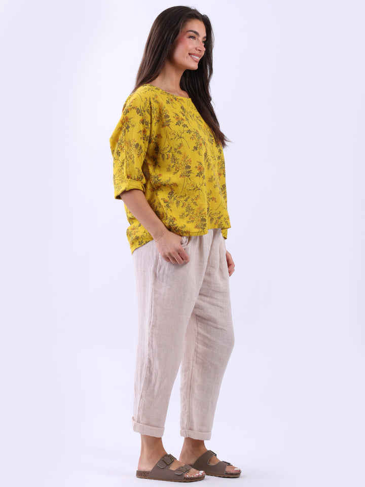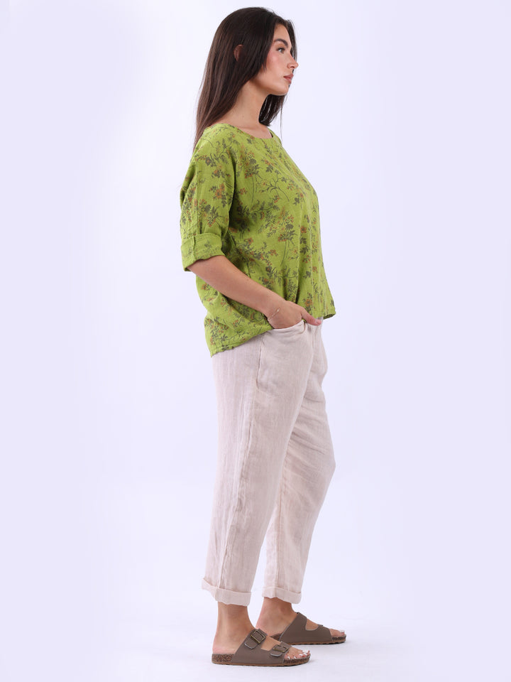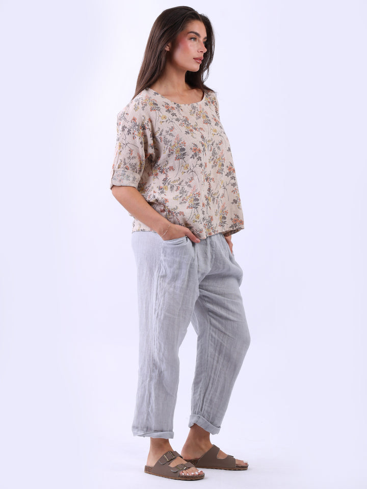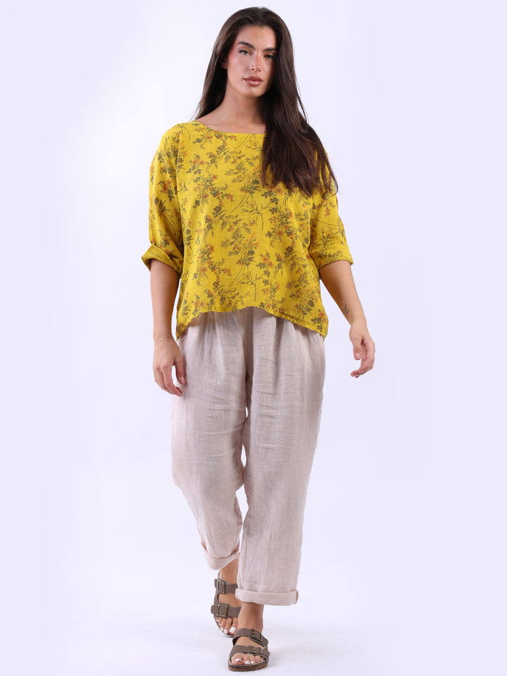Exclusively designed for women this baggy crop top is adorned with a small delicate floral print. Fashionista ladies love it for its simple and versatile features like a bay neckline, rolled-up sleeves, and relaxed fit. Pair it with slim fit jeans or tailored trousers for a cool and chic look.