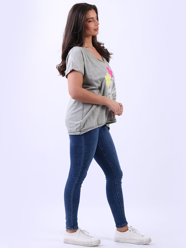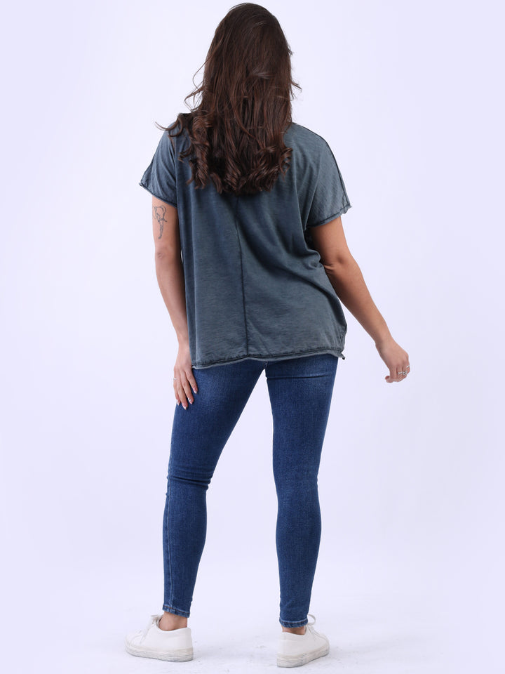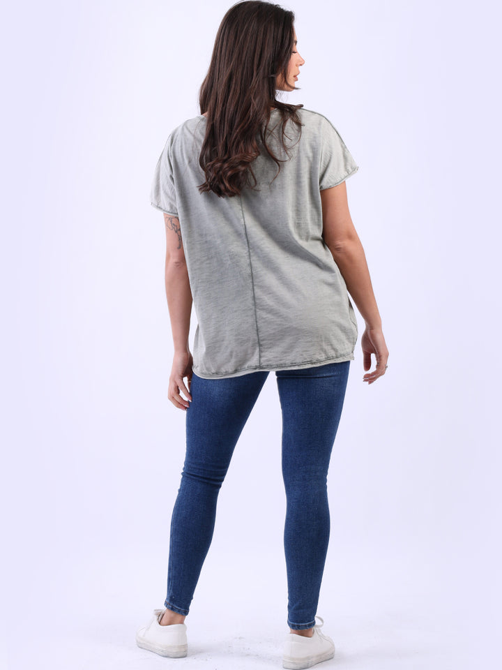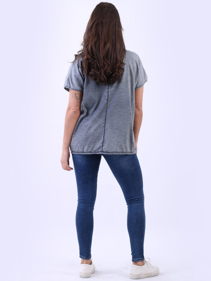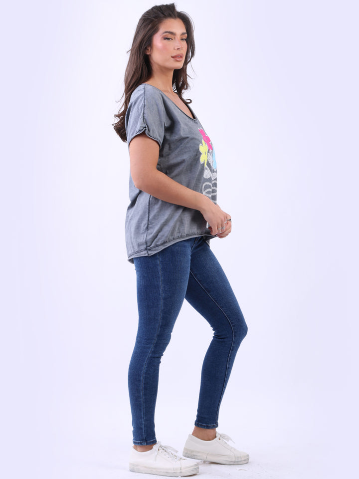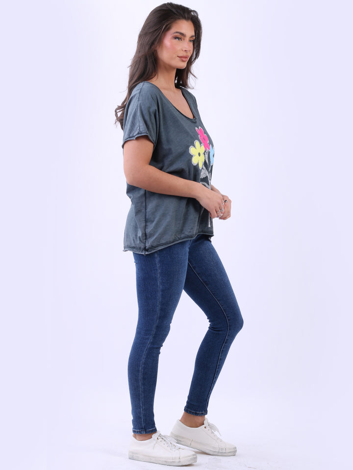 Refreshing and refined this is the style that is extremely popular among women wearers as its unique yet classy. Made in Italy with finest and high quality cotton that is pure and soft, the tee is feature rich and stunning. Plunging deep scoop neckline is sensual, embossed style intricate floral bouquet print, vintage wash detailing and baggy plus size fit is desirable among ladies for its authentic looks and comfort. Team it with capris and sandals for timeless finish.