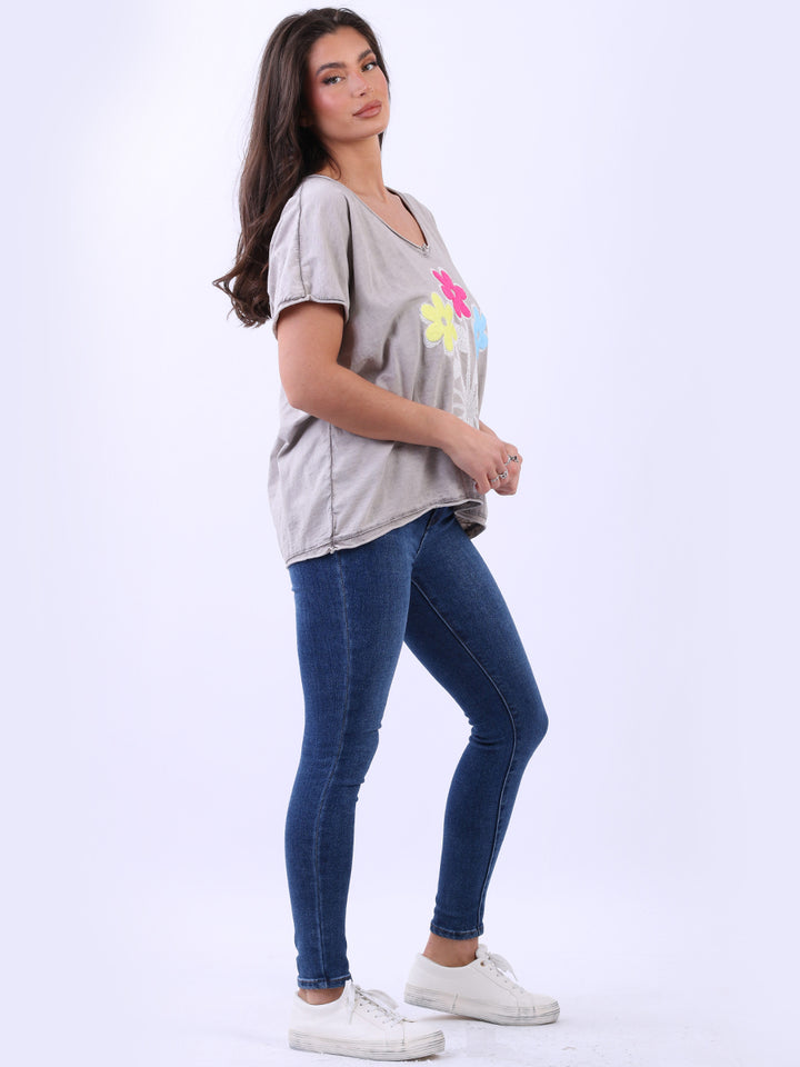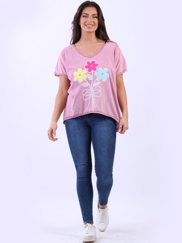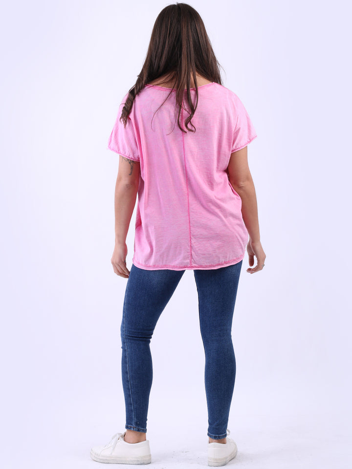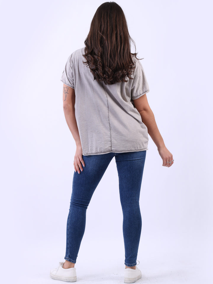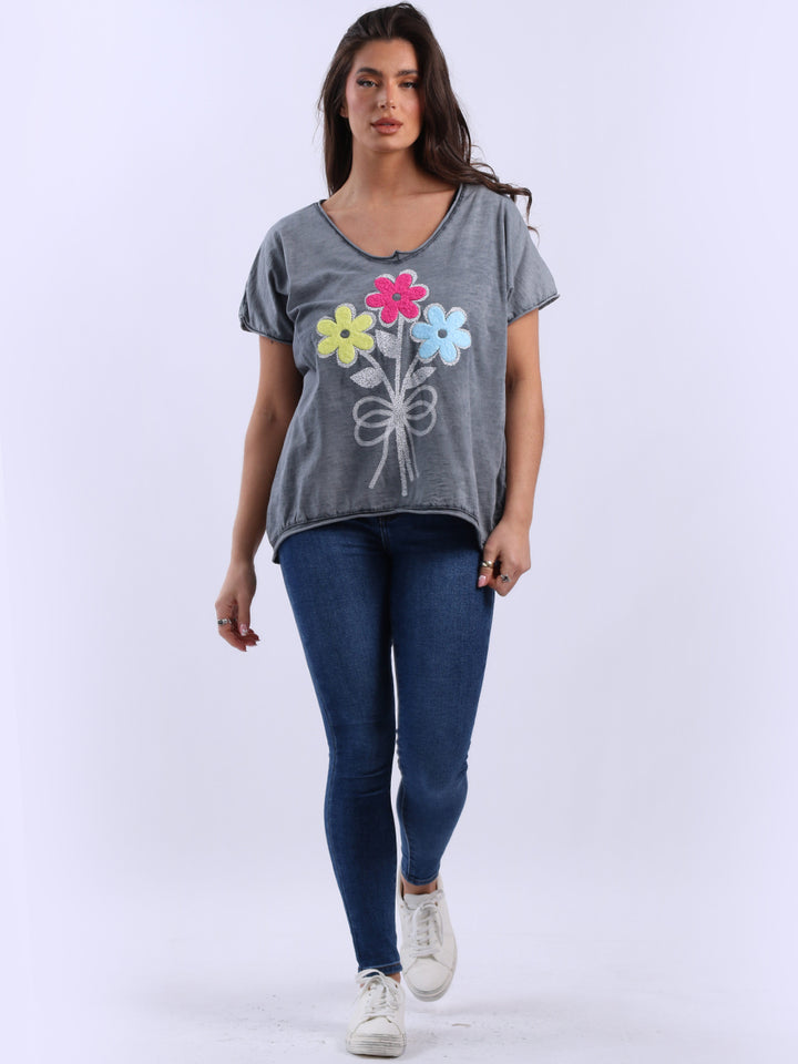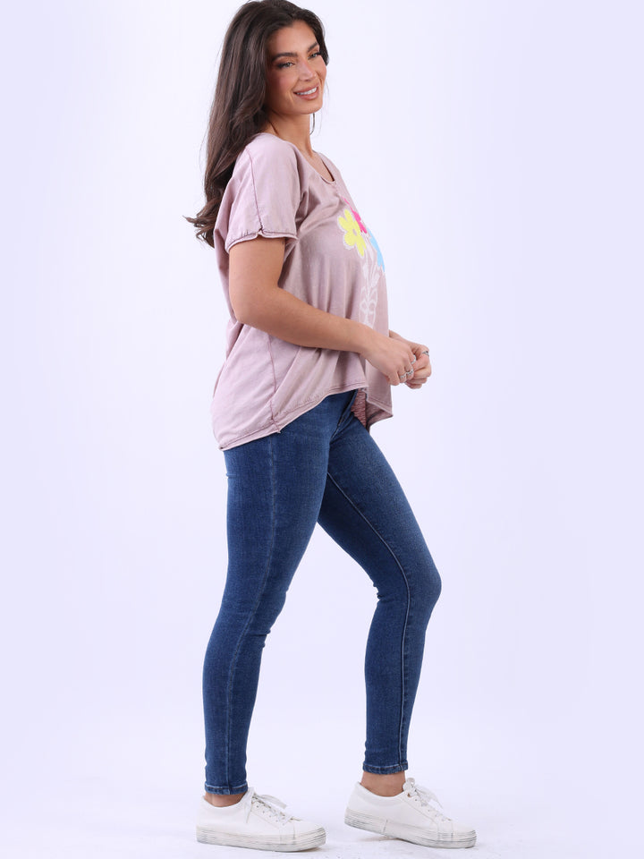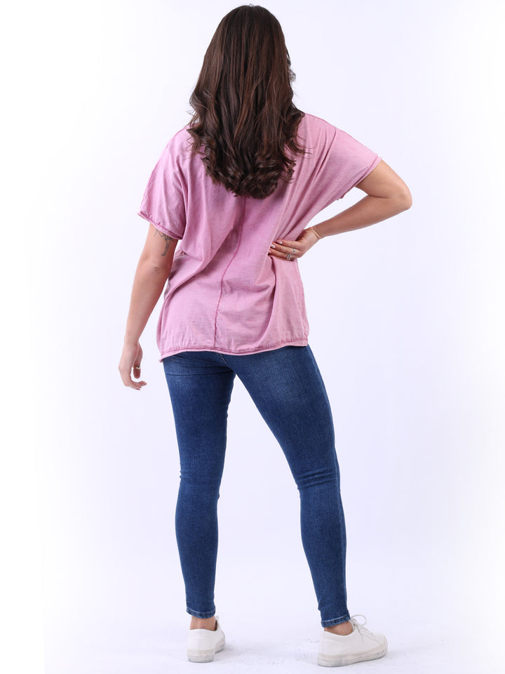 Refreshing and refined this is the style that is extremely popular among women wearers as its unique yet classy. Made in Italy with finest and high quality cotton that is pure and soft, the tee is feature rich and stunning. Plunging deep scoop neckline is sensual, embossed style intricate floral bouquet print, vintage wash detailing and baggy plus size fit is desirable among ladies for its authentic looks and comfort. Team it with capris and sandals for timeless finish.