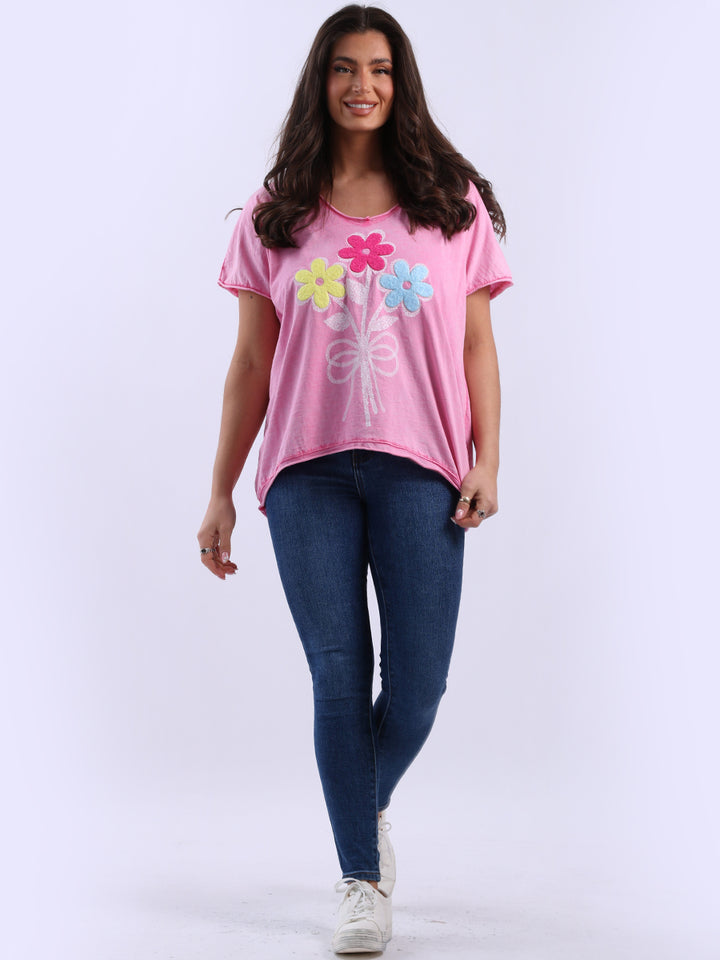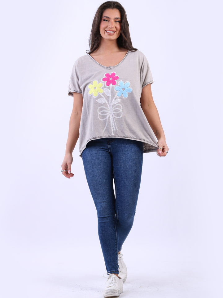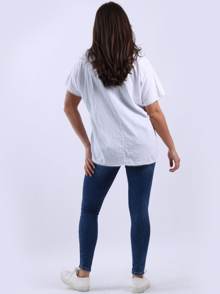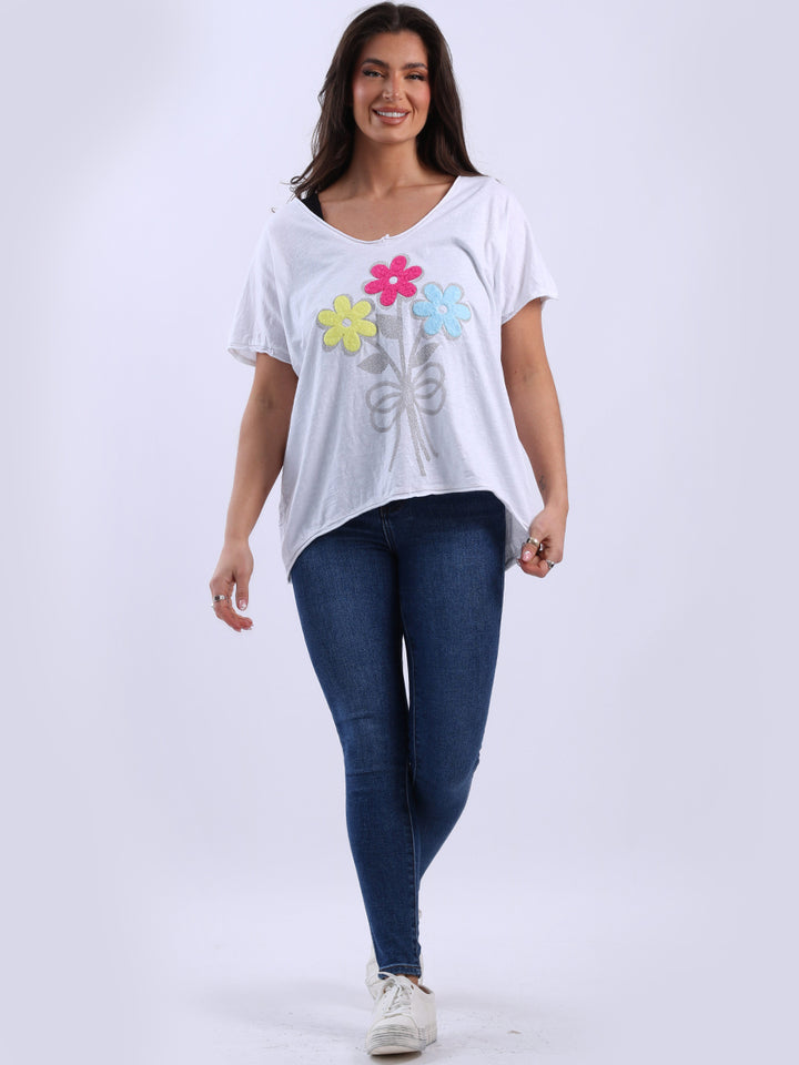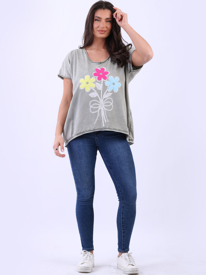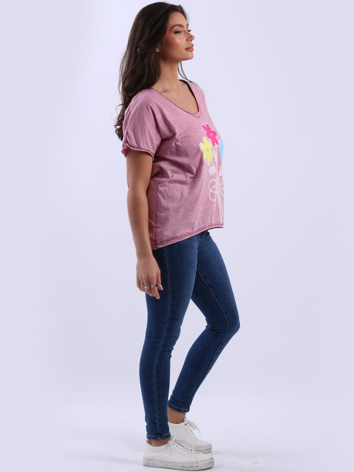 Refreshing and refined this is the style that is extremely popular among women wearers as its unique yet classy. Made in Italy with finest and high quality cotton that is pure and soft, the tee is feature rich and stunning. Plunging deep scoop neckline is sensual, embossed style intricate floral bouquet print, vintage wash detailing and baggy plus size fit is desirable among ladies for its authentic looks and comfort. Team it with capris and sandals for timeless finish.