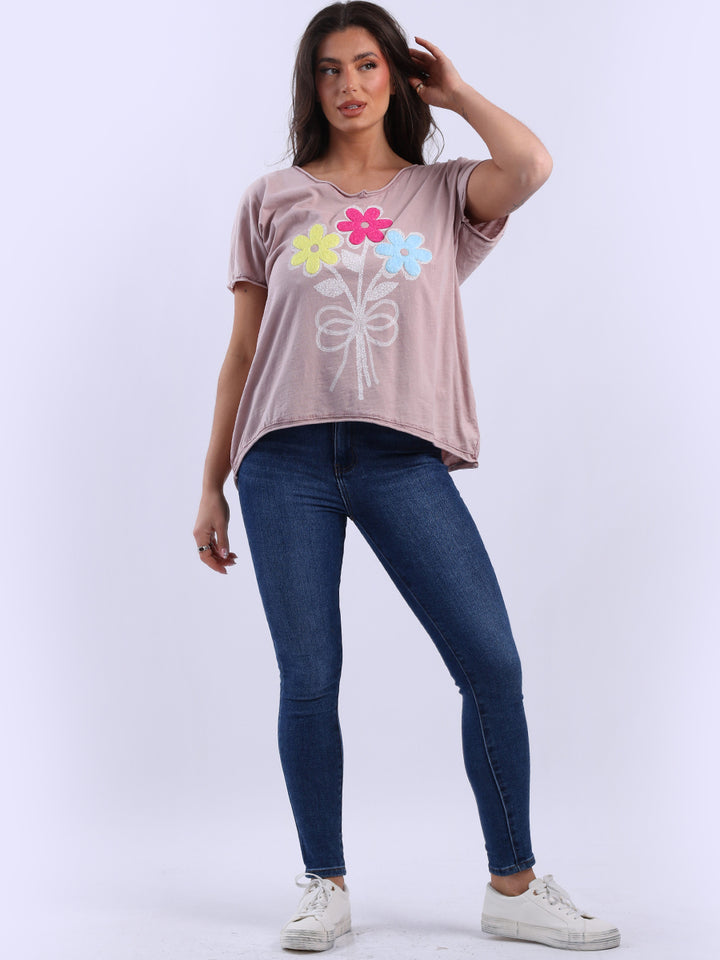 Italian Flower Bouquet Vintage Wash Cotton Boxy Crop Tee