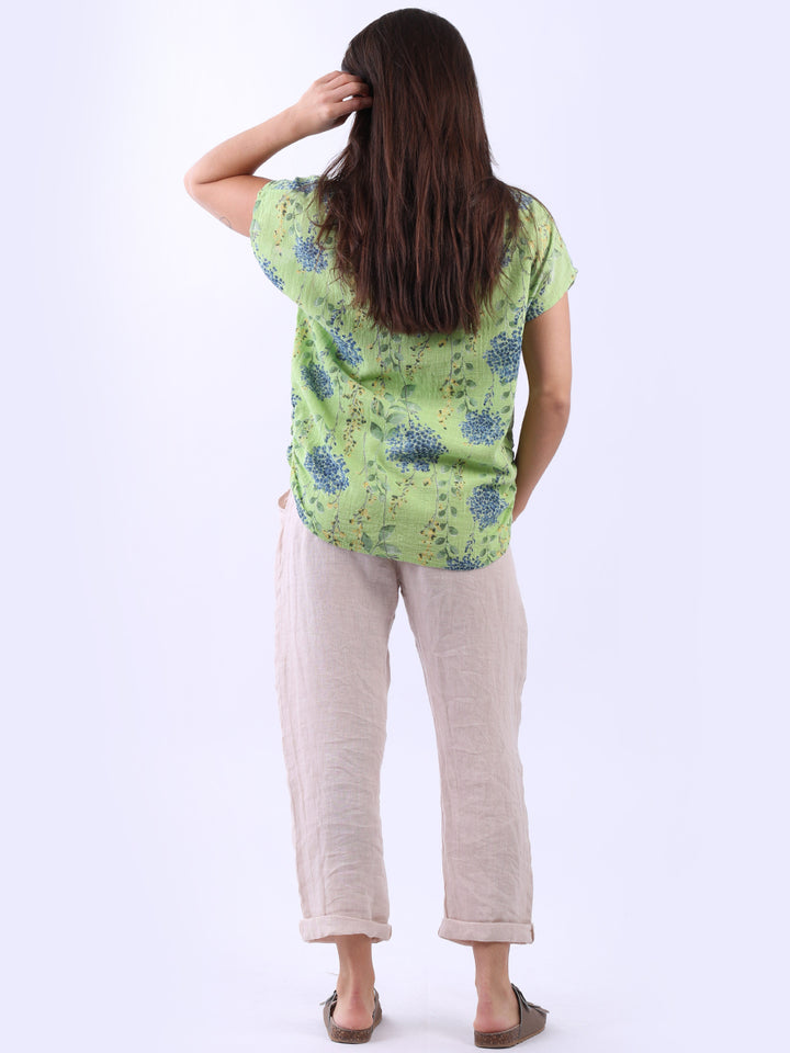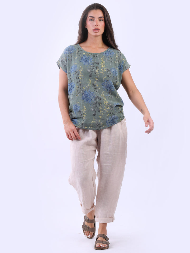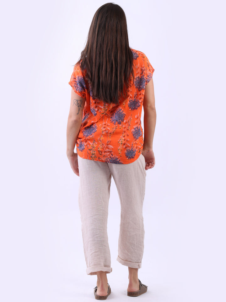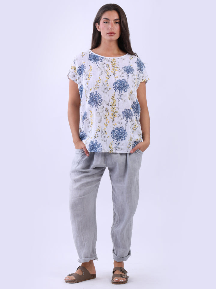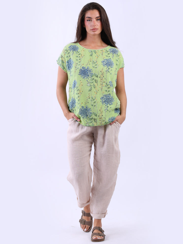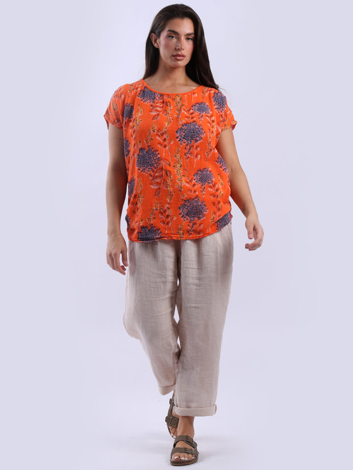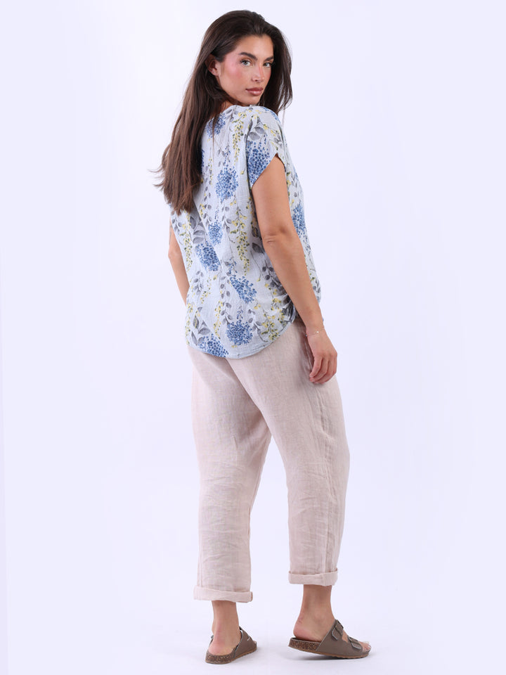 Get into the charm of this Italian cotton crop top, adorned with a captivating garden print. It ensures a cool & comfortable experience all day with a loose fit, baggy sleeves and a round neckline. Create a casual yet elegant look by pairing it with slim-fit jeans all summer.