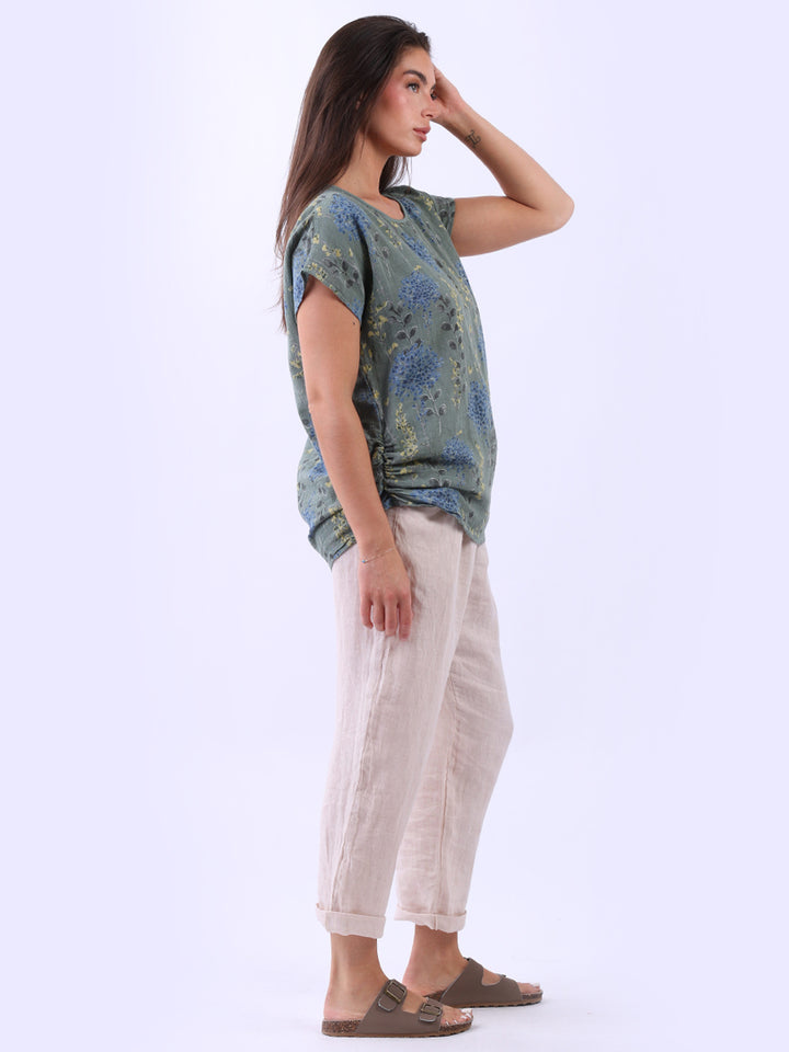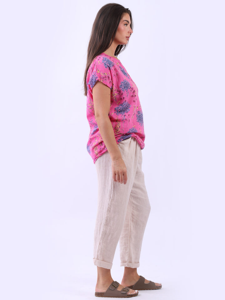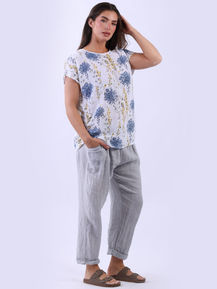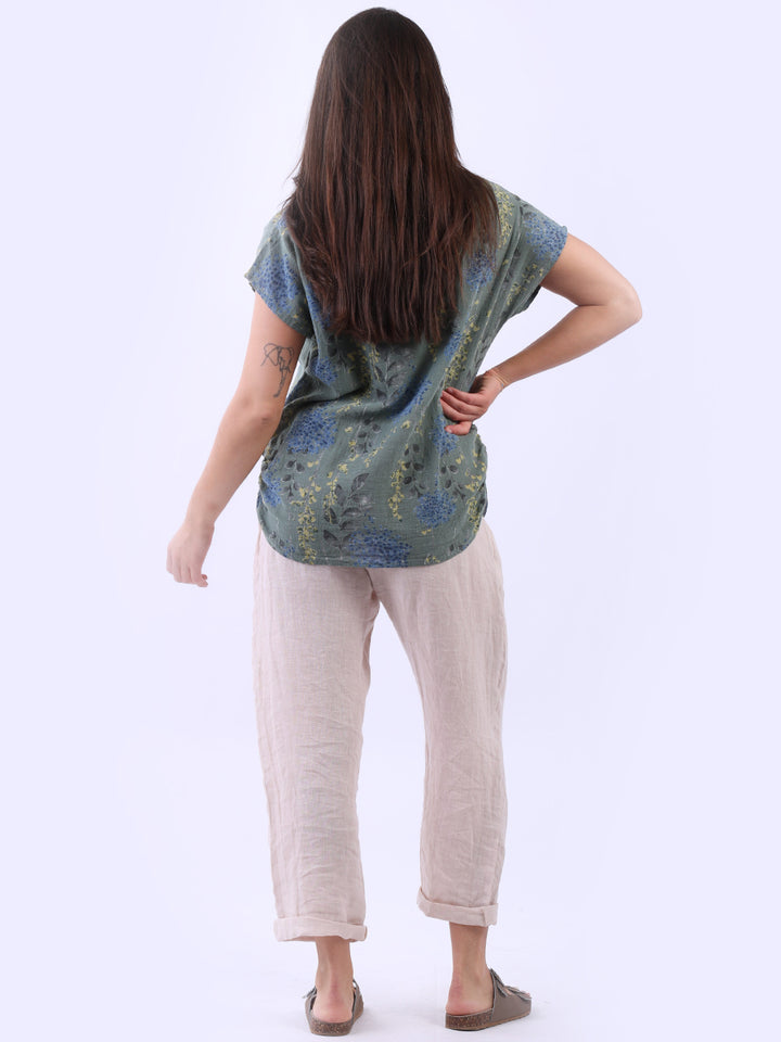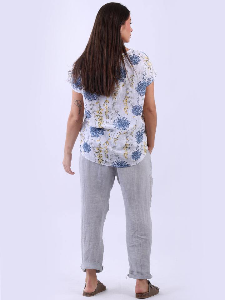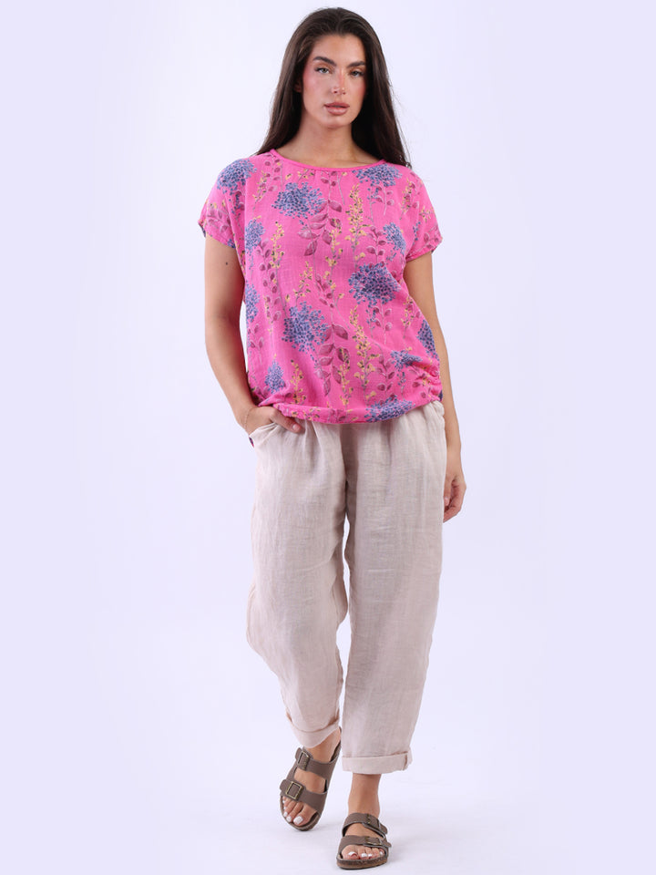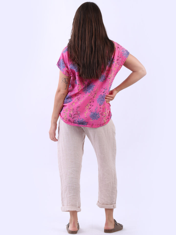 Get into the charm of this Italian cotton crop top, adorned with a captivating garden print. It ensures a cool & comfortable experience all day with a loose fit, baggy sleeves and a round neckline. Create a casual yet elegant look by pairing it with slim-fit jeans all summer.
