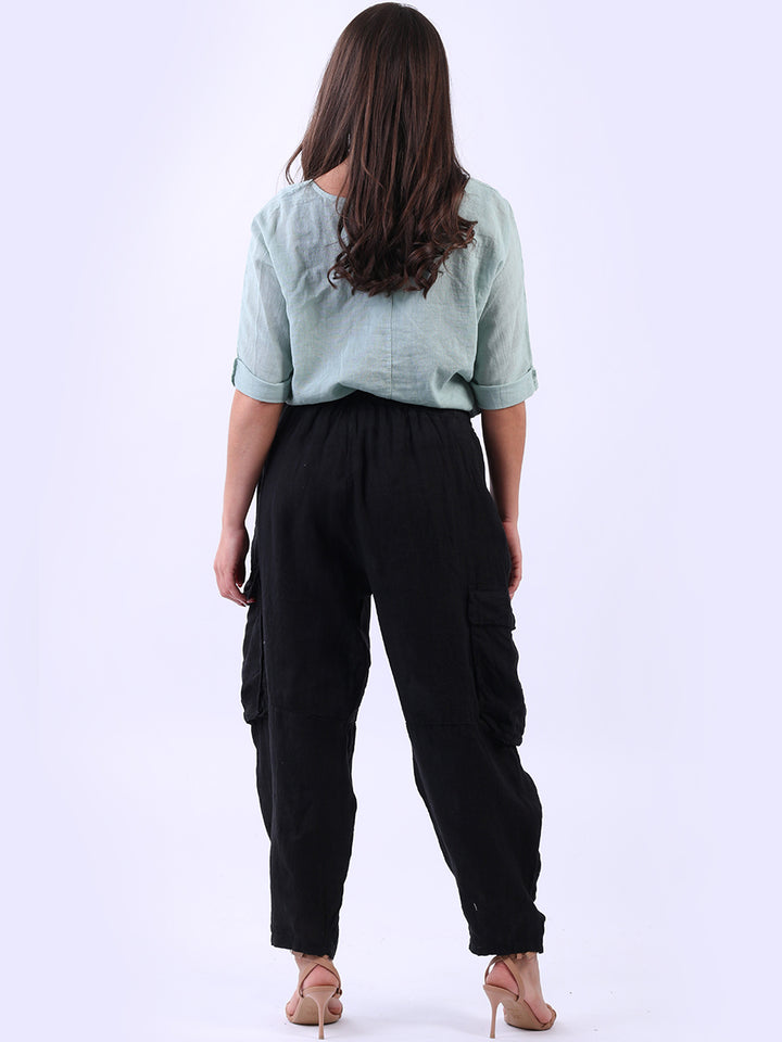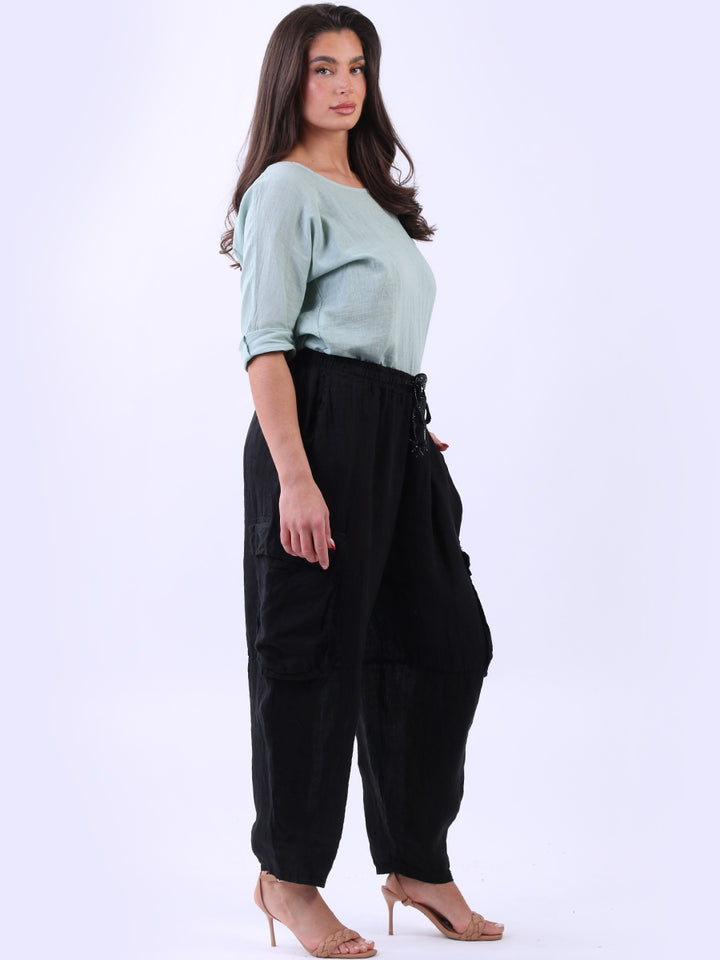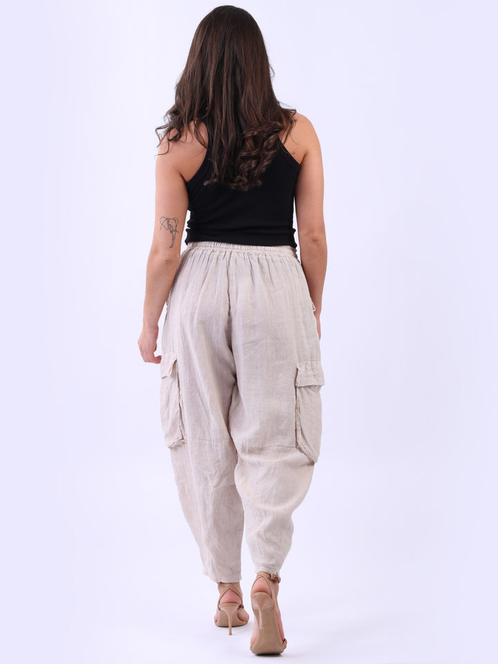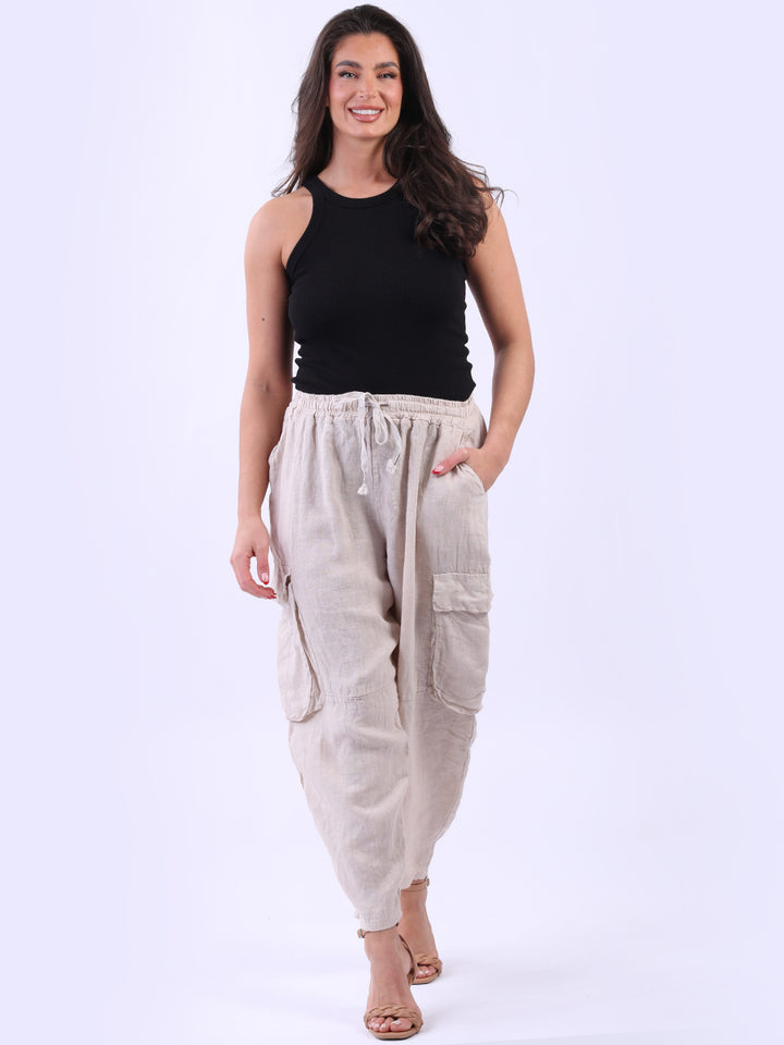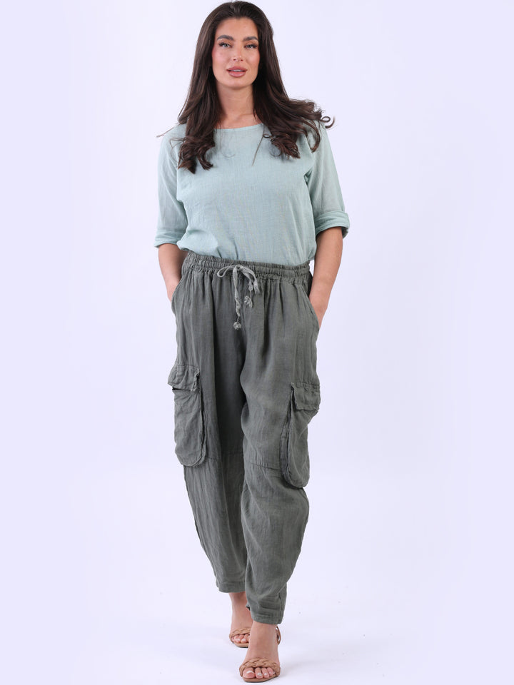 A showcase of perfect features, colors and fabric this is the trouser that is made in Italy with soft and cozy linen that is breathable and natural. Ideal for laid back days, running errands or going for casual walk. Drawstring adjustable waist, multi pockets for many function and needs of modern life, soft and lively colors and sleek finish. The trousers are easy to mix and match with type and dye tops and sneakers.