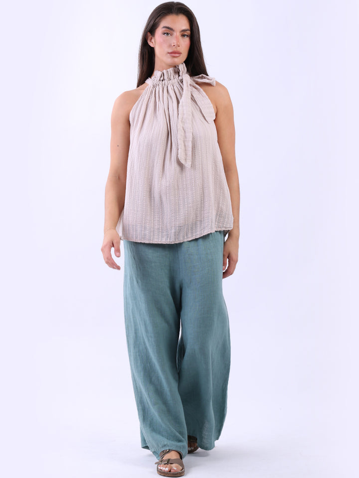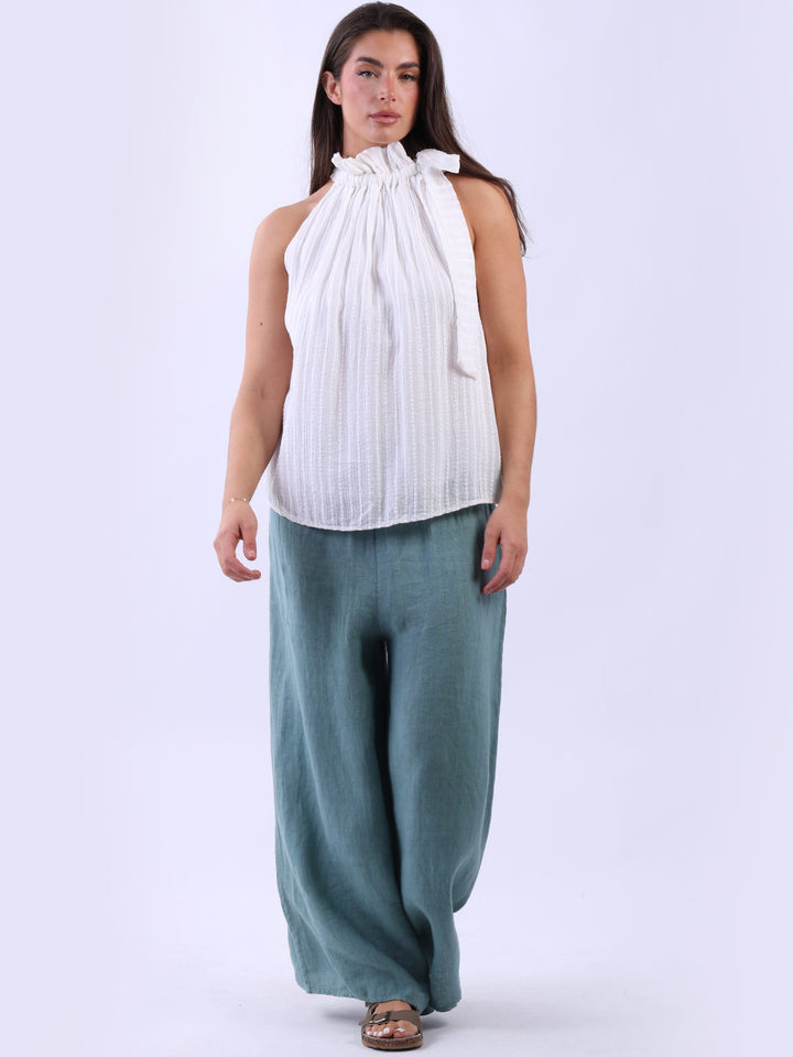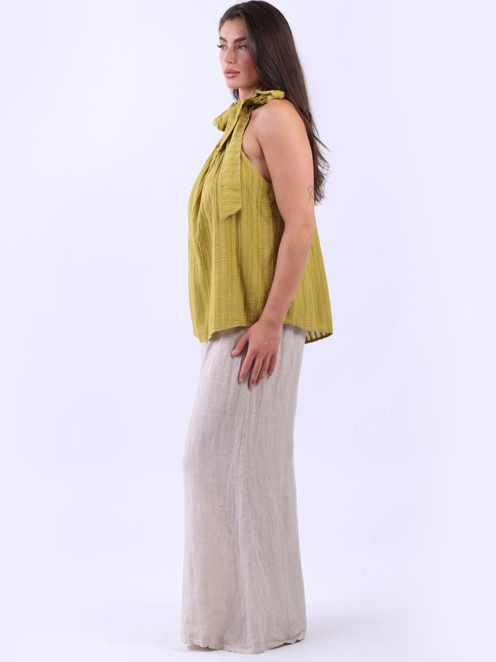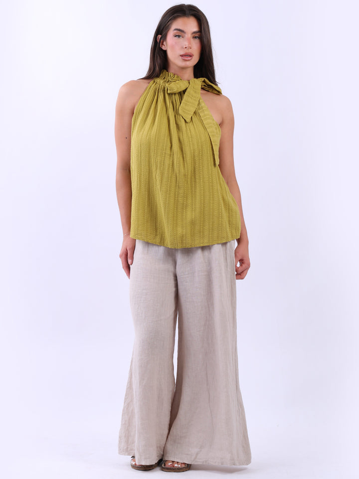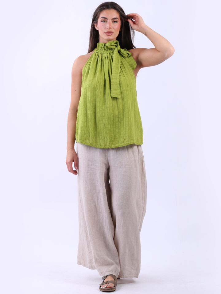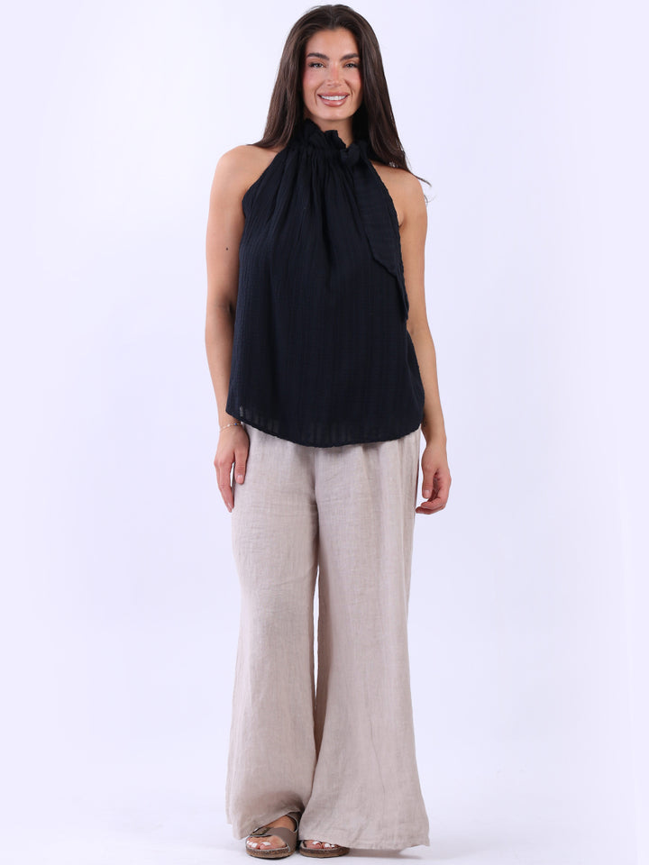 Embrace the sunny days with this ladies cotton top featuring a halter design that ties gracefully at the neck, enhancing its captivating appeal. Its lightweight fabric adds a texture while promising comfort all day. Pair it with plain trousers or pants for an effortlessly stunning look that screams timeless elegance.