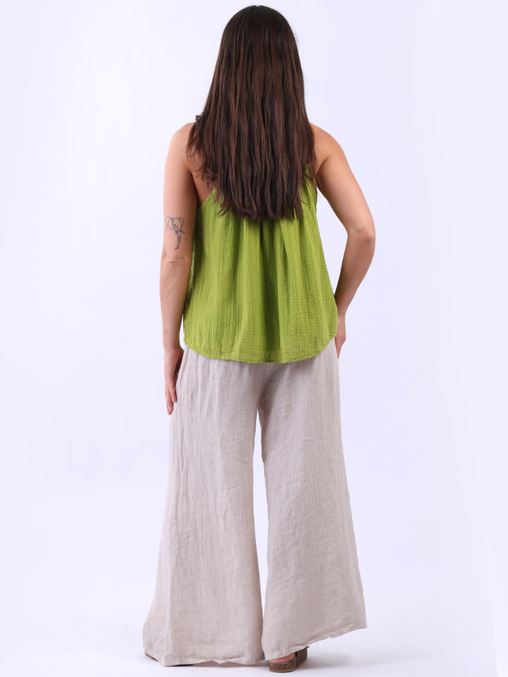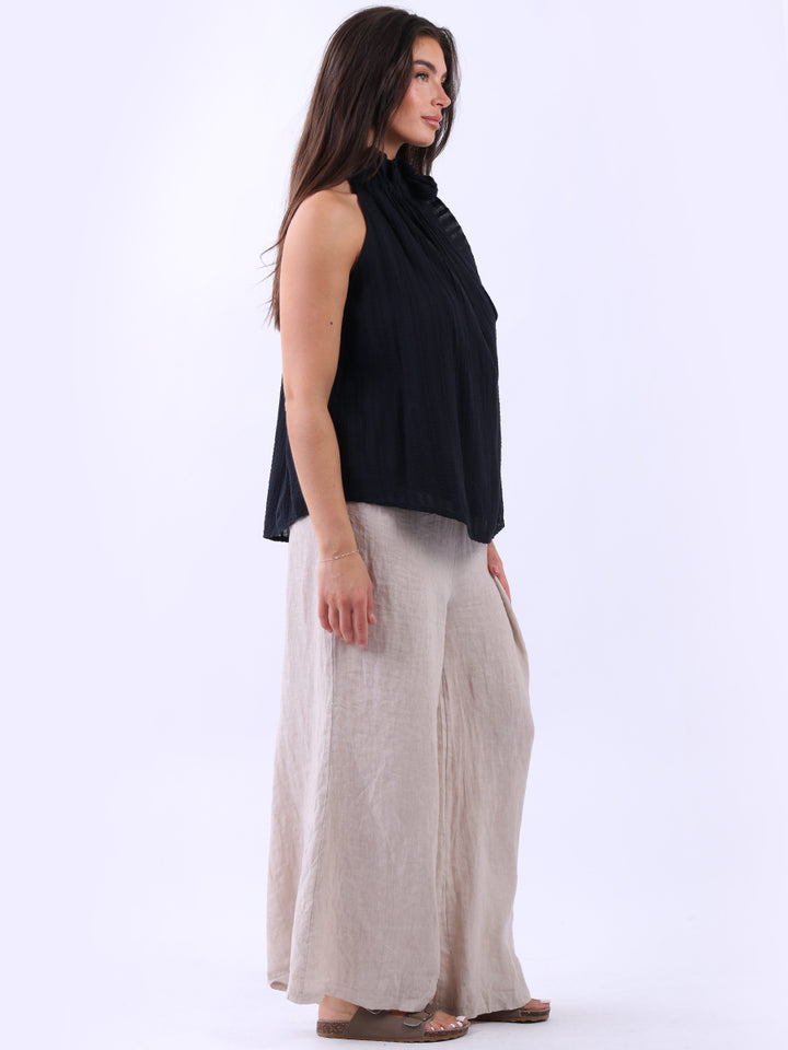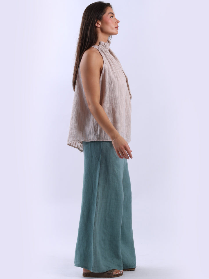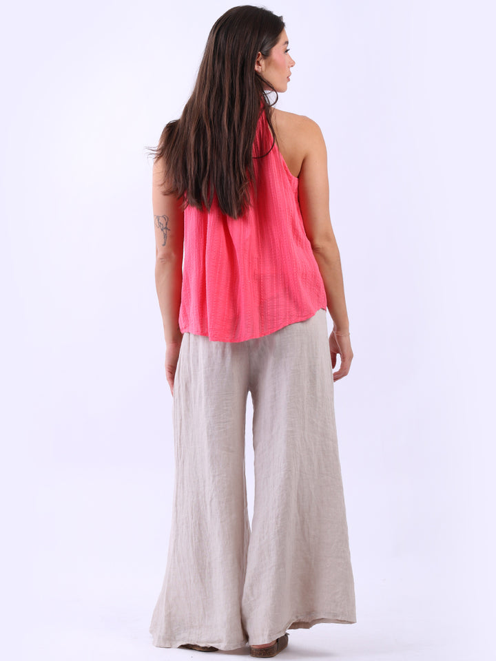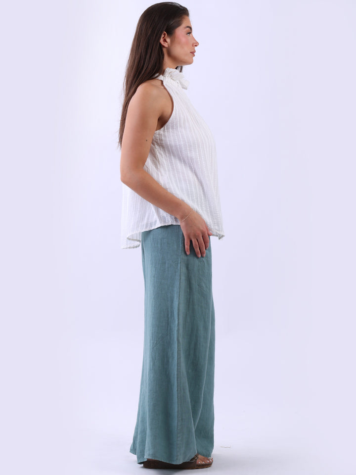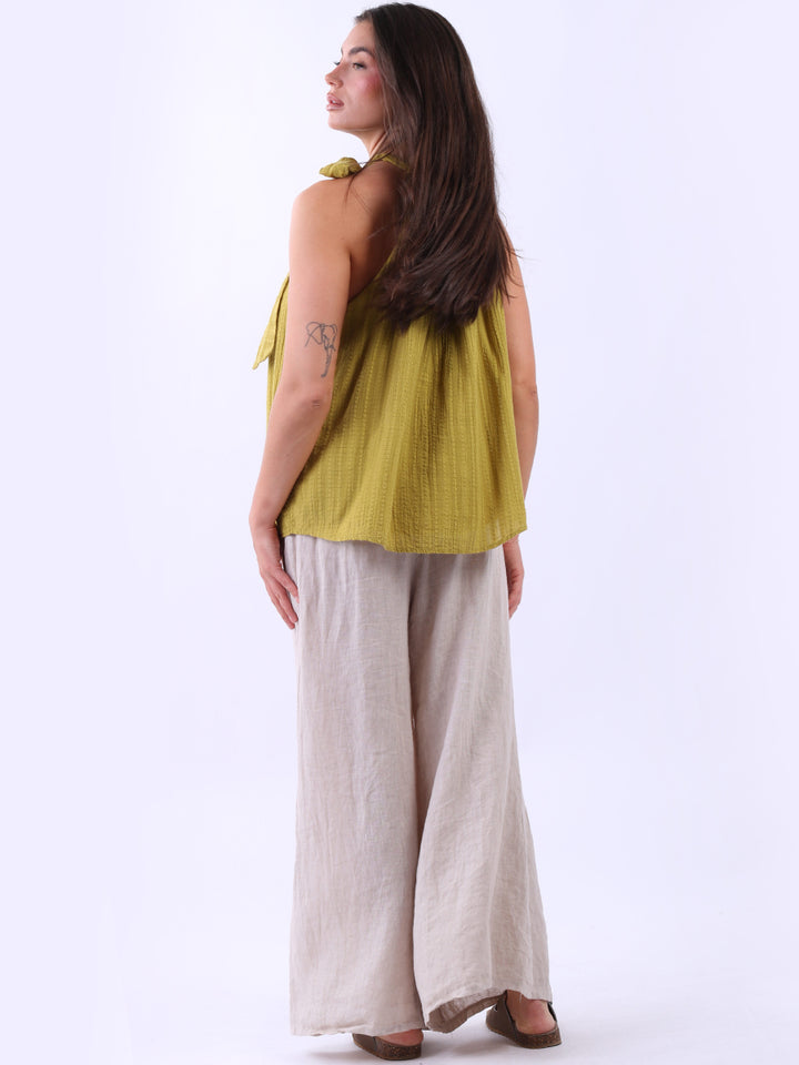 Embrace the sunny days with this ladies cotton top featuring a halter design that ties gracefully at the neck, enhancing its captivating appeal. Its lightweight fabric adds a texture while promising comfort all day. Pair it with plain trousers or pants for an effortlessly stunning look that screams timeless elegance.