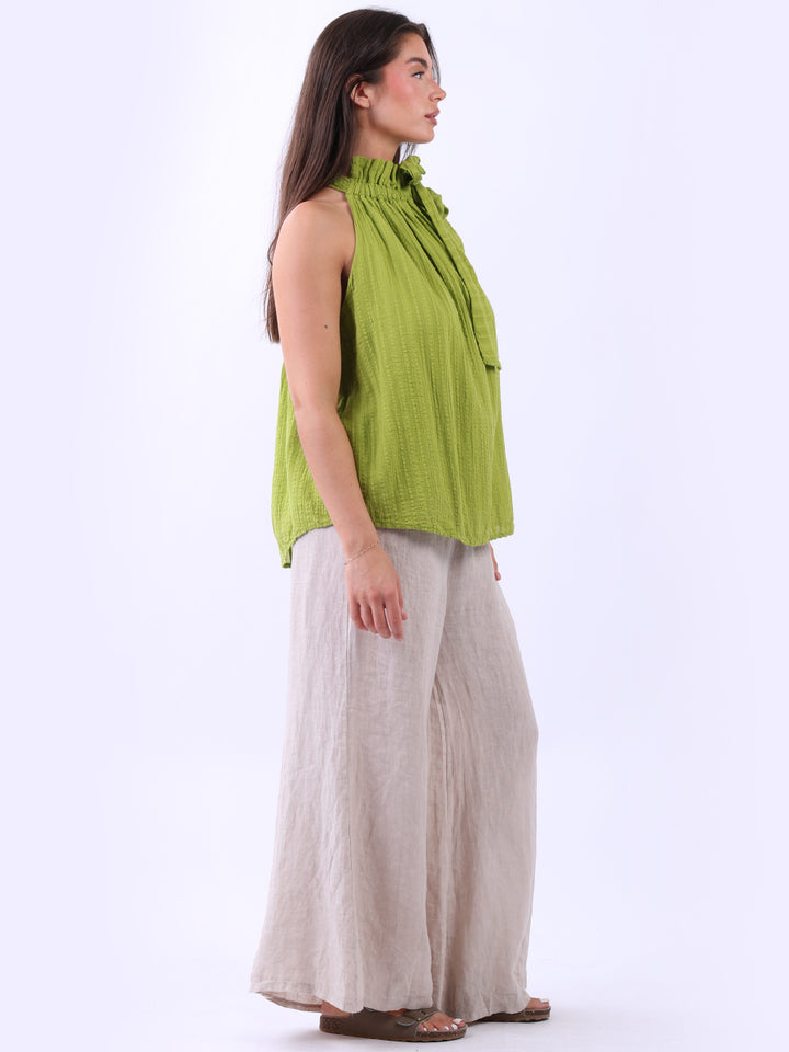 Italian 2 Layered Cotton Ruffle Tied Halter Top