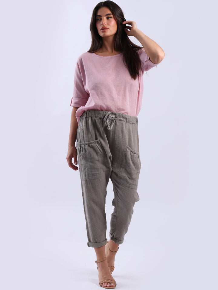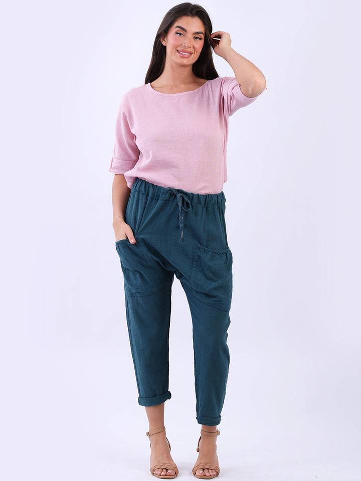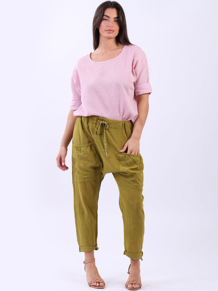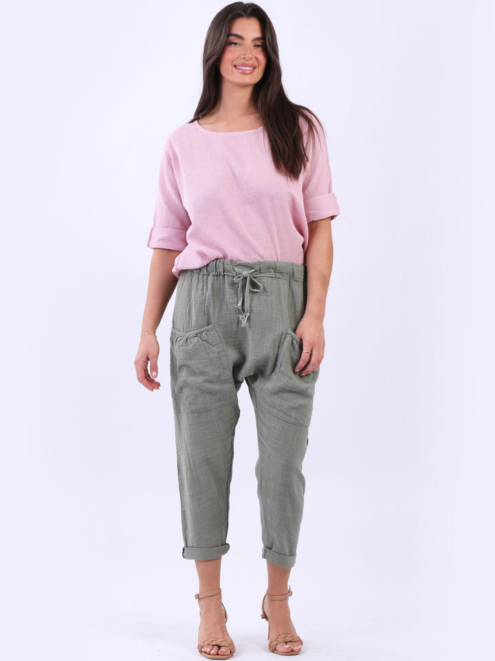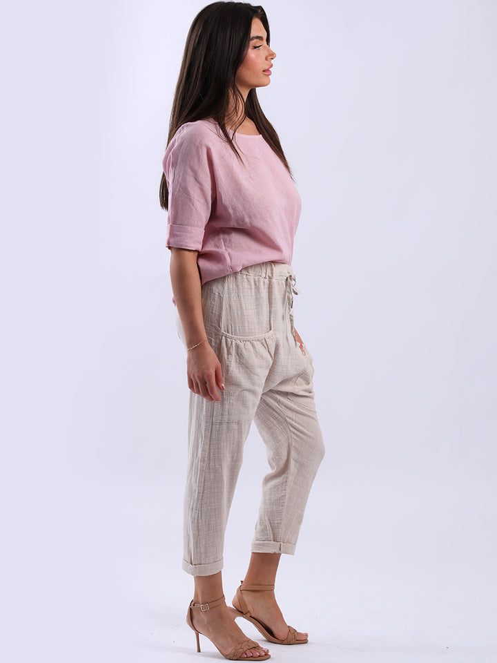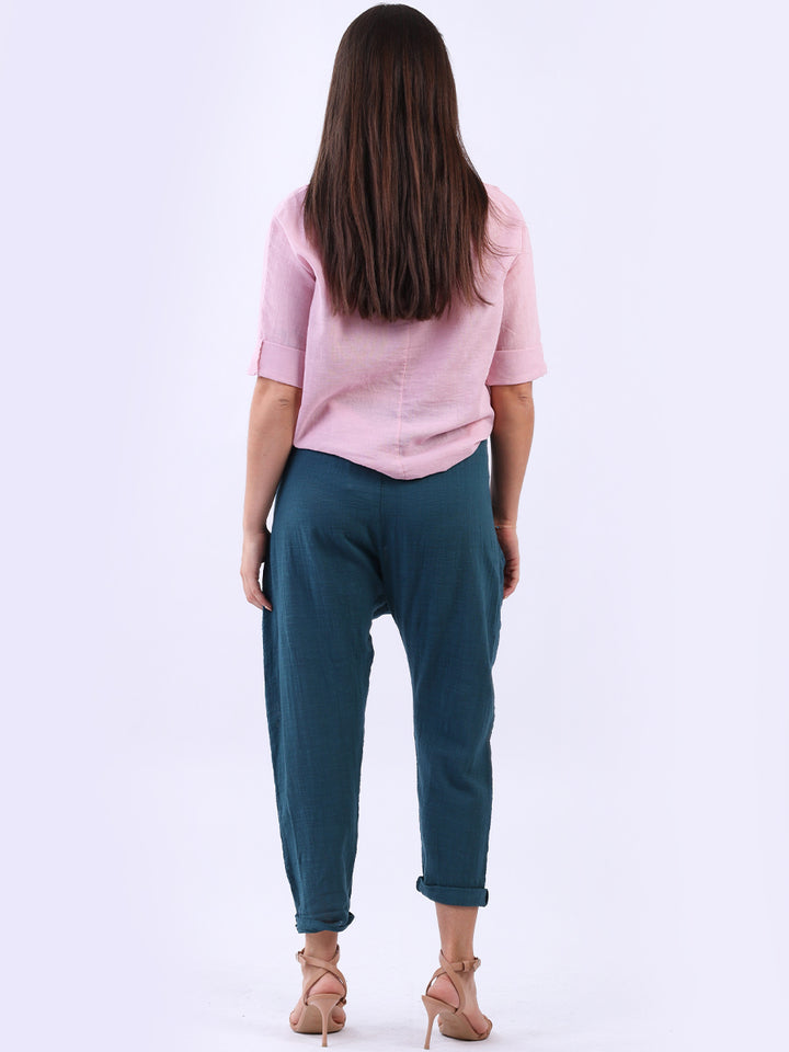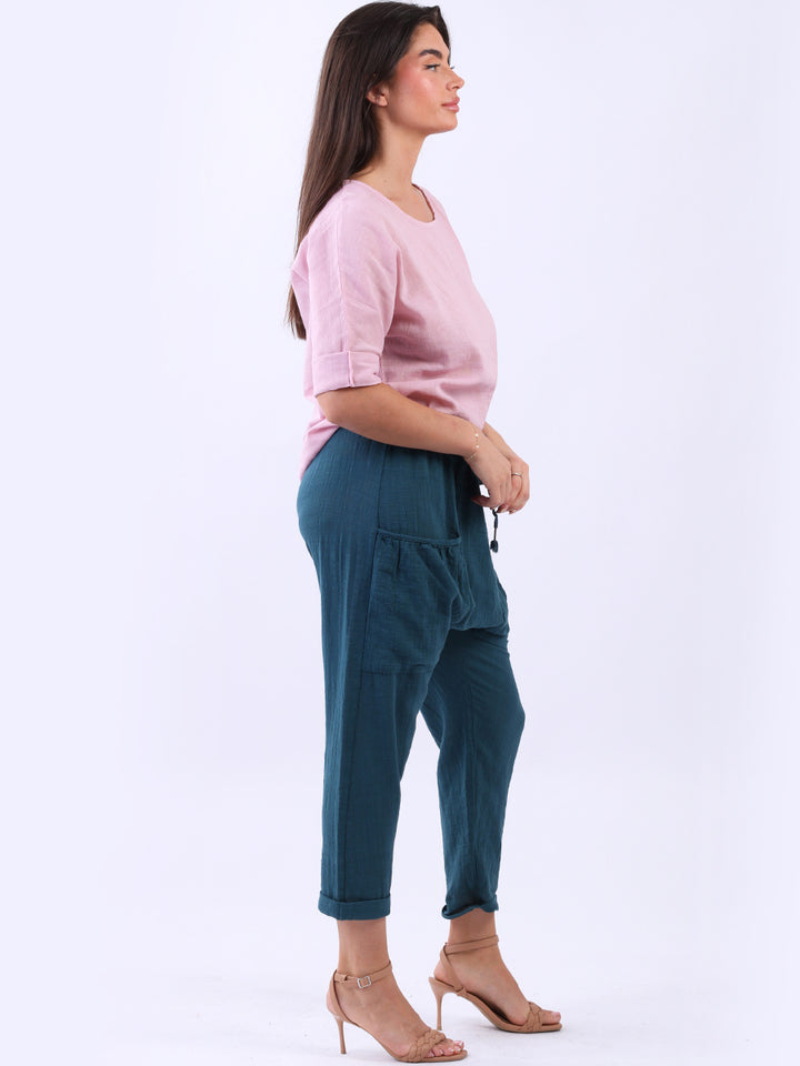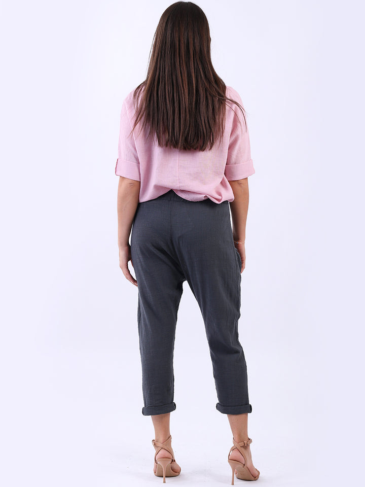 A perfect laid back loose pant, just the way women wearers adore it, is proudly presented by Redwholesale UK fashion boutique. It is made in Italy from pure cotton fabric, to ensure comfort and breathability with style throughout a busy summer day.