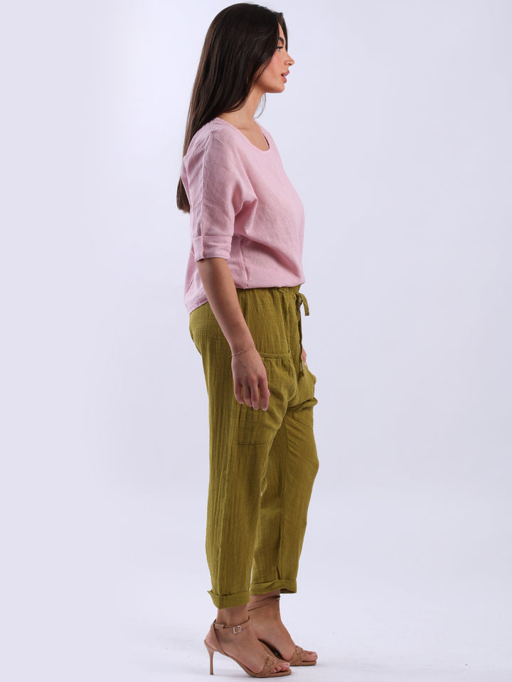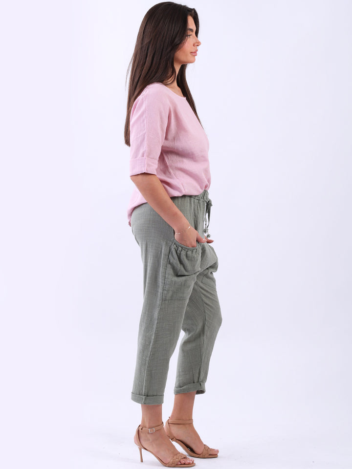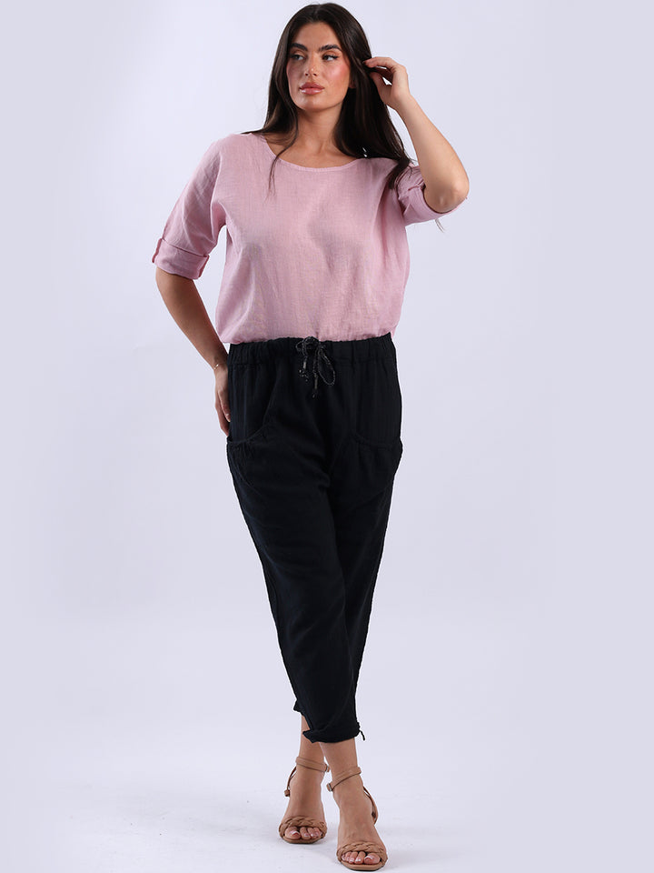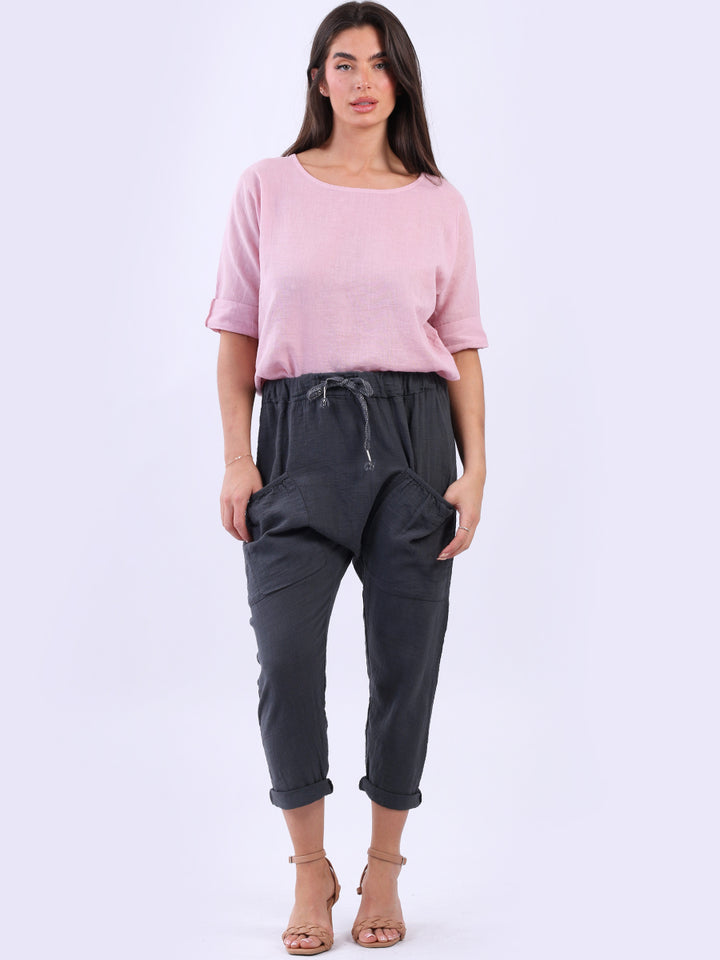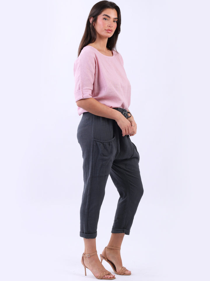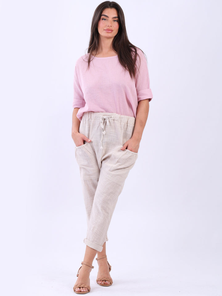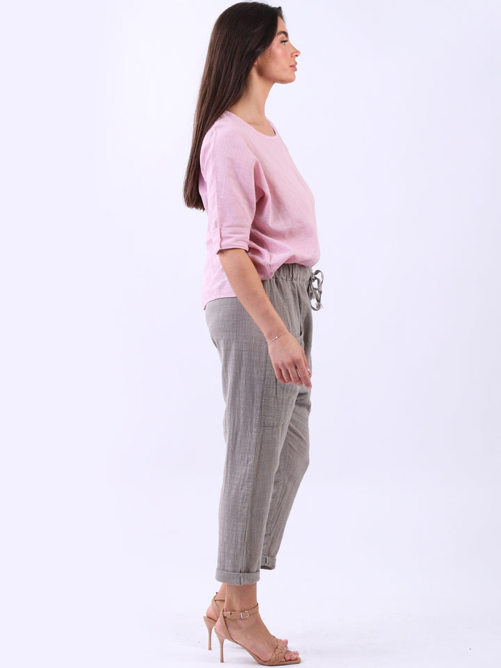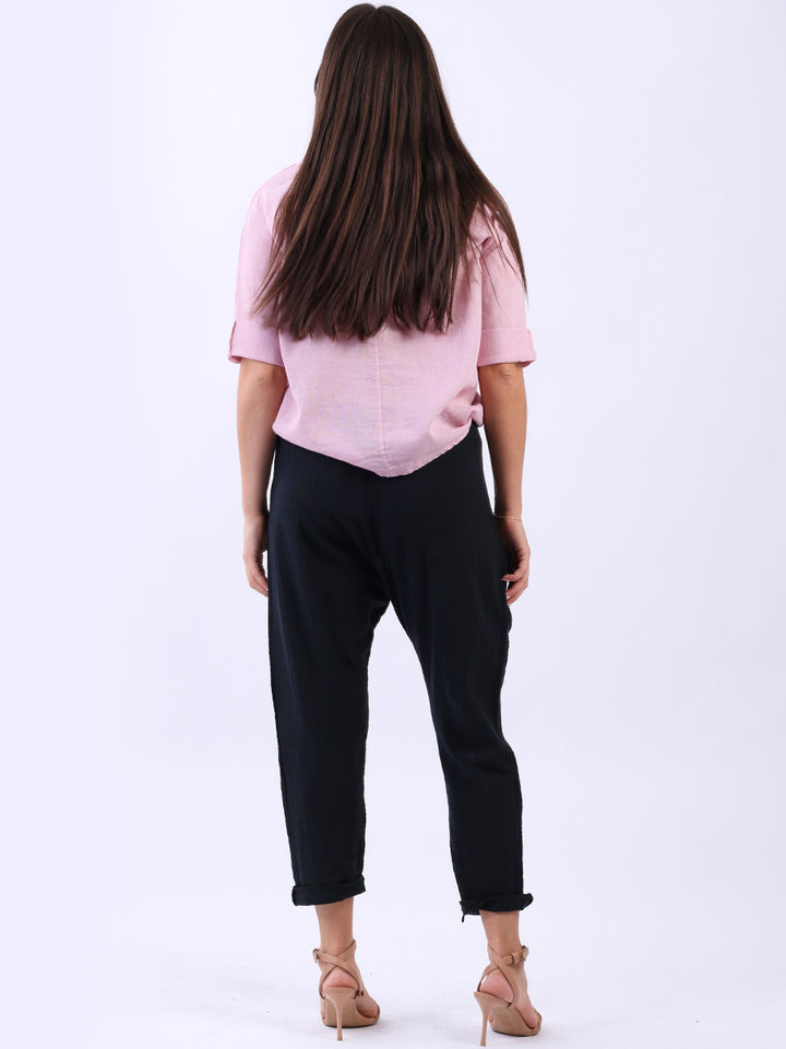 A perfect laid back loose pant, just the way women wearers adore it, is proudly presented by Redwholesale UK fashion boutique. It is made in Italy from pure cotton fabric, to ensure comfort and breathability with style throughout a busy summer day.