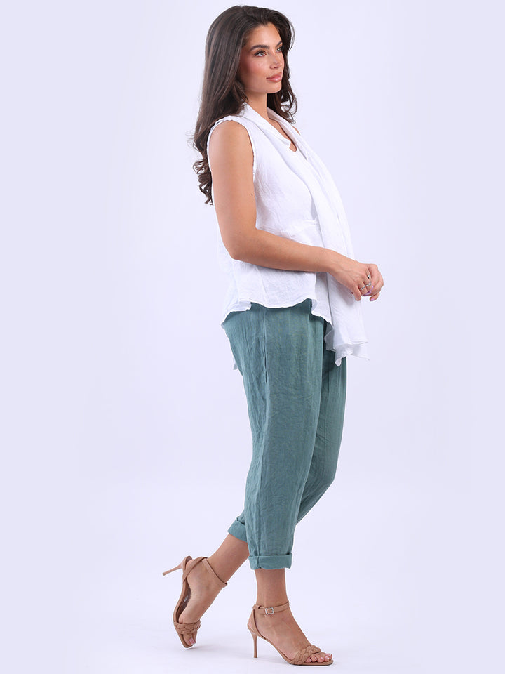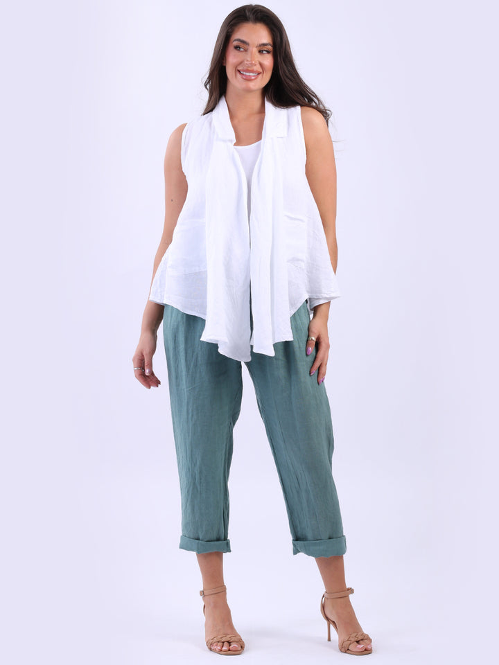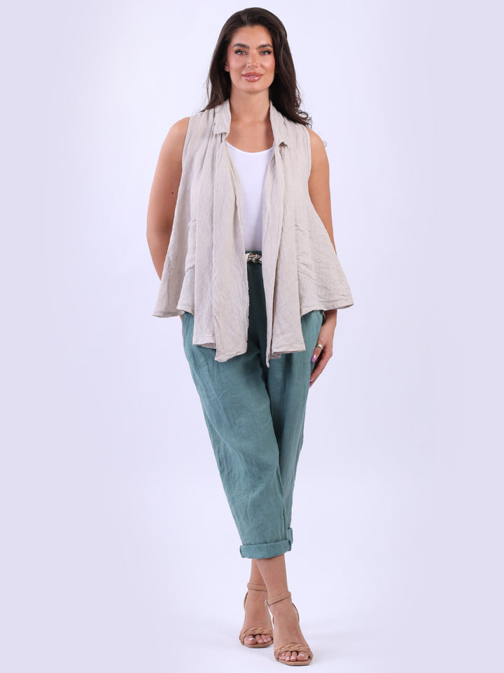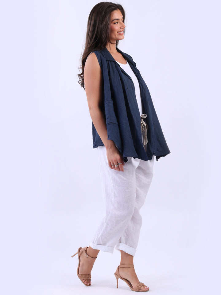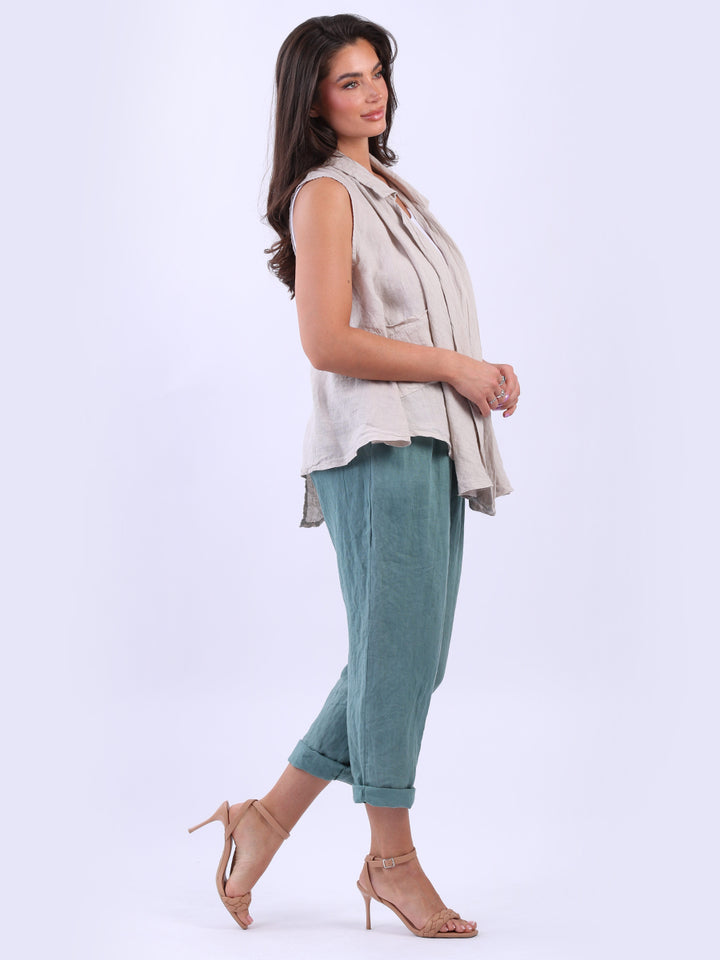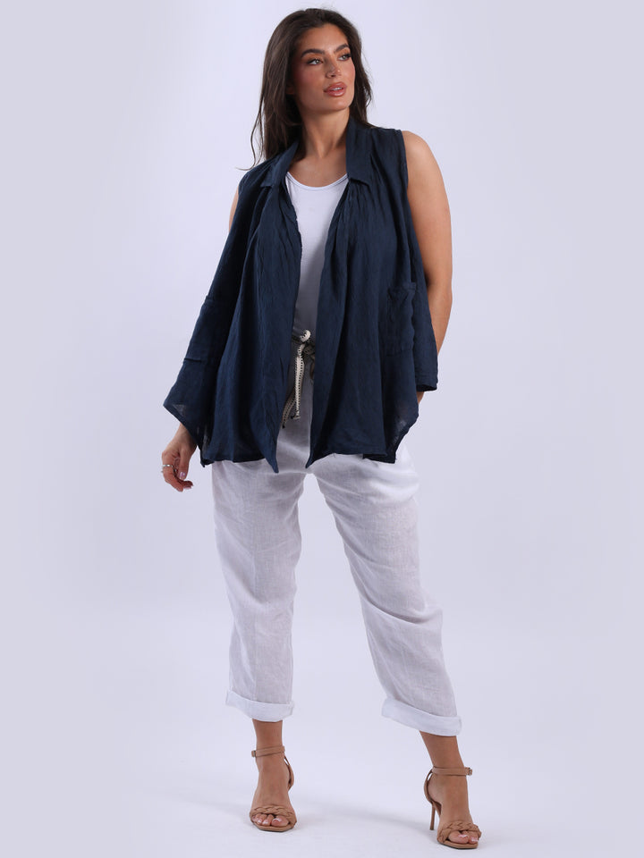 Designer inspired and feature loaded this linen jacket has all the authenticity of modern and classy combined. Made in Italy with finest and high quality, soft linen with features that are very popular like wide formal collar neckline, flared finish and front pockets. The soft and subtle colors makes this ideal to mix and match with many style as an ideal layering piece. Team it with wide leg pants and cowl neck tops.