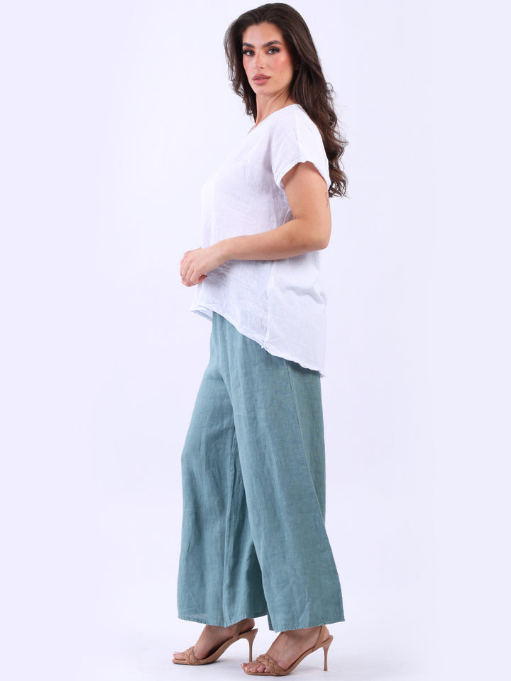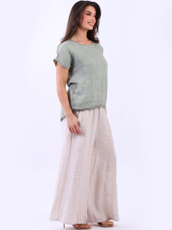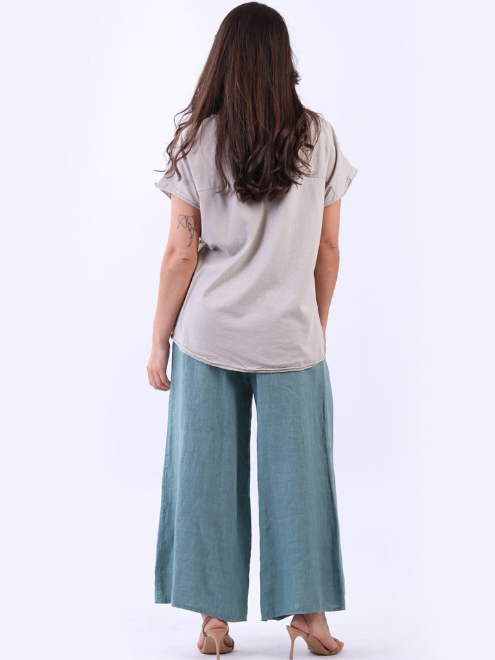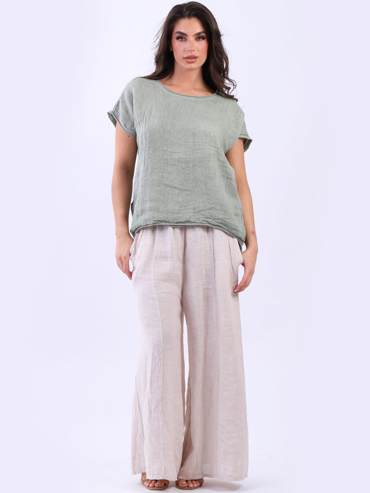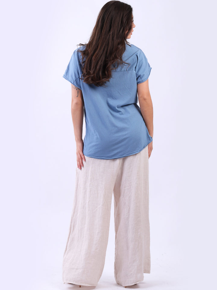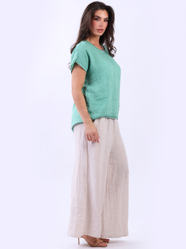 This classic Italian linen cotton duo top by Redwholesale is a must have for warm sunny days to maintain casual attire. With timelessly simple features like short sleeves, round neckline, and lagenlook fit, this top with dipped hem boasts sophistication and subtle allure. Pair it with wide leg pants and high heels.