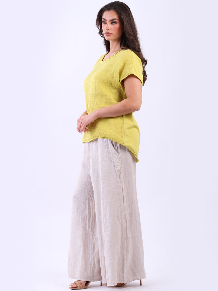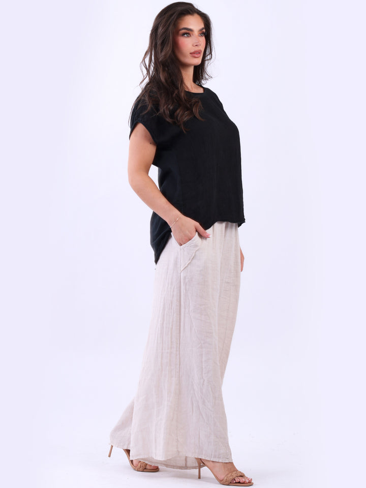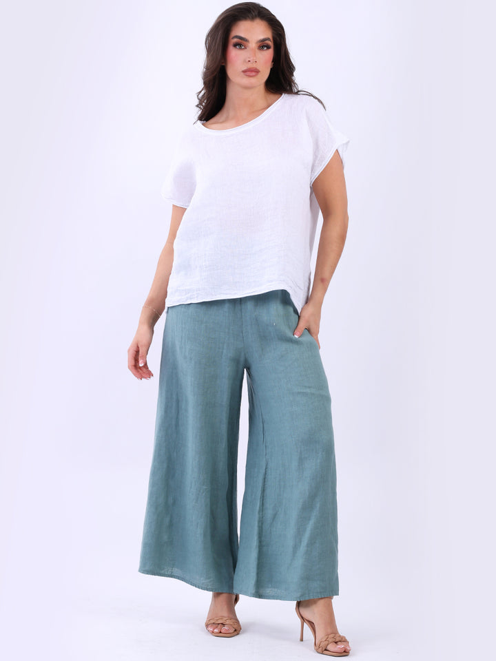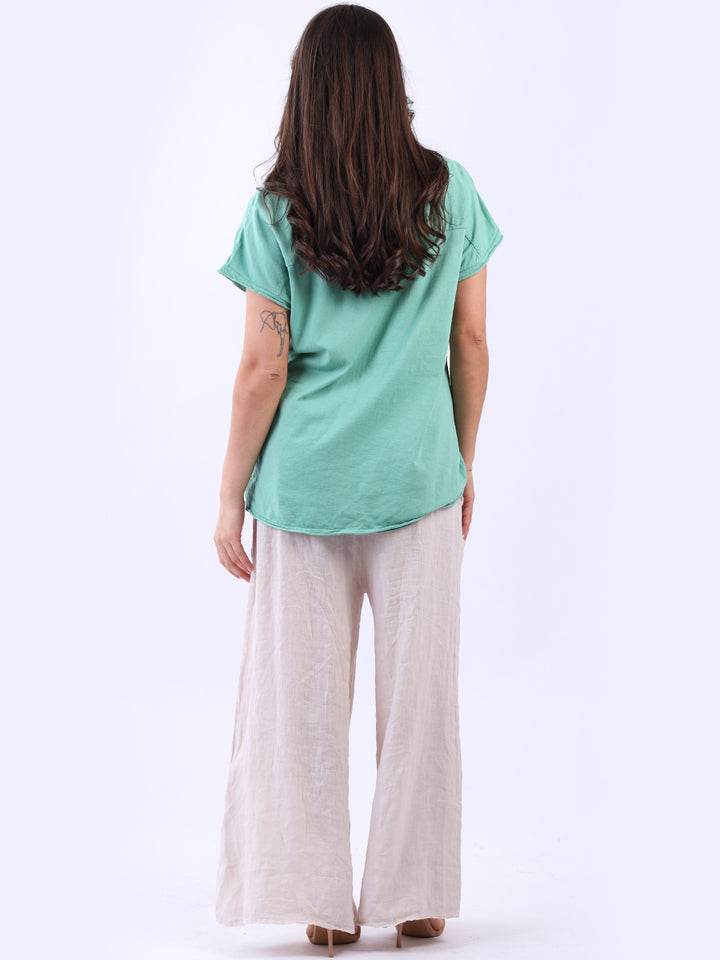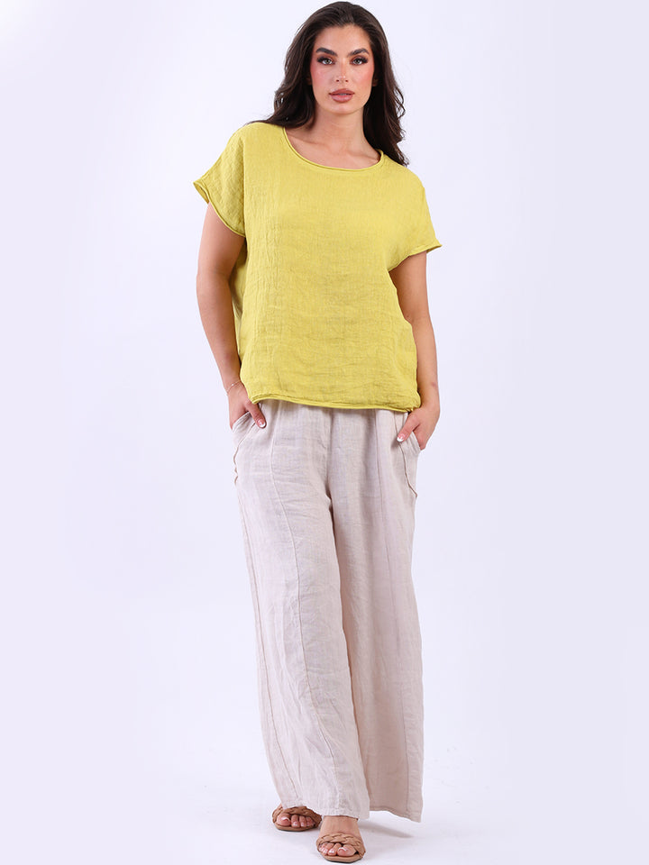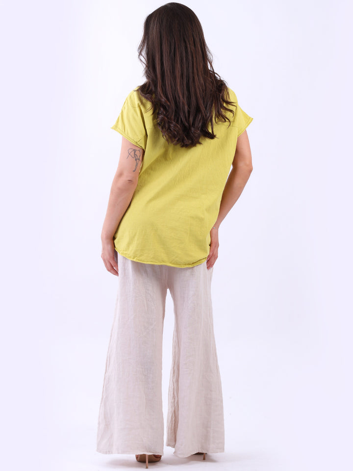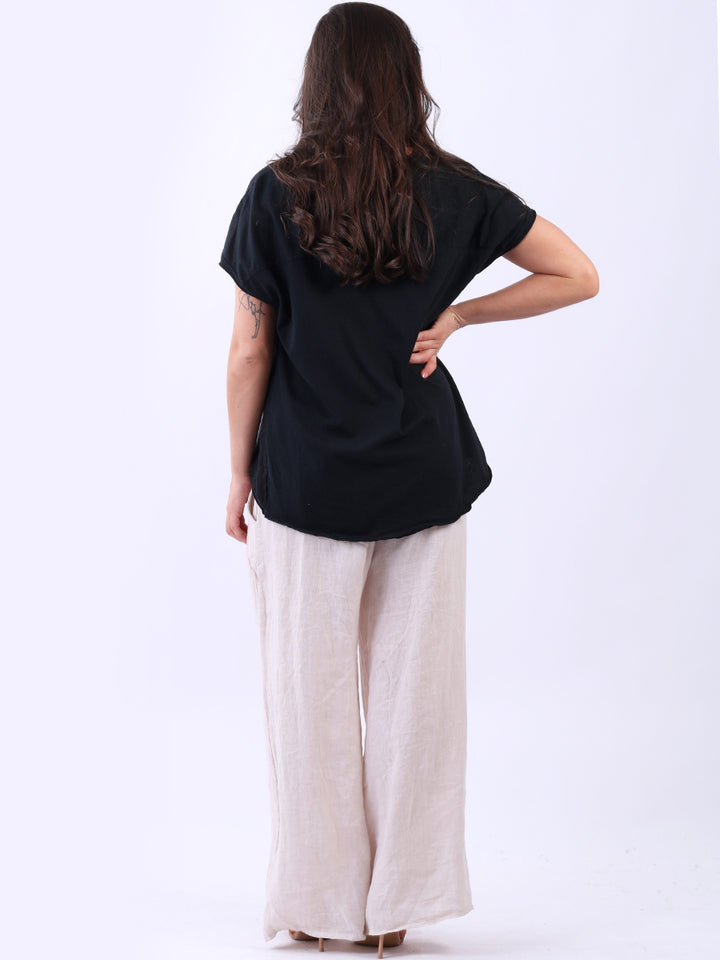 This classic Italian linen cotton duo top by Redwholesale is a must have for warm sunny days to maintain casual attire. With timelessly simple features like short sleeves, round neckline, and lagenlook fit, this top with dipped hem boasts sophistication and subtle allure. Pair it with wide leg pants and high heels.