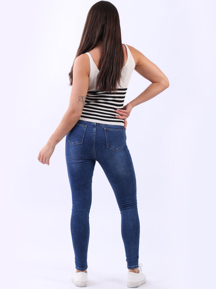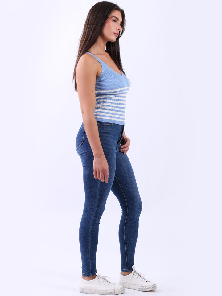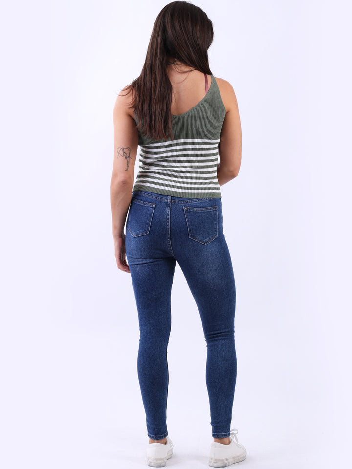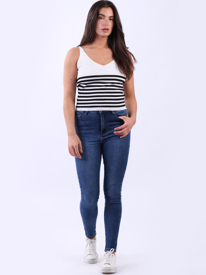 This cotton crop vest is timelessly stylish with its trendy contrast striped pattern. Featuring a deep scoop neck and sleeveless design, this vest is crafted from soft breathable blended fabric. It is versatile enough to be paired with jeans, a skirt, or shorts, either way, it offers a stylish laid-back, and casual look to slay.