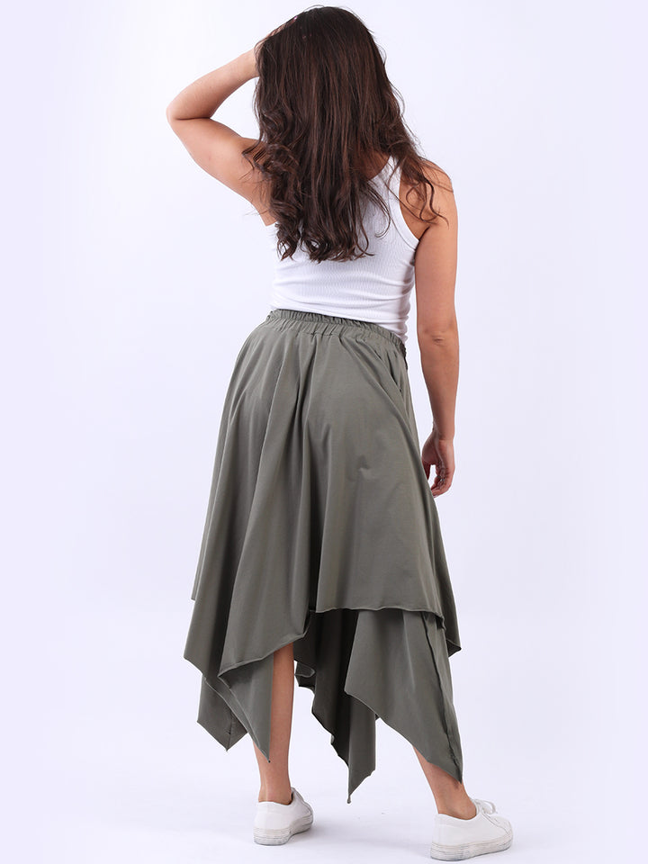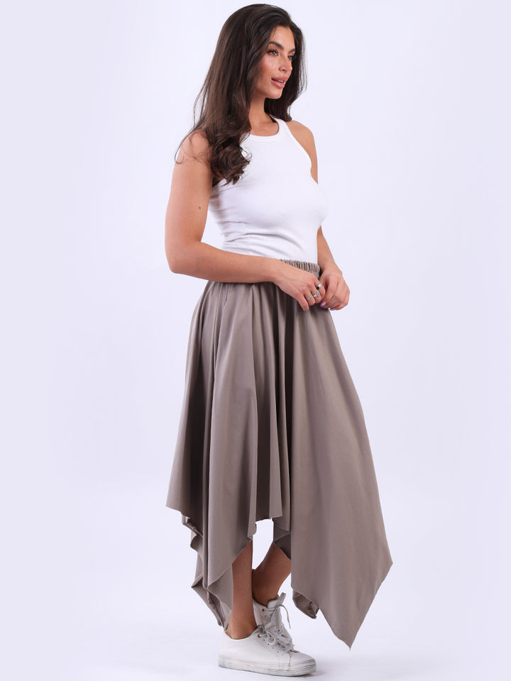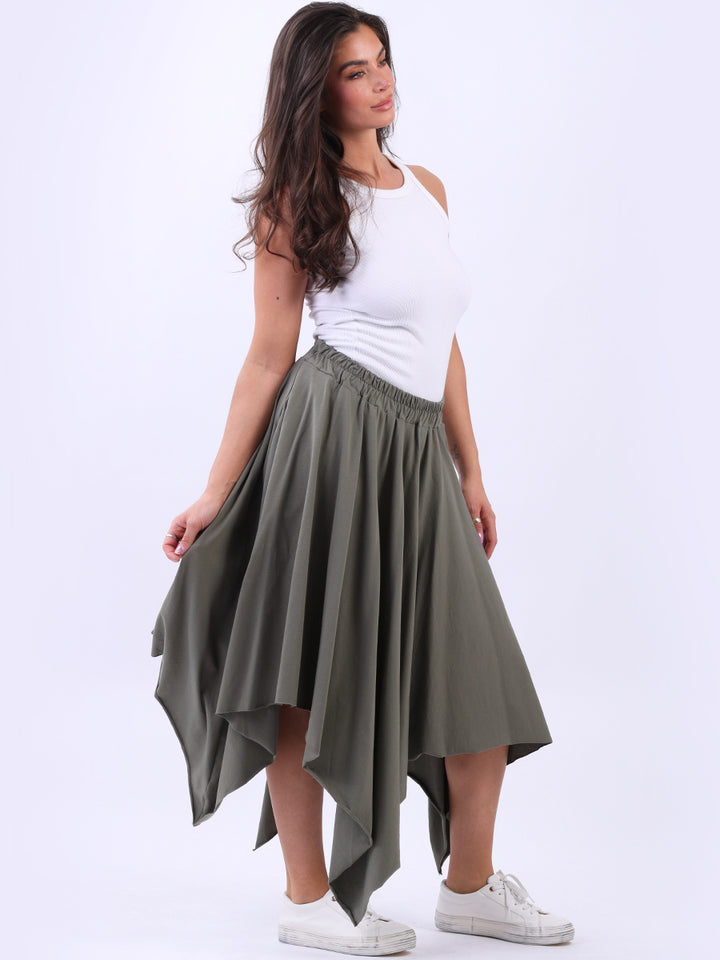 Made In Italy Asymmetric Raw Edge Cotton Skirt