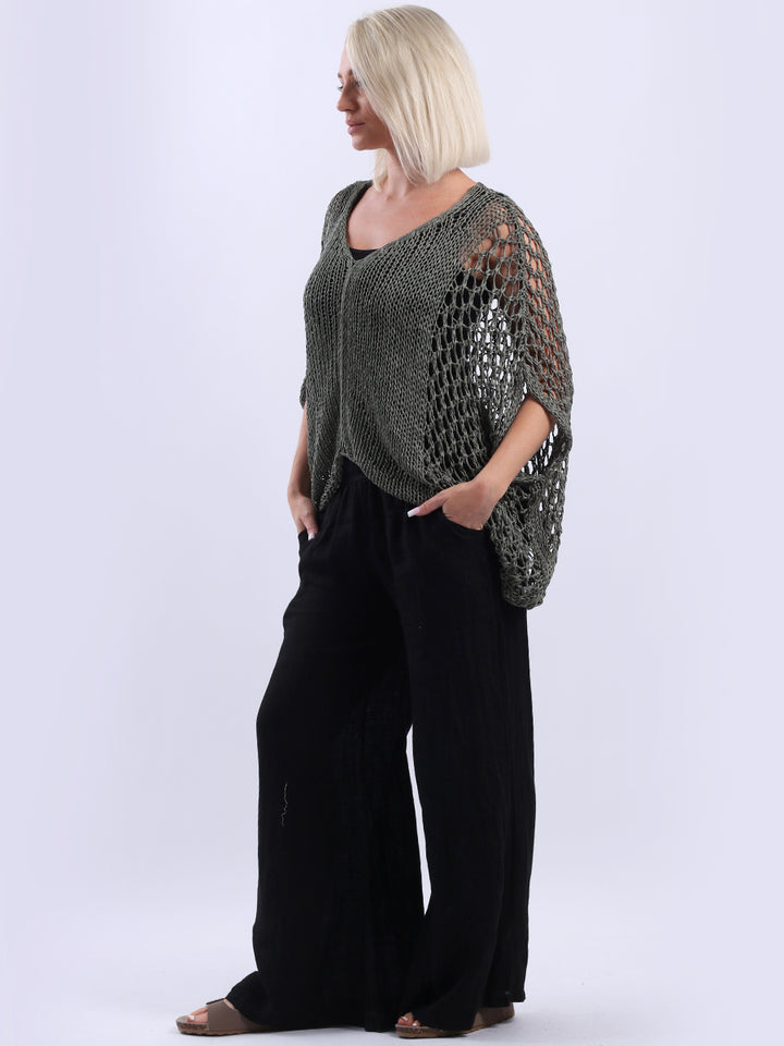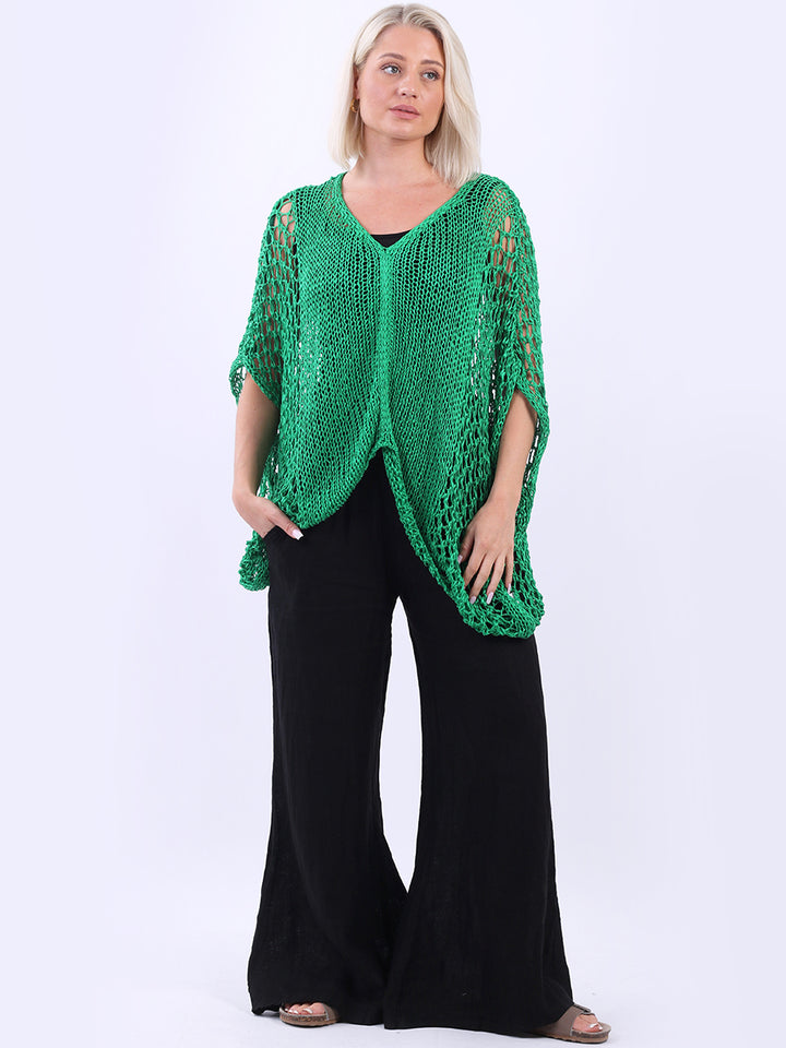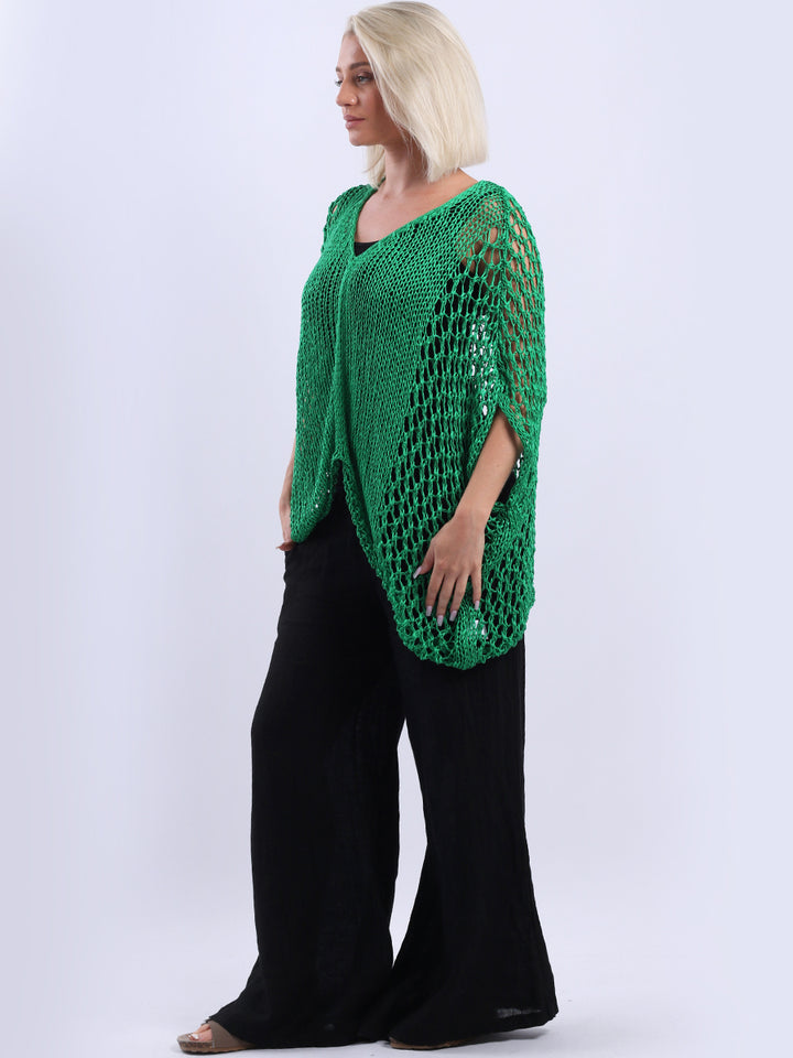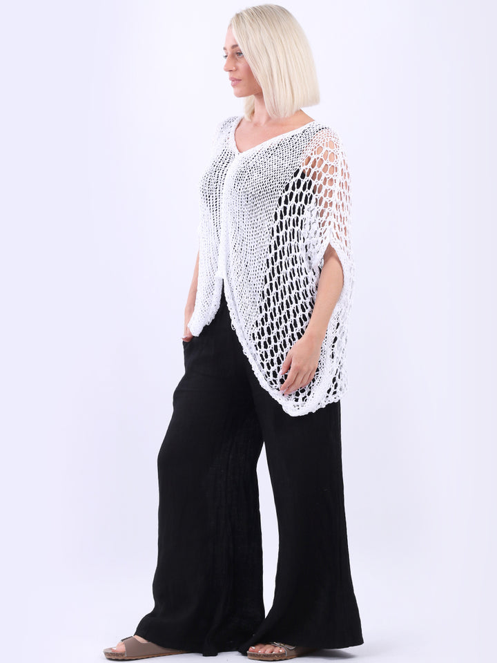 Made in Italy with finest and skin friendly high demand fabric and rich features like wide soft v neckline, delicate crochet mesh and cut in a lose shape allows the women wearers all the freedom they want to move and have fun. Dress it over crop top and leather pants.