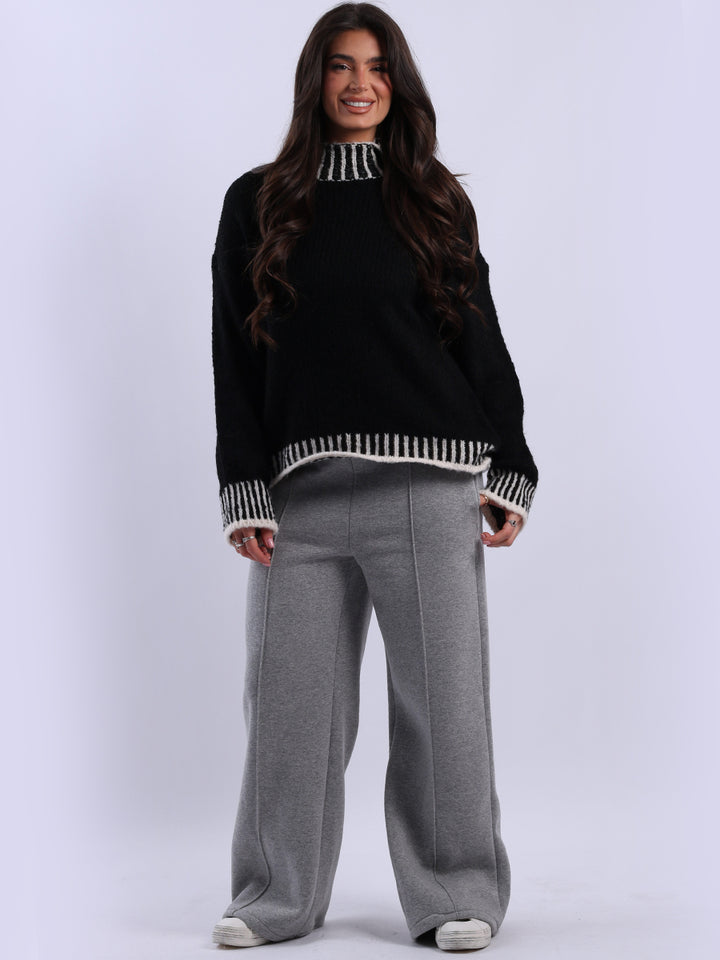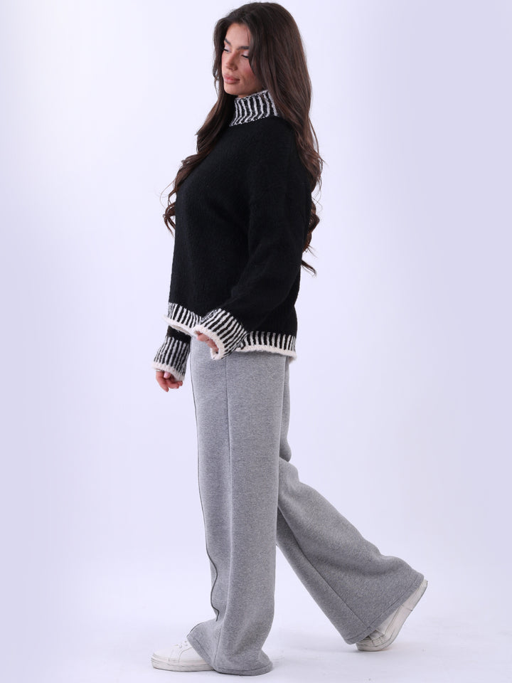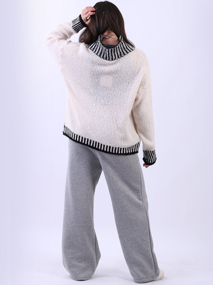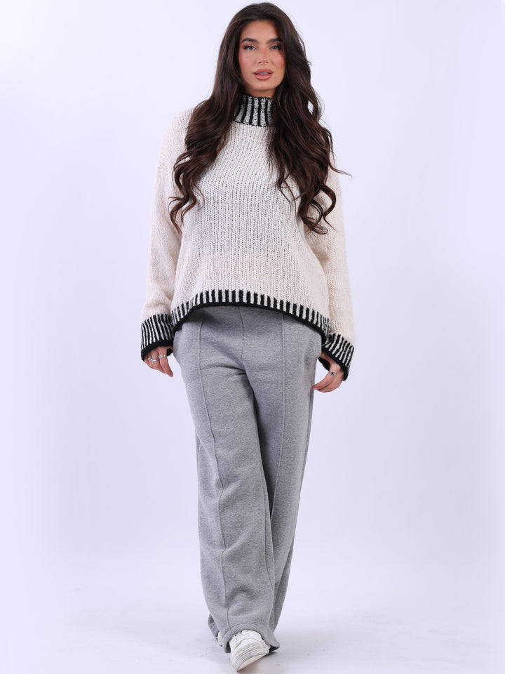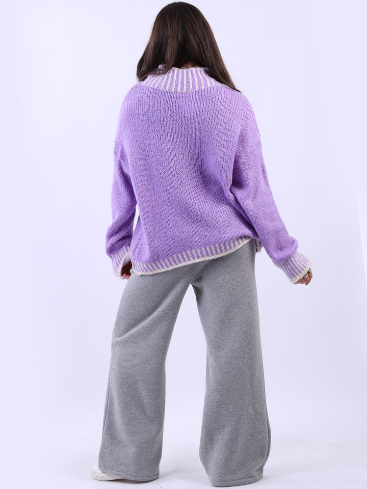 Trendy clothes can elevate the women’s fashion by its sparking colors, exclusive features and fine quality fabric. This jumper for women is made in Italy having contrast stitch trim style, funnel neck and long baggy sleeves with drop shoulders. This woolen knit jumper is perfect Italian moda for all the ladies to wear in Italy.