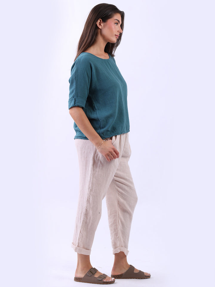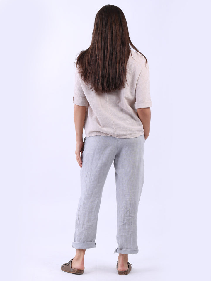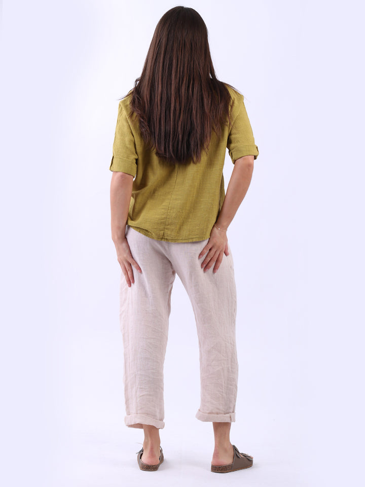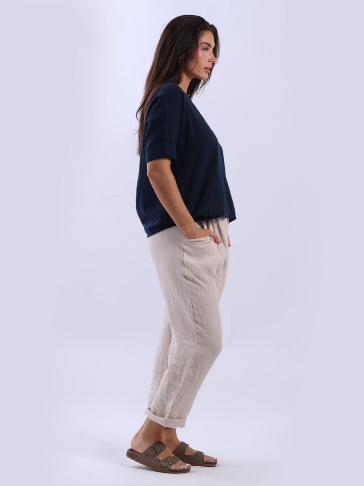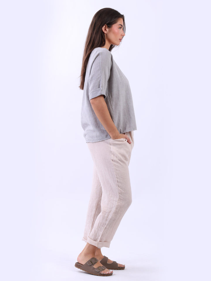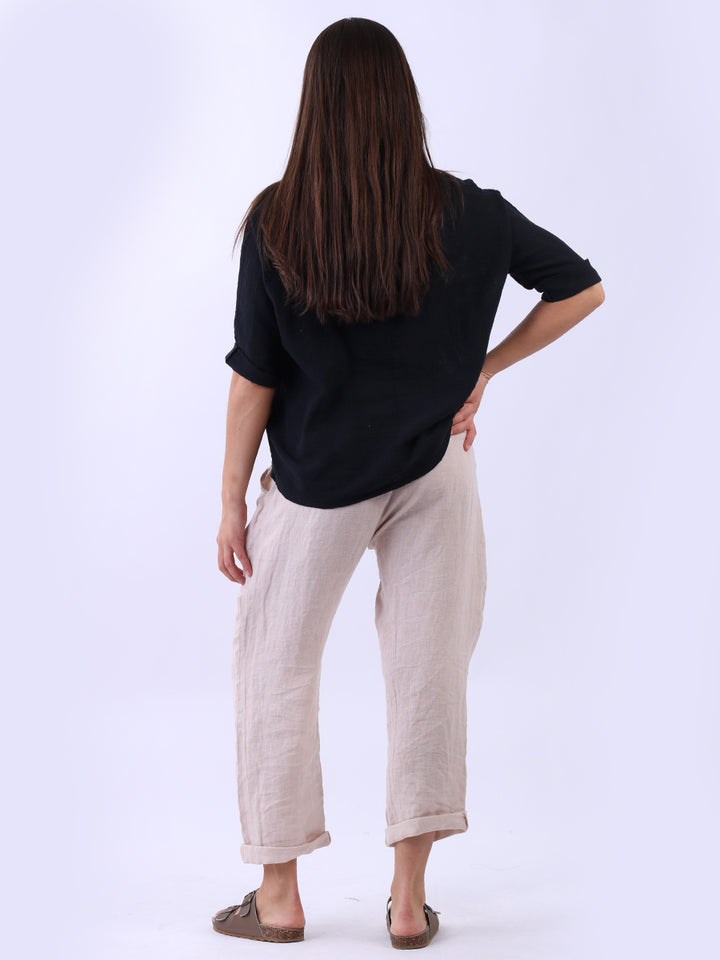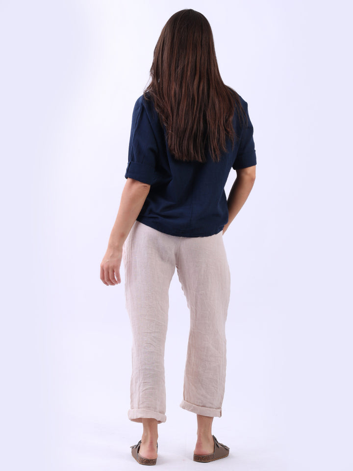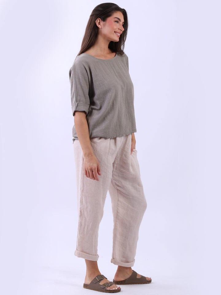 Add a classic and sleek touch of solid colors to the summer wardrobe with this plain boxy crop top. It is breathable and relaxing, thanks to its ultra-soft cotton fabric. The rolled-up sleeves add a carefree vibe, maintaining its laidback look. This sophisticated crop top is now in wearer reach for an effortless stylish look this season and beyond.
