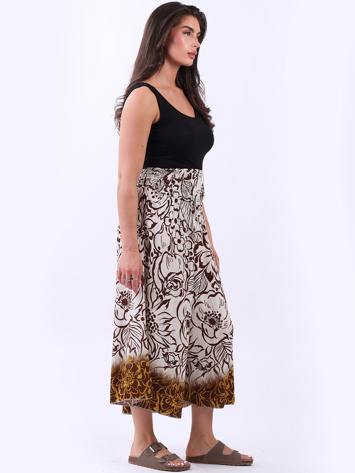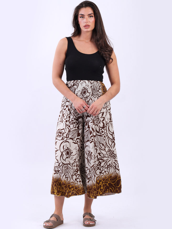 Get a youthful and positive vibe this summer season, with a floral printed, wide leg culottes pant that is made in Italy. Its smocked high waist seamlessly blends with vibrant print creating an intricate pattern. Enjoy the unforgettable comfort and luxury of this flowy light-weight pant that is both chic and trendy.