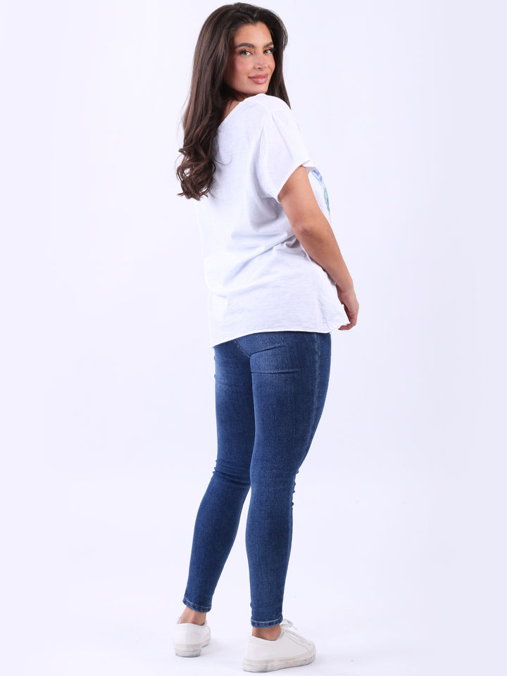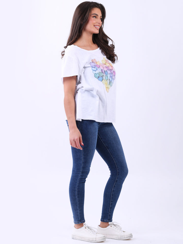 Seasonal and stunning that is made in Italy with finest and high quality luxurious cotton. Feature rich with wide round neckline, sweet heart print on the front and raw edges. This is adored by ladies for its uniqueness and comfortable look. Mix and match with skinny denims for laid back finish.
