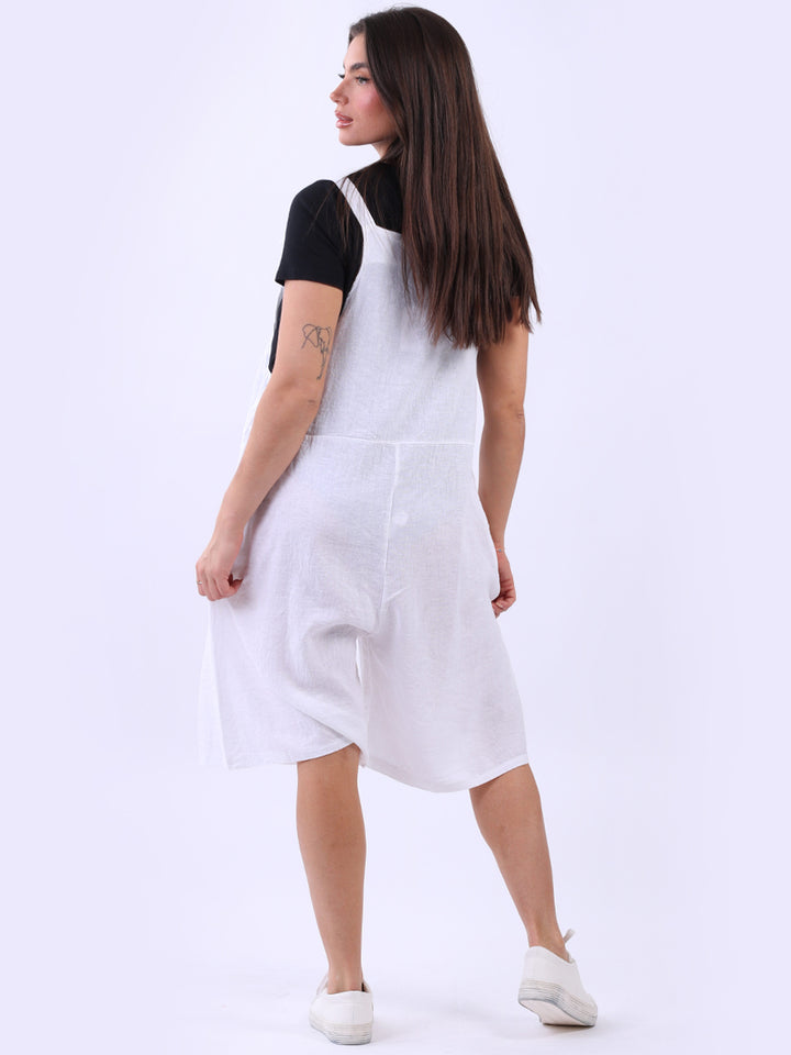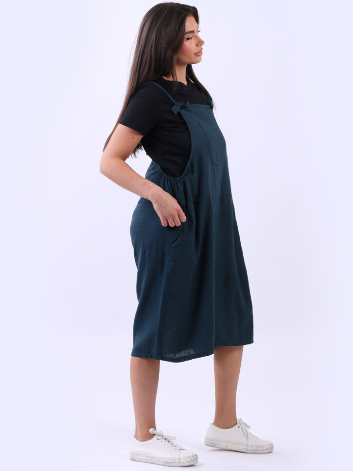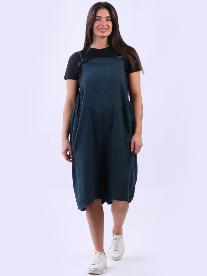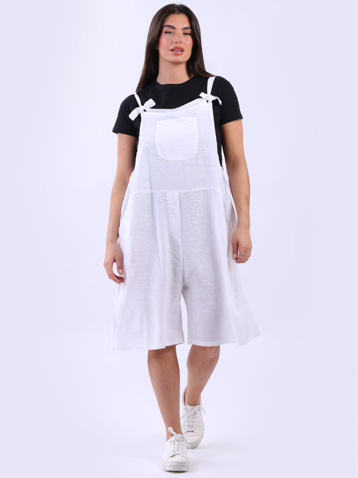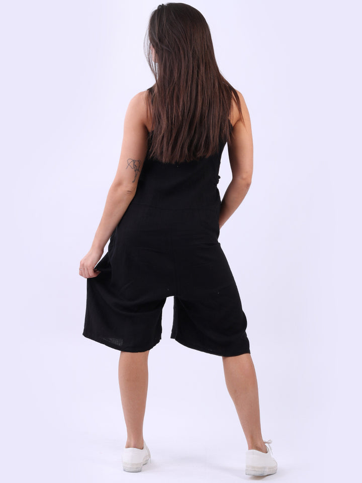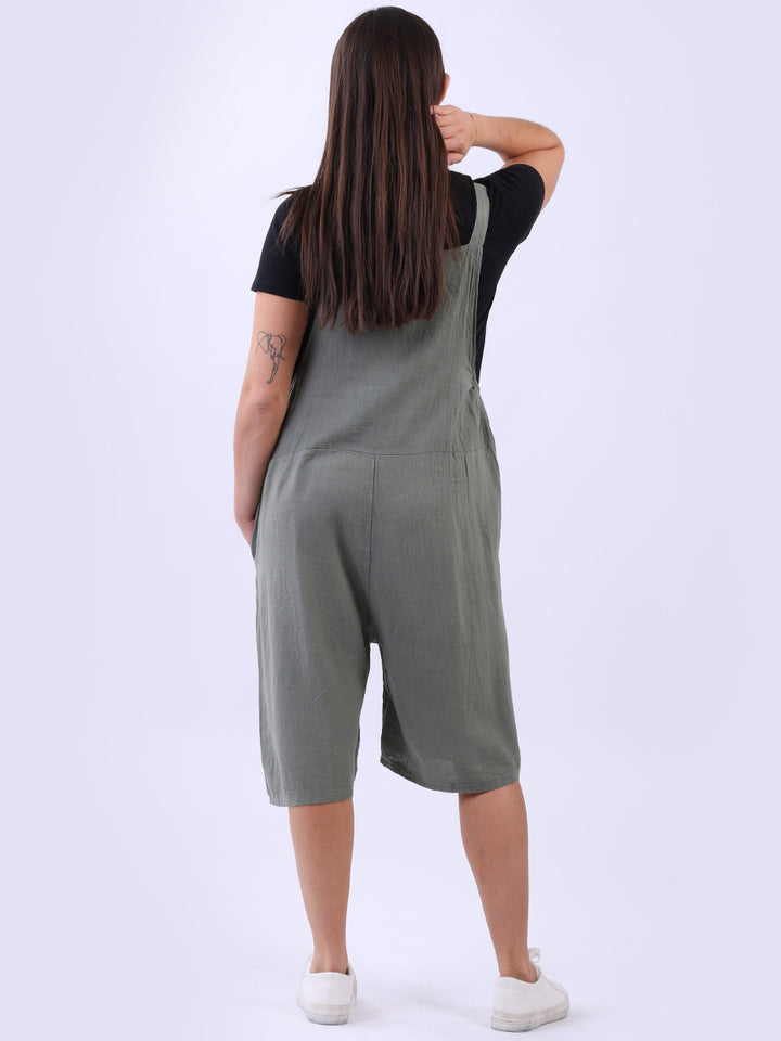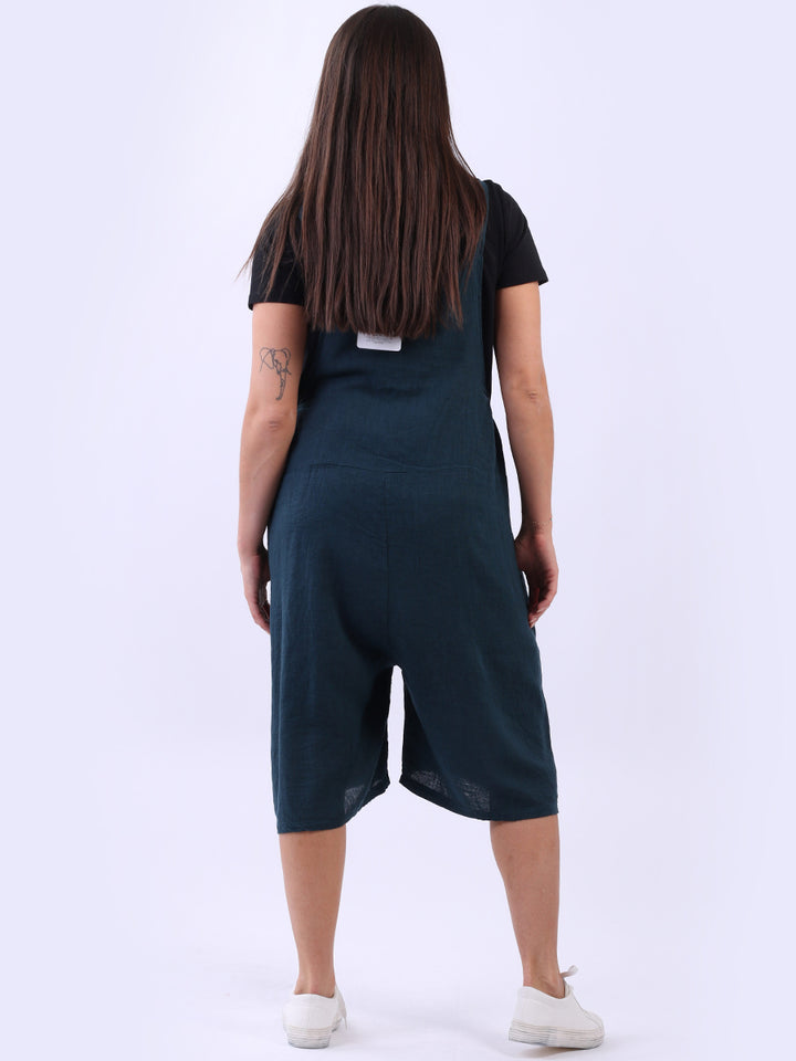 A true definition of Italian casual fashion, this plain playsuit features a square neckline with adjustable shoulder ties, elasticated ruched sides and a front pocket. Its loose-fit and light blended fabric makes it a must-have for summer seasons to make women wearers comfortable and cool all day.