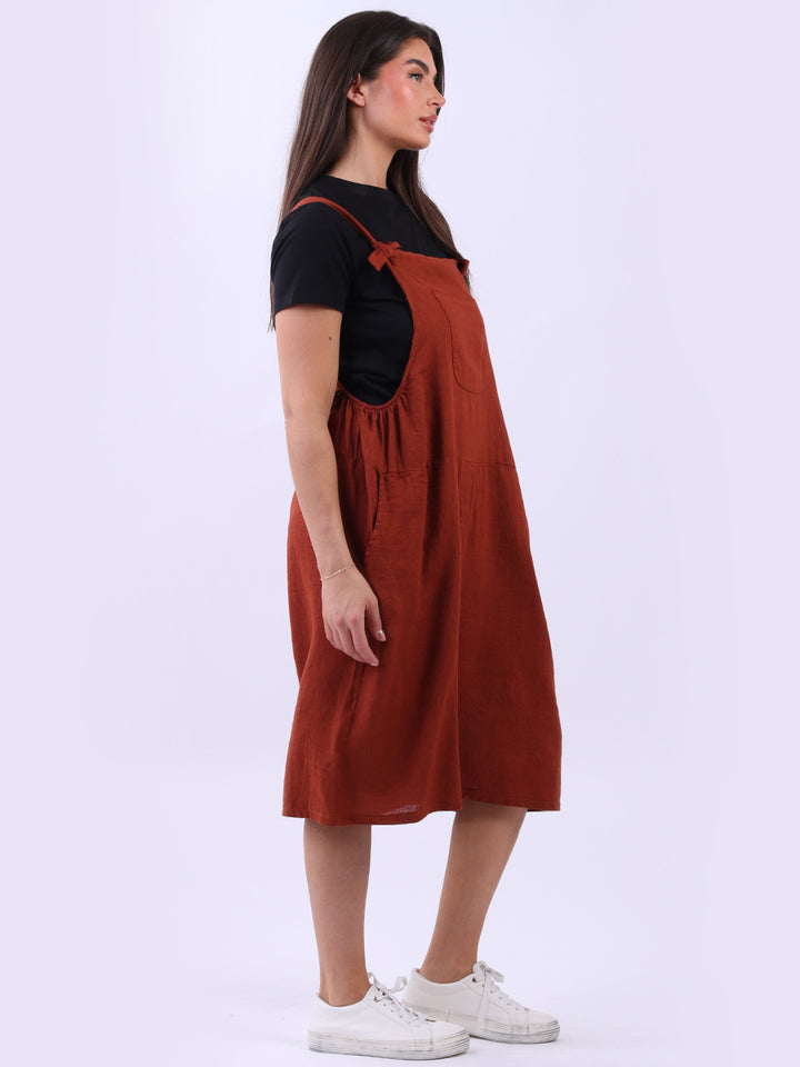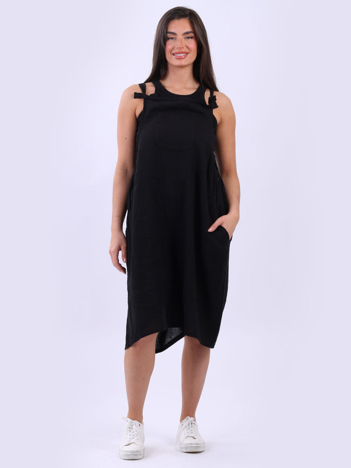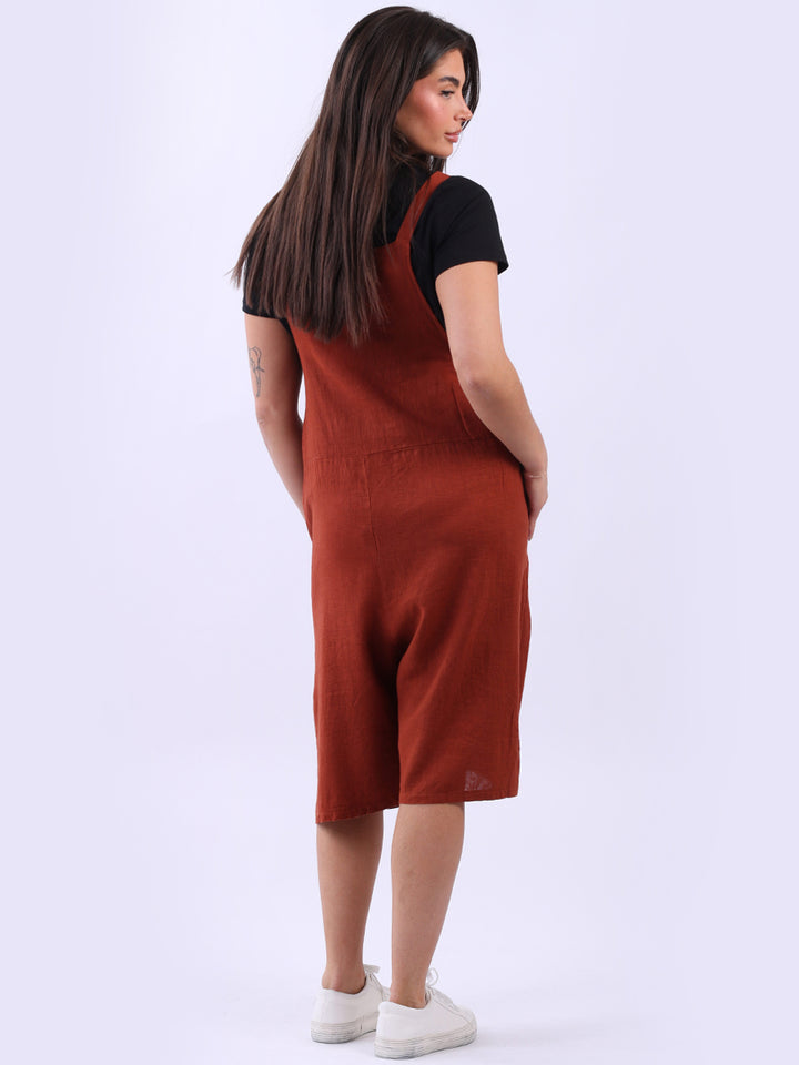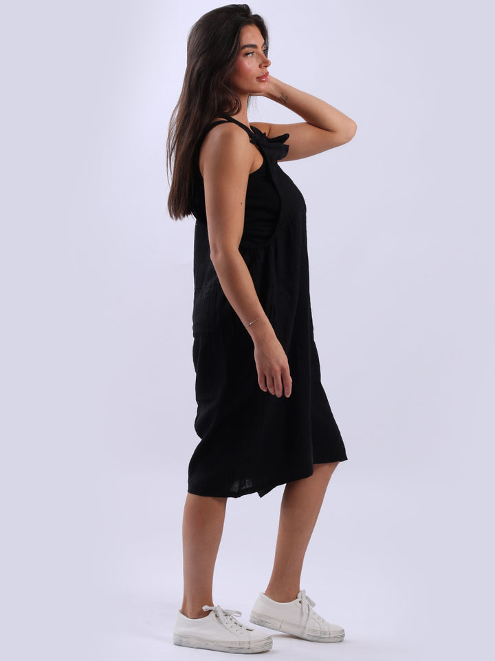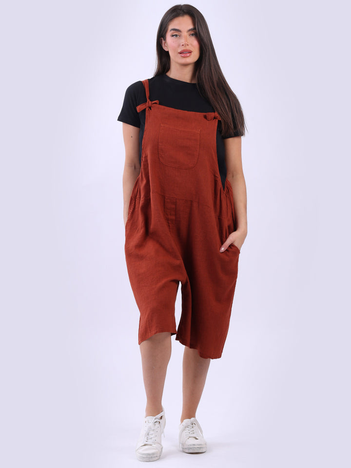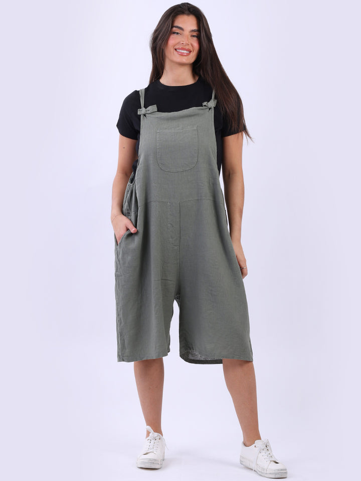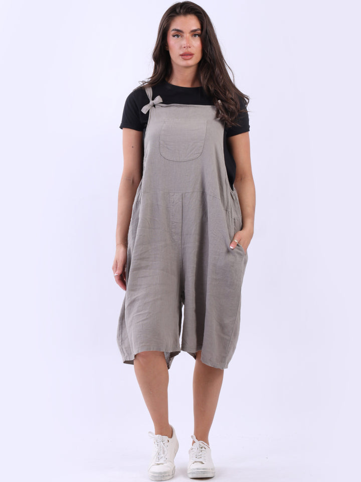 A true definition of Italian casual fashion, this plain playsuit features a square neckline with adjustable shoulder ties, elasticated ruched sides and a front pocket. Its loose-fit and light blended fabric makes it a must-have for summer seasons to make women wearers comfortable and cool all day.