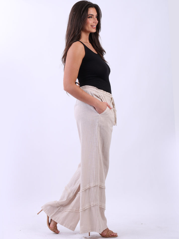 Made In Italy Plain Linen Wide Leg Palazzo Pant