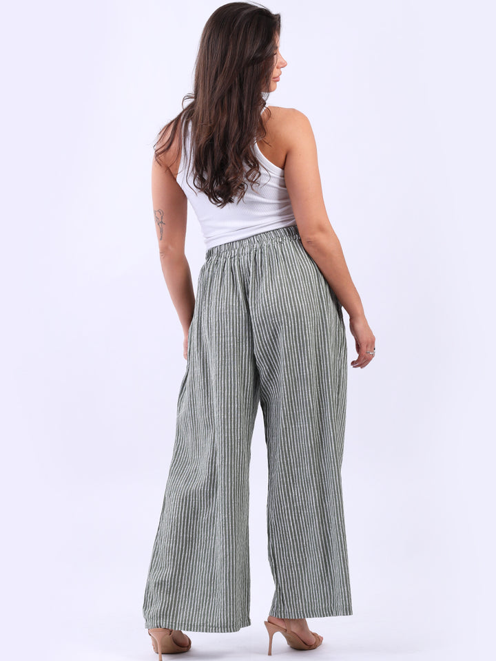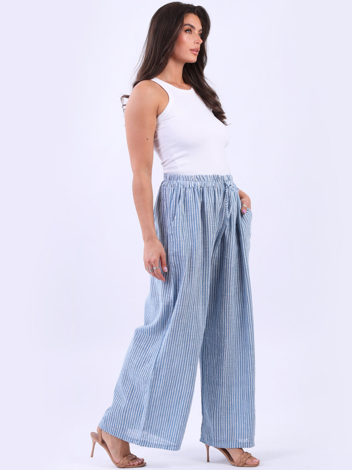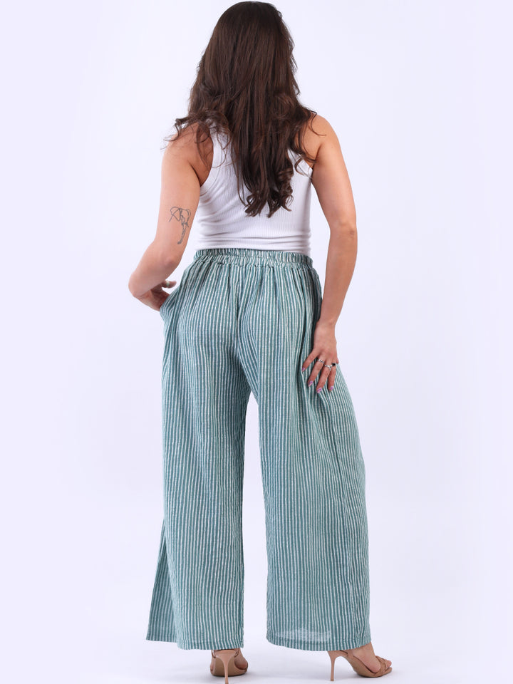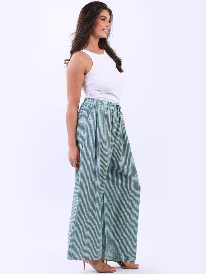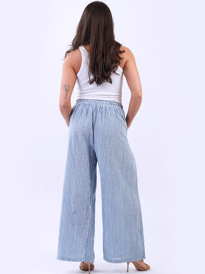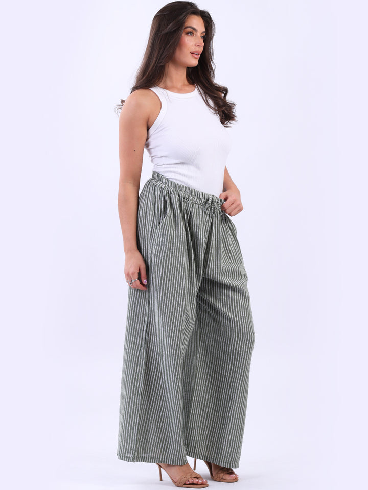 Made In Italy Wide Leg Stripy Cotton Trouser