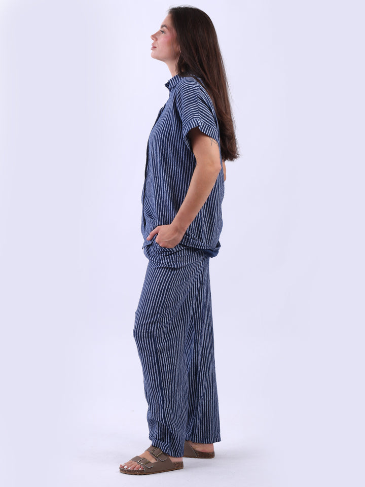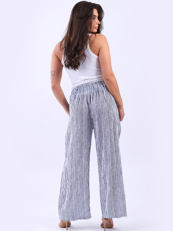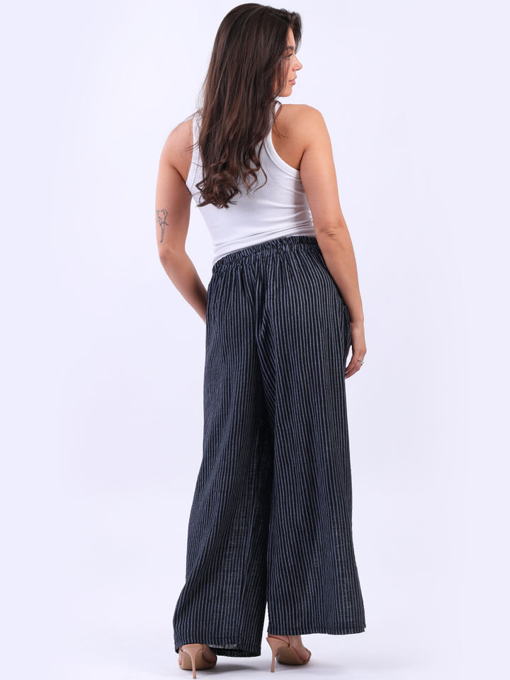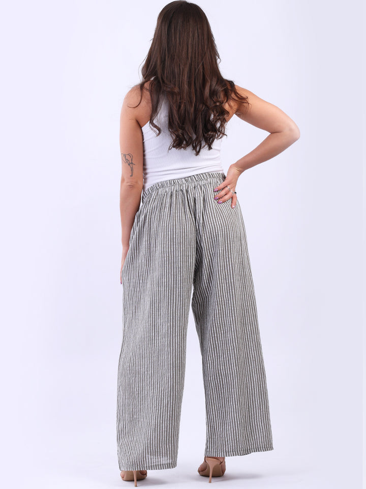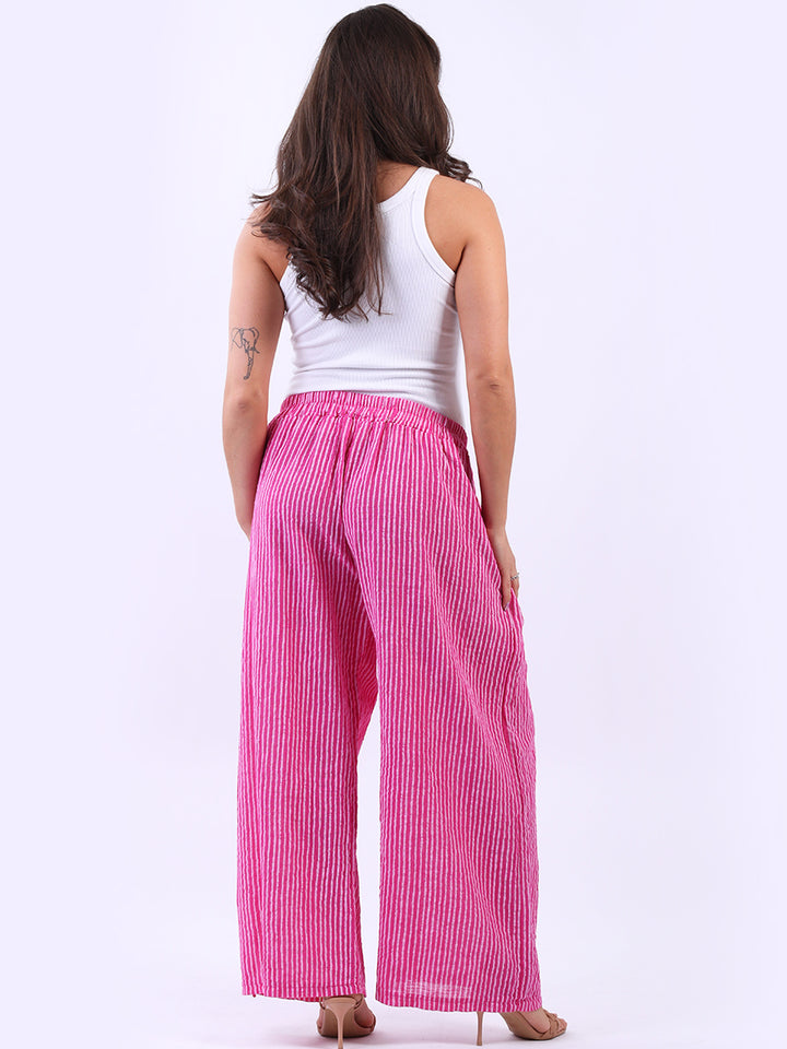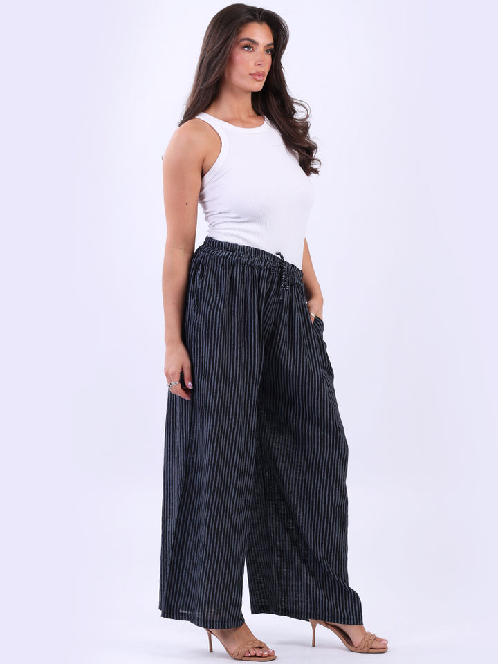 Made In Italy Wide Leg Stripy Cotton Trouser