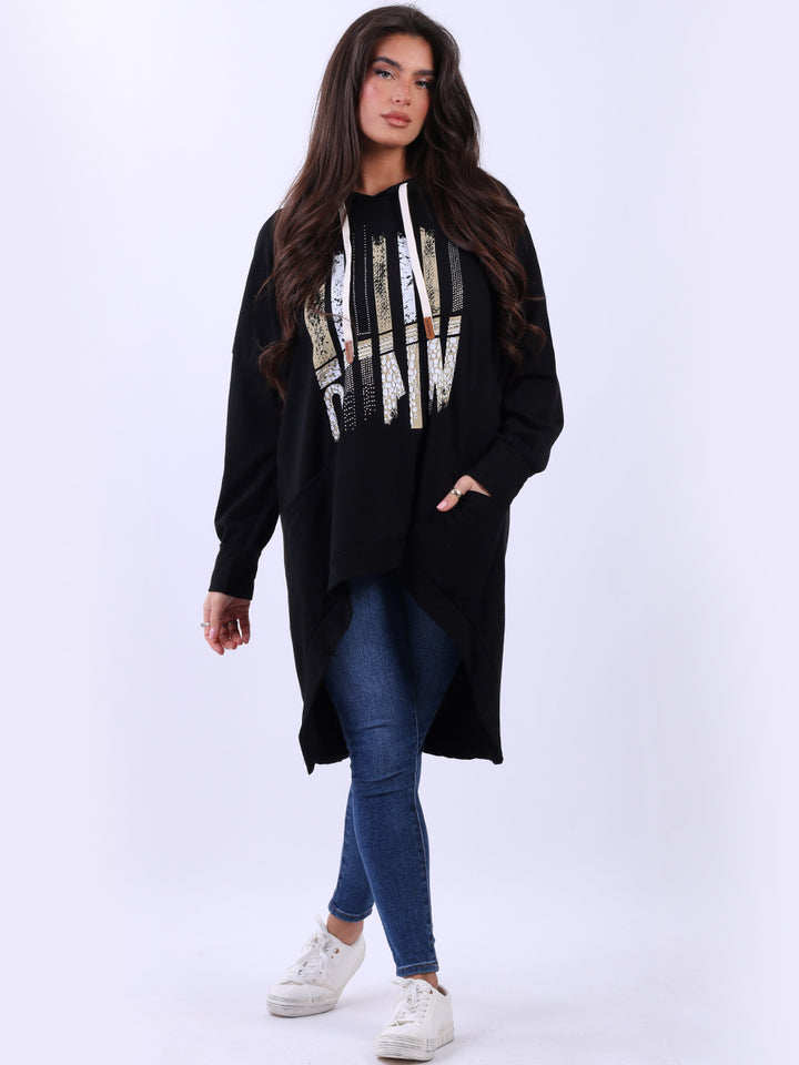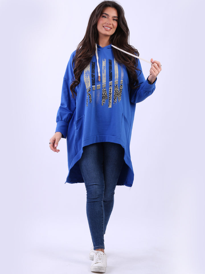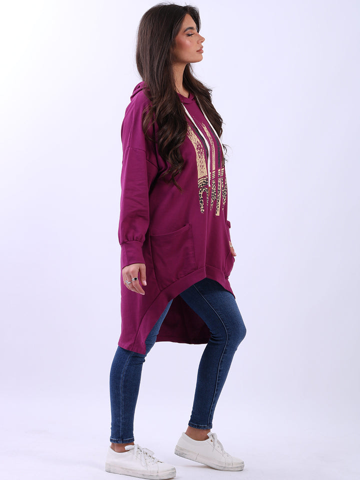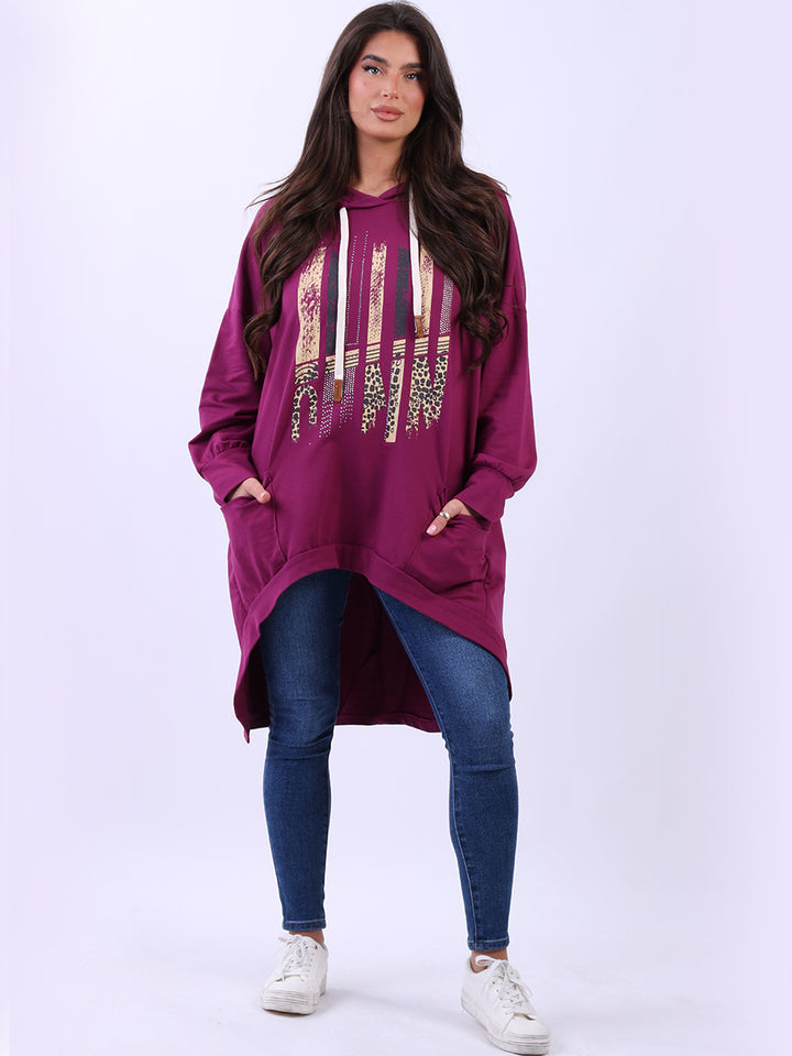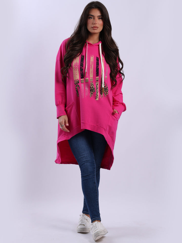 Adoring oneself with uniqueness of design and comfort is the goal for women wearers that is met by Rehwholesale London. Made in Italy with finest and high quality pure cotton, the jumper is all-season with its cozy form and features like adjustable drawstring hood, baggy plus size fit with iconic and unique animal print infused stripy print on the front. Crafted to provide comfort and style all at once for casual occasions. Ladies can easily dress it with skinny denims and platform sneakers.