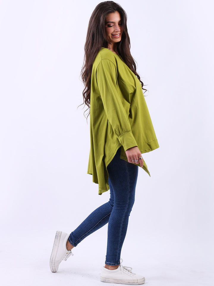 Plus Size Ladies Dipped Hem Cotton Lagenlook Top