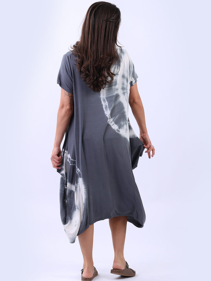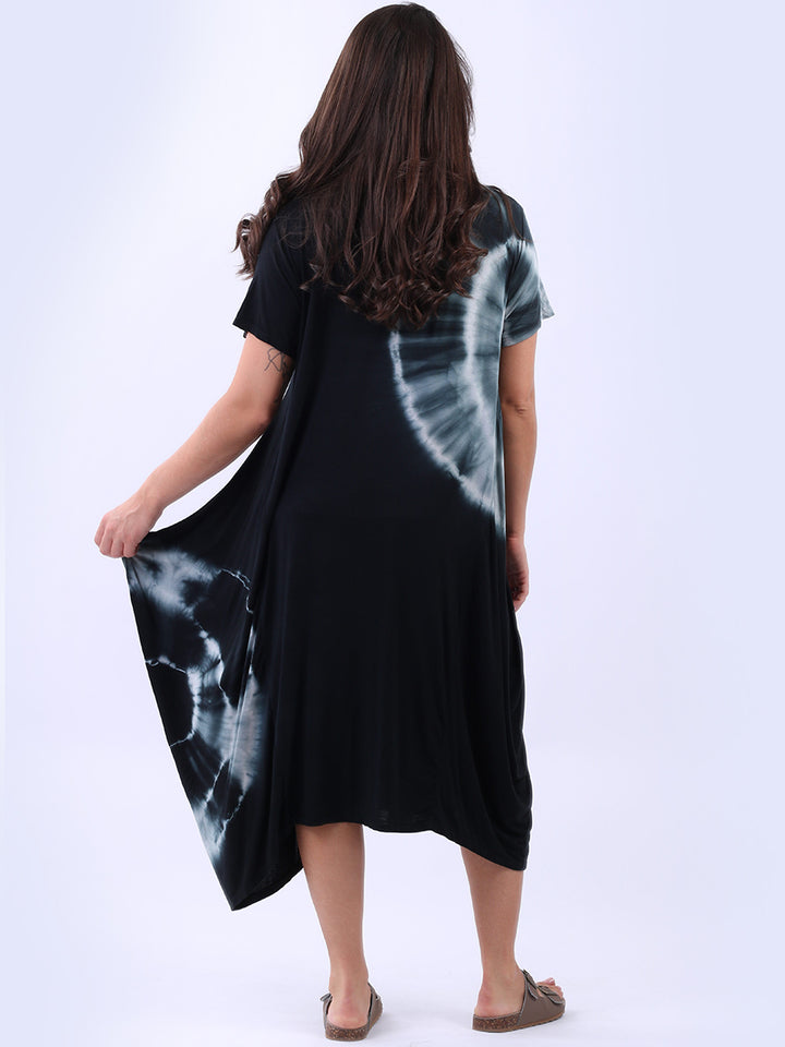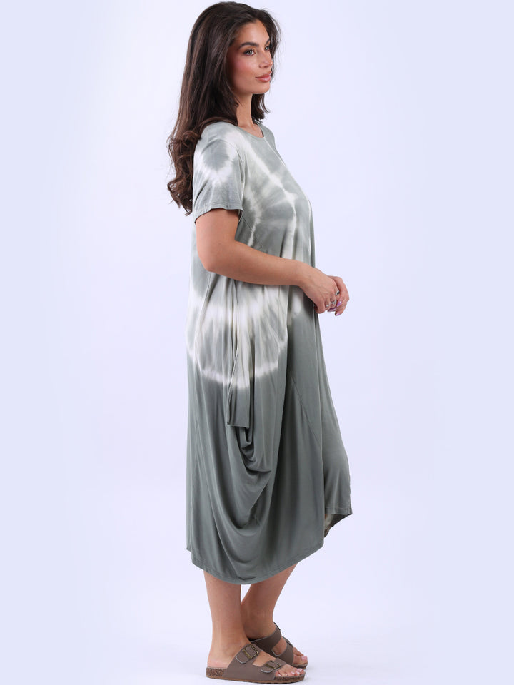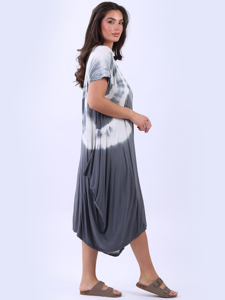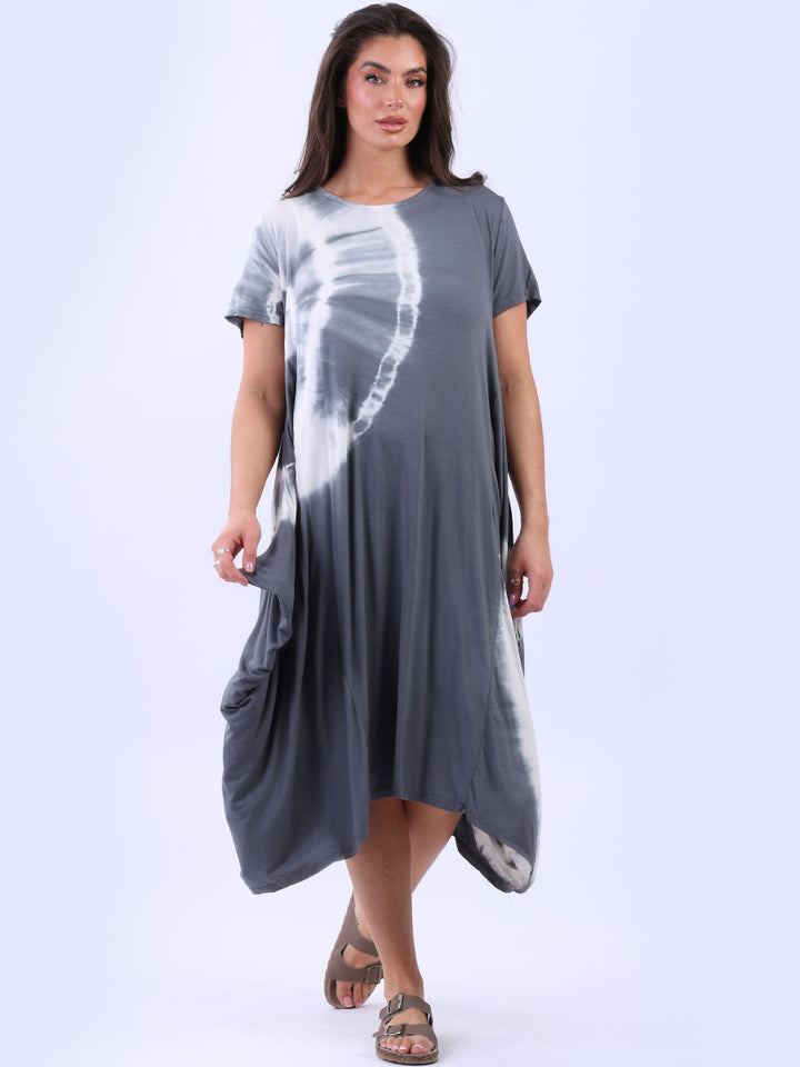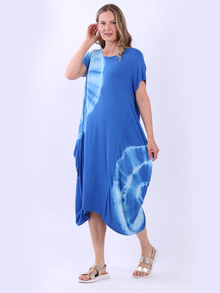 A blend of creativity and expression is this Italian maxi dress crafted from soft durable fabric, a boast to the individuality of fashion-forward women wearers. With its round neckline and short sleeves this tie dyed halo panel dress is a true definition of simplicity yet refinement. Its loose and drape style gives a flattering look to overall attire.