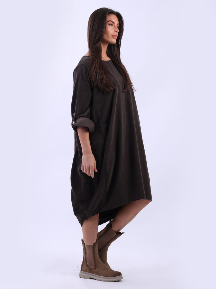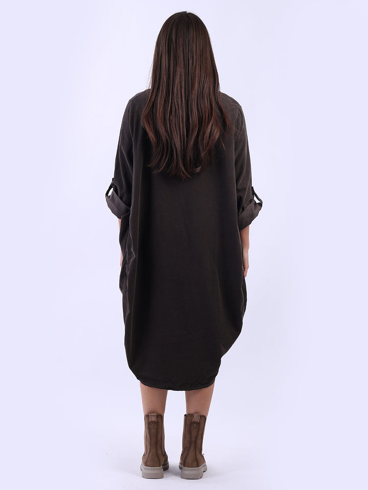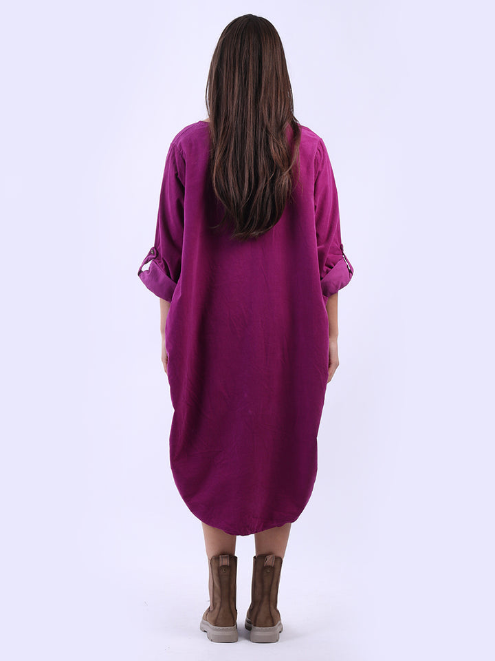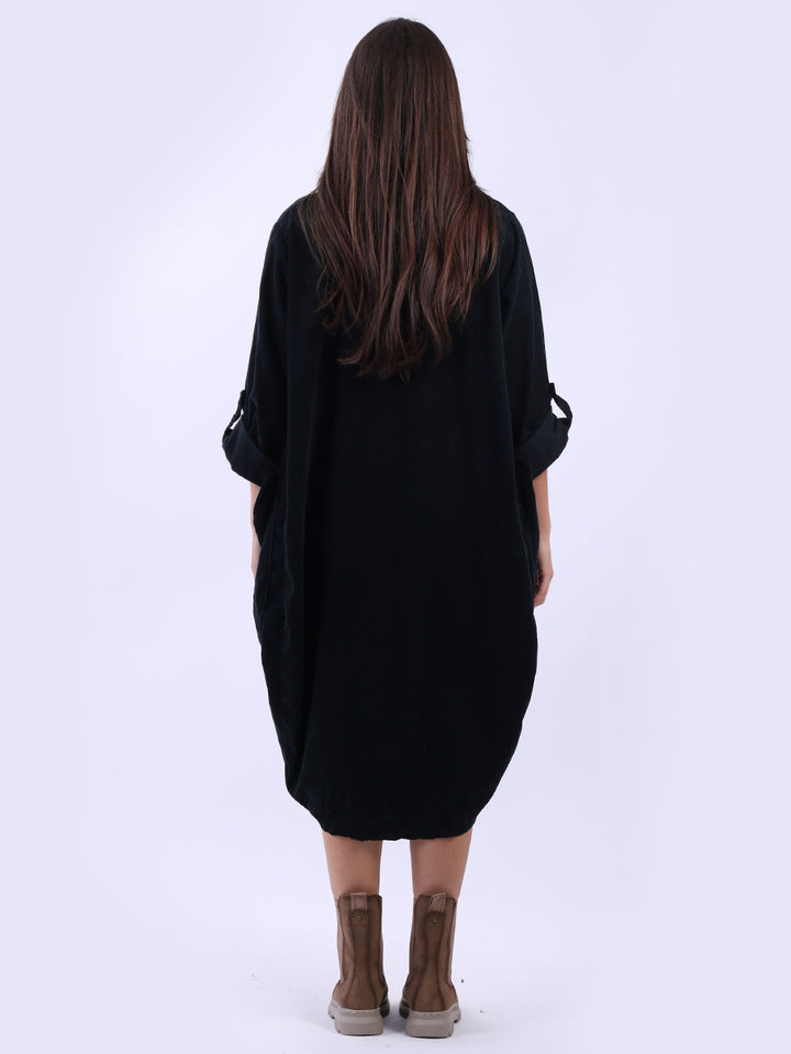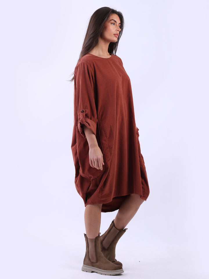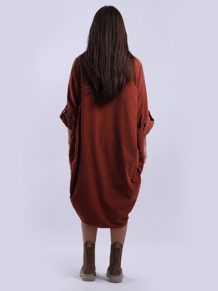 When the winter season approaches, this cotton lagenlook midi dress becomes the desired fashion piece. With its oversized fit and tabbed sleeves, it's perfect for transitioning weather. Wear it solo when the temperature heats up or layer it with a jacket when the season demands. Without any doubt, it's highly versatile.