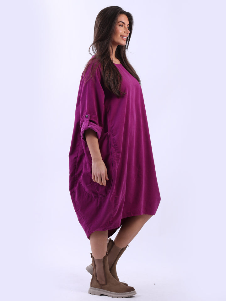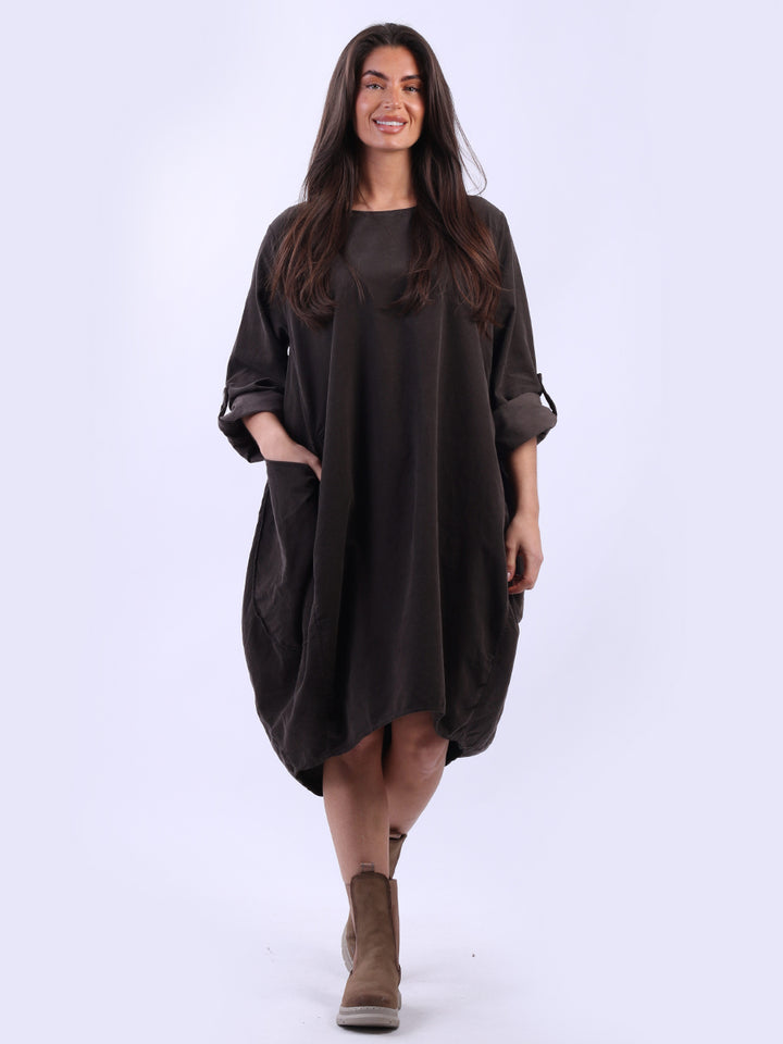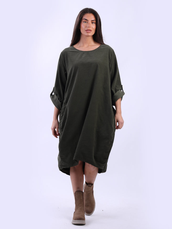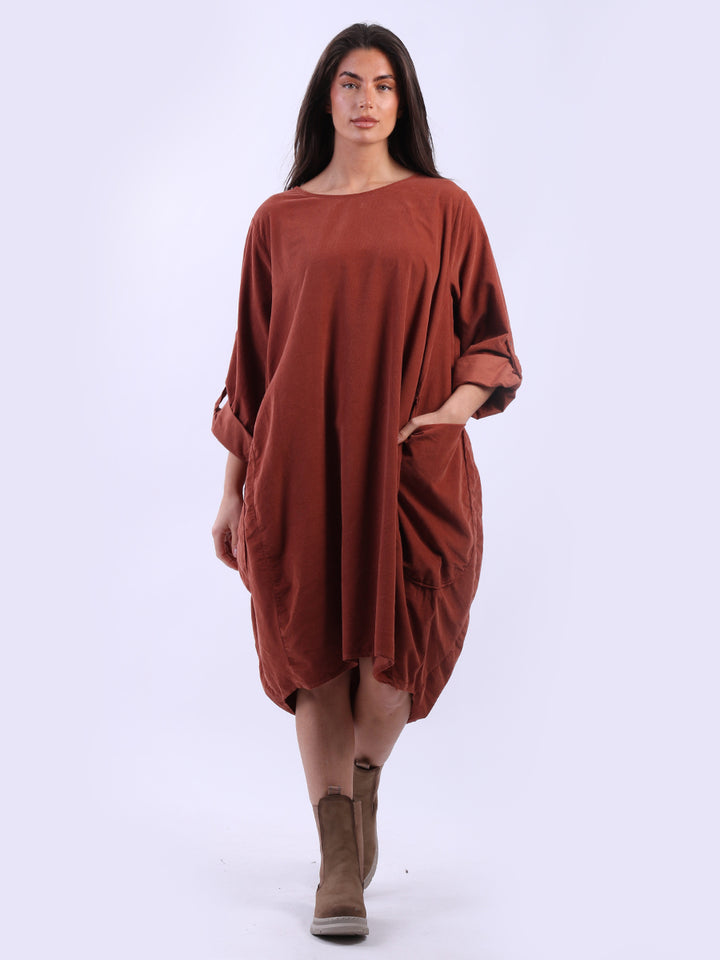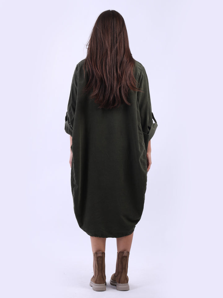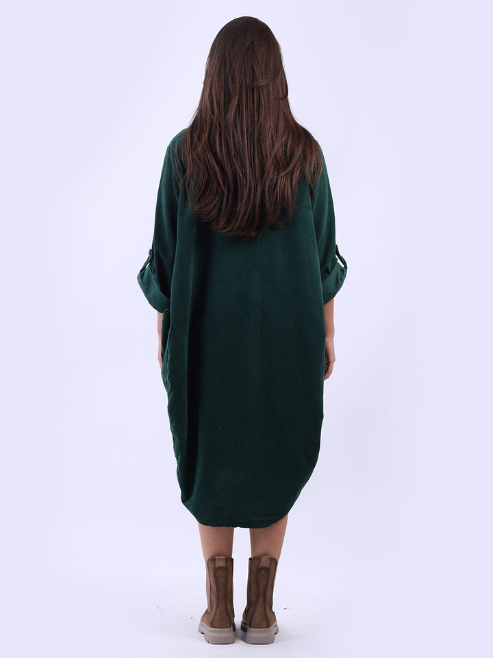 When the winter season approaches, this cotton lagenlook midi dress becomes the desired fashion piece. With its oversized fit and tabbed sleeves, it's perfect for transitioning weather. Wear it solo when the temperature heats up or layer it with a jacket when the season demands. Without any doubt, it's highly versatile.