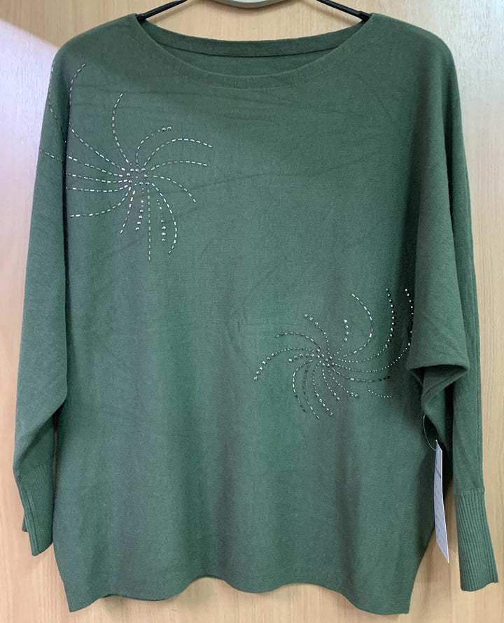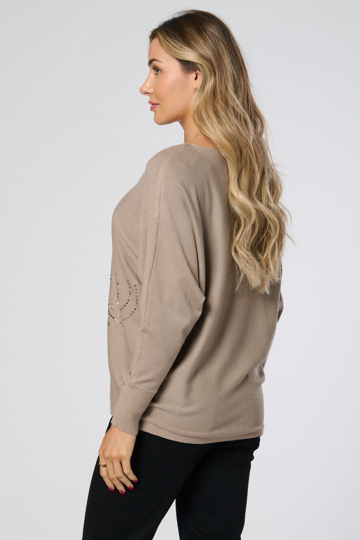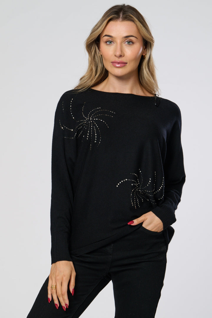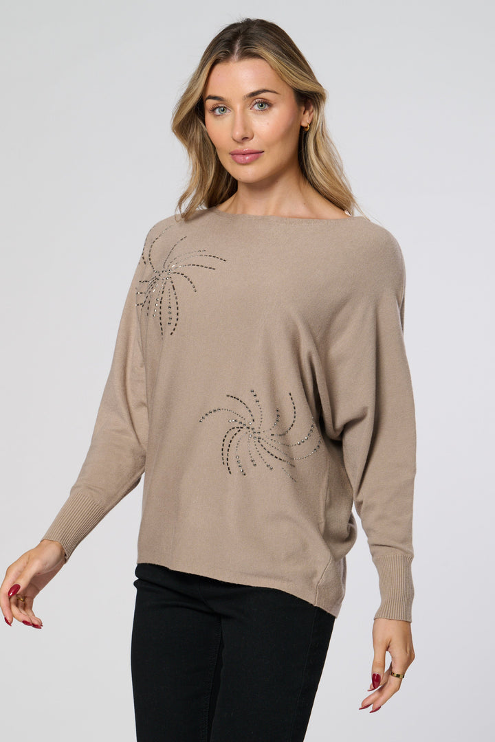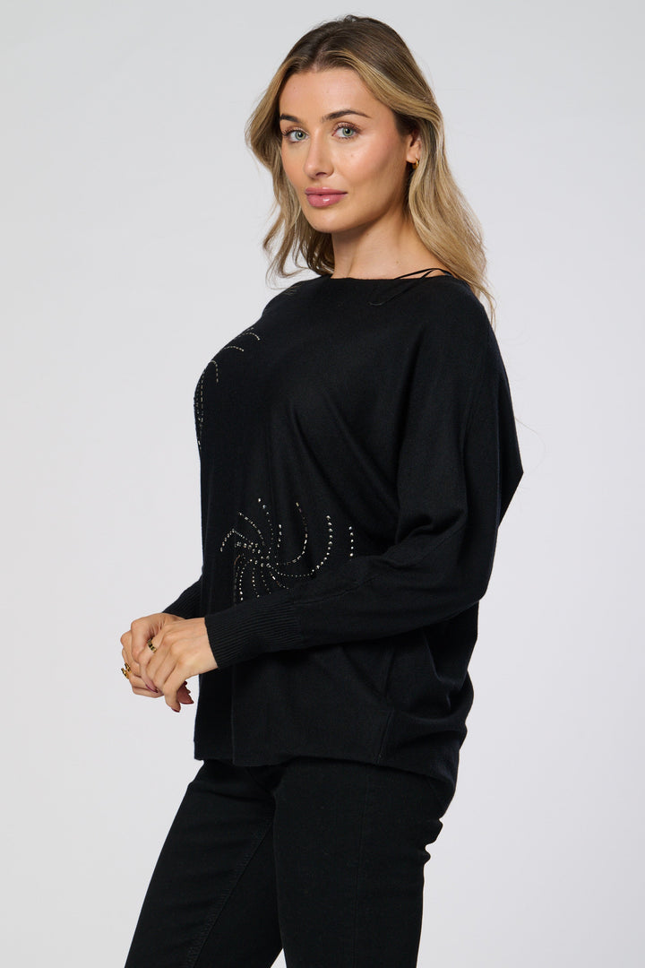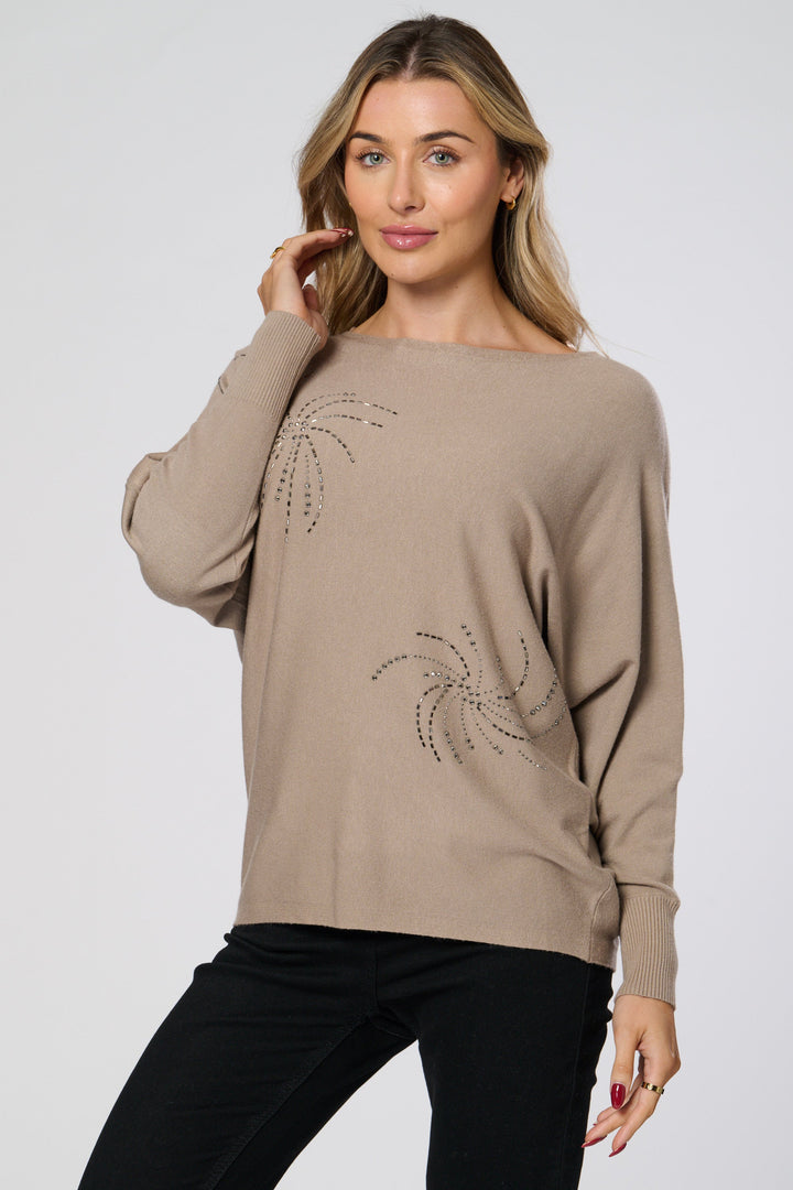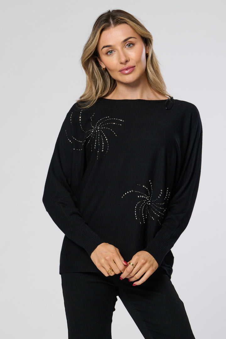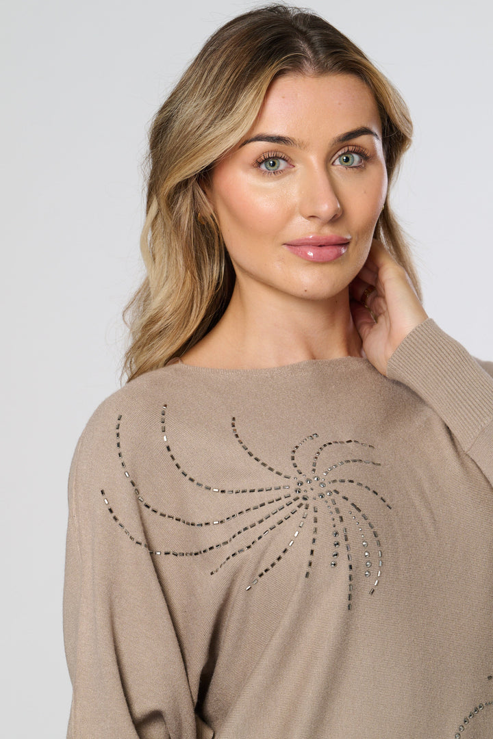 Diamante embellished knitted top with full-length sleeves and boat shaped neckline.