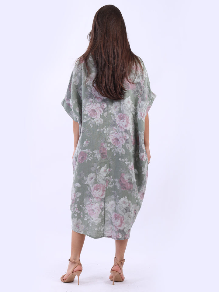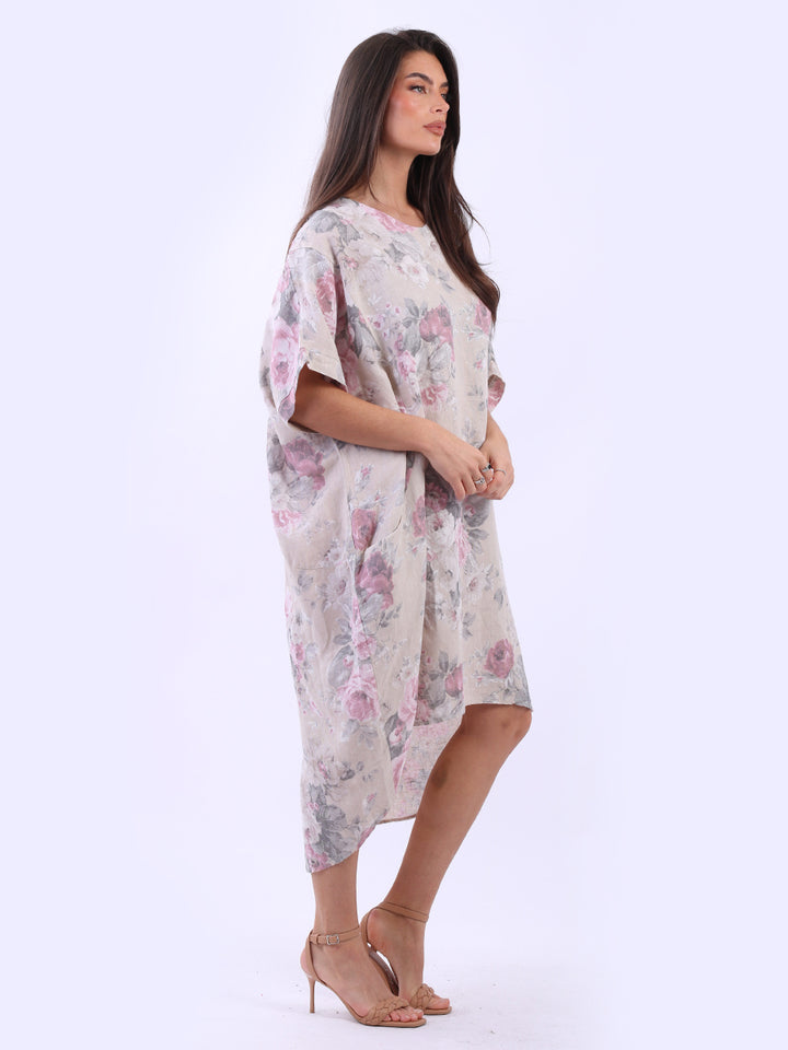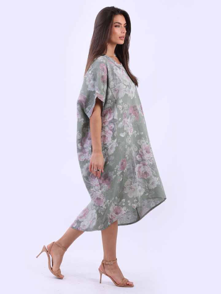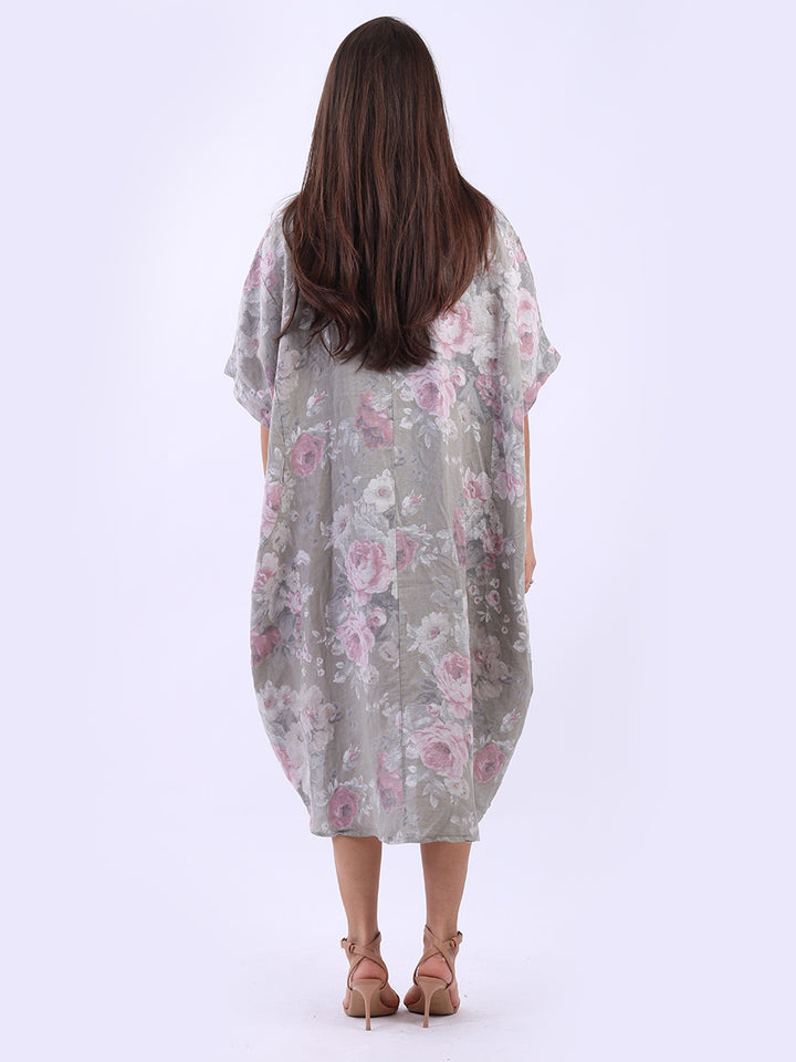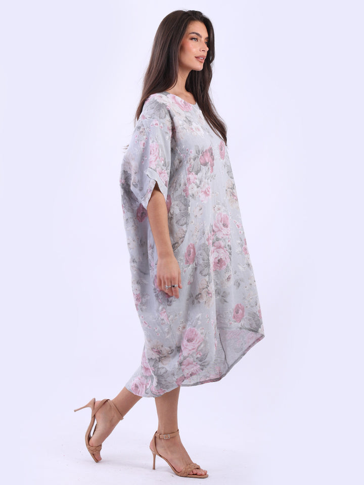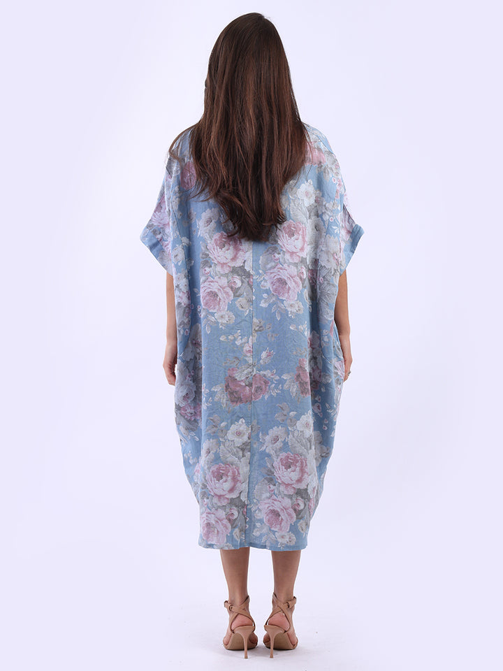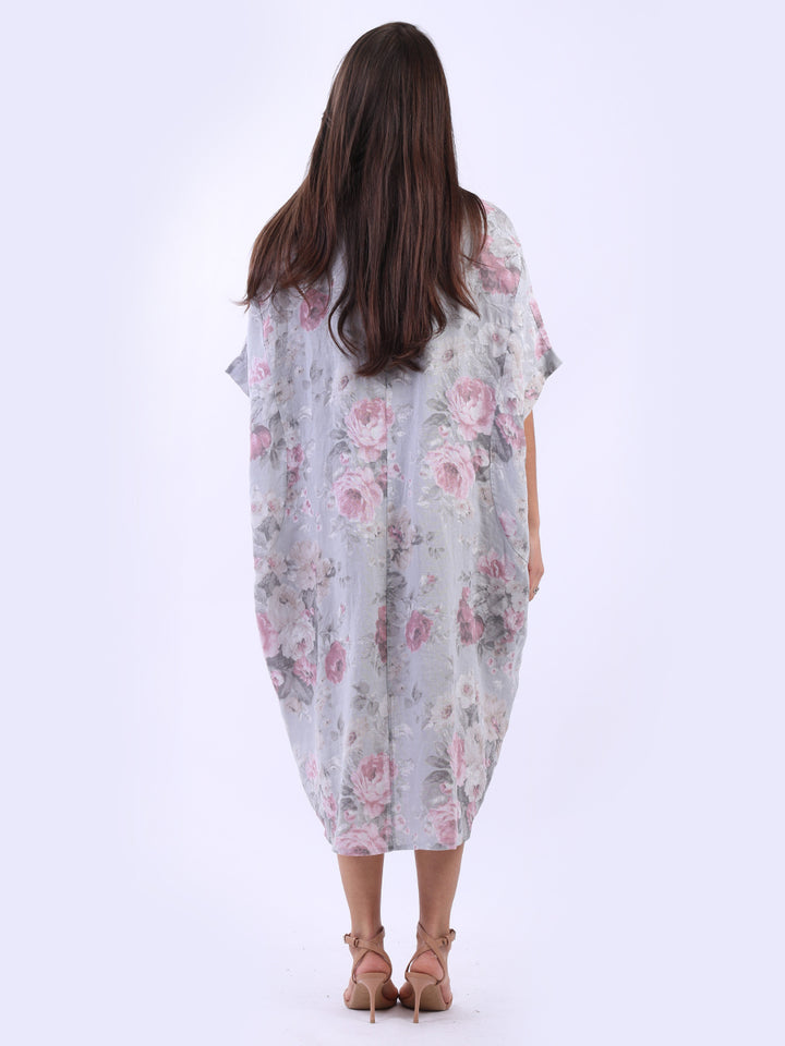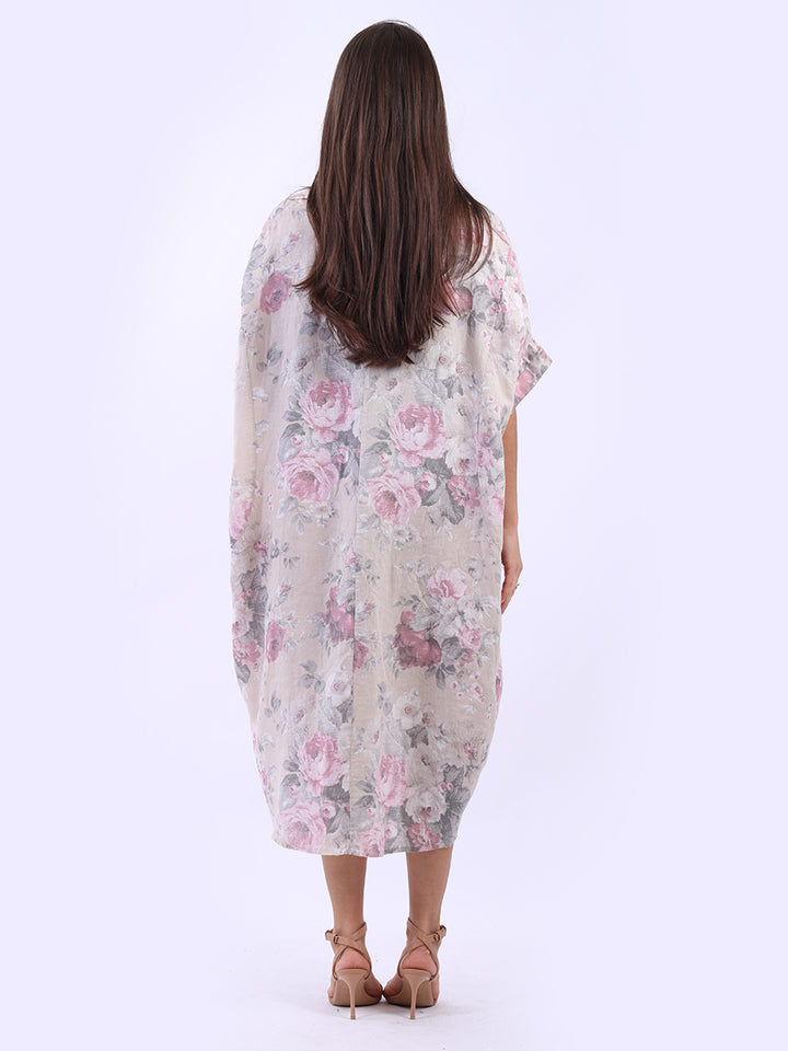 Oversized Floral Print Lagenlook Linen Dress