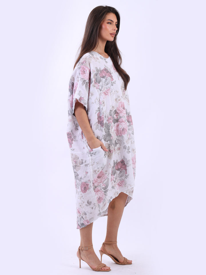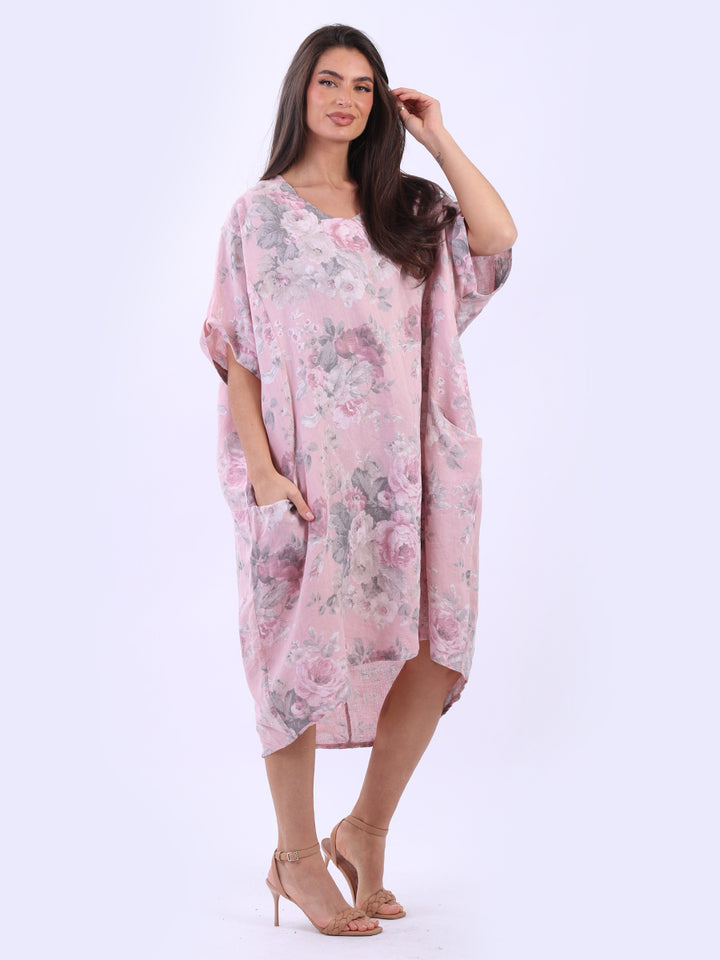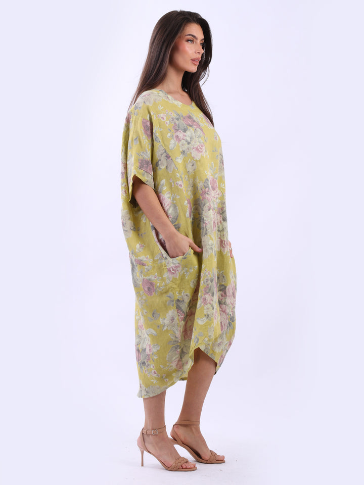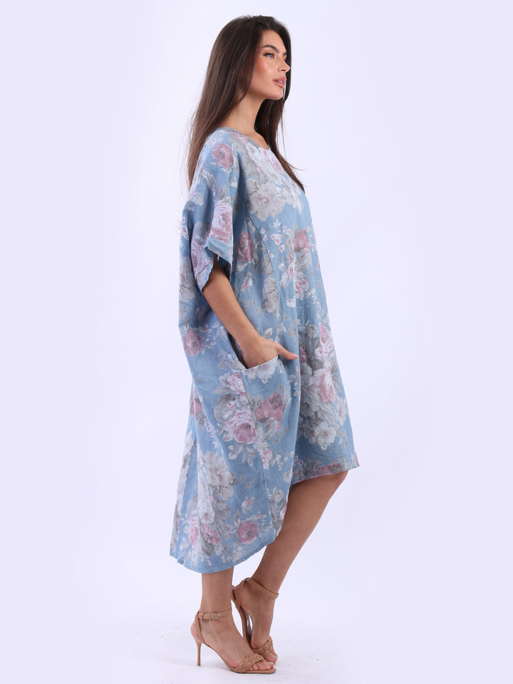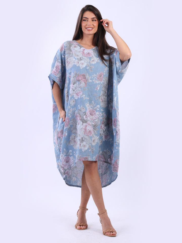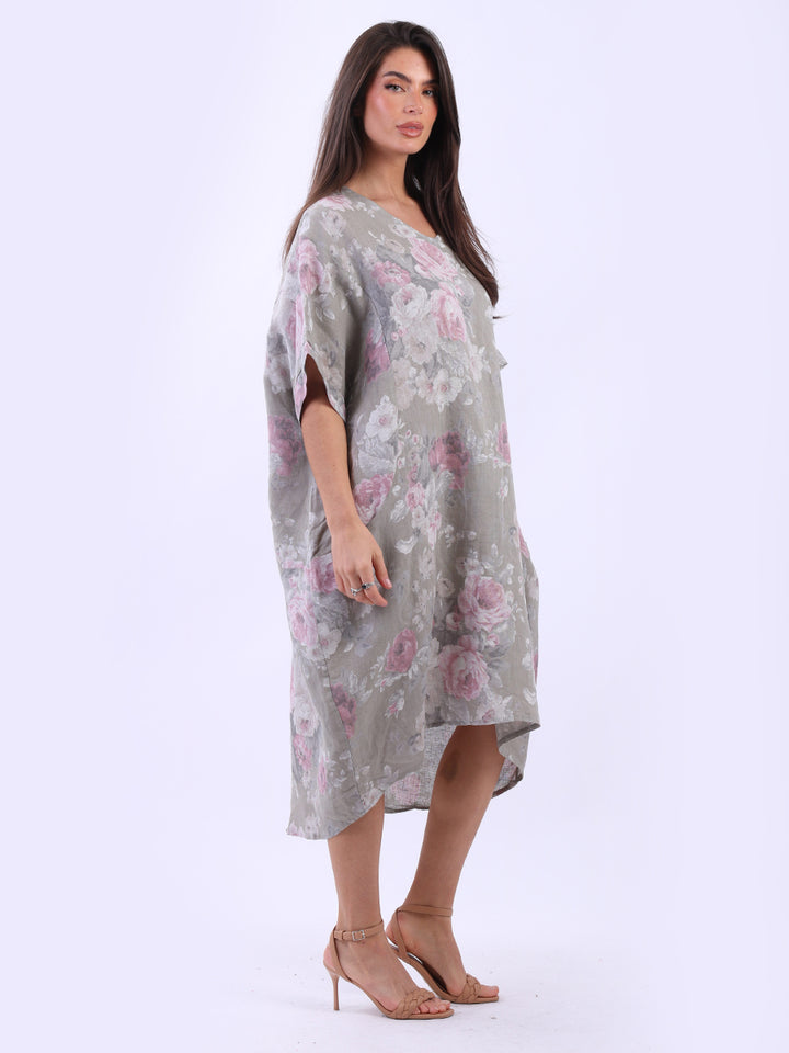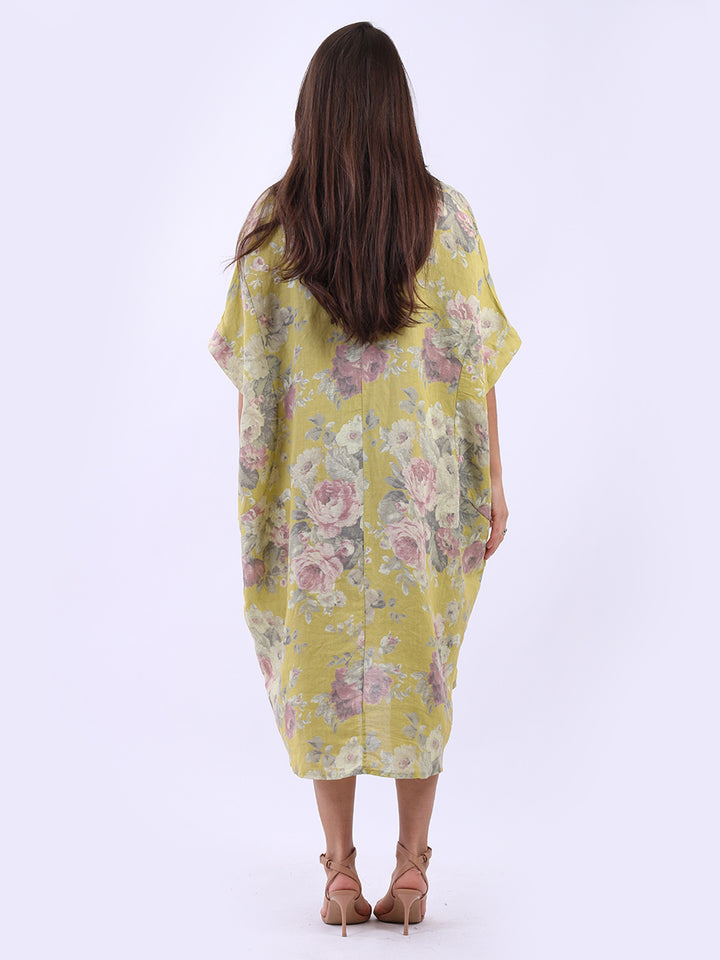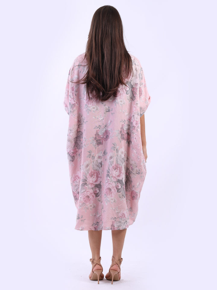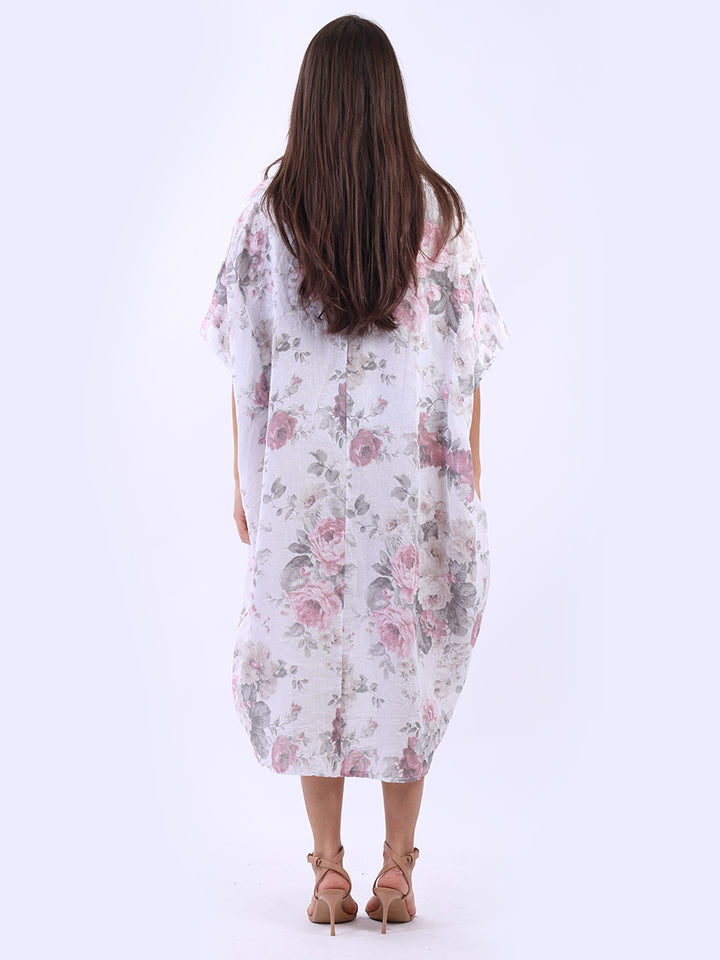 Oversized Floral Print Lagenlook Linen Dress