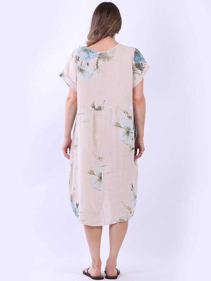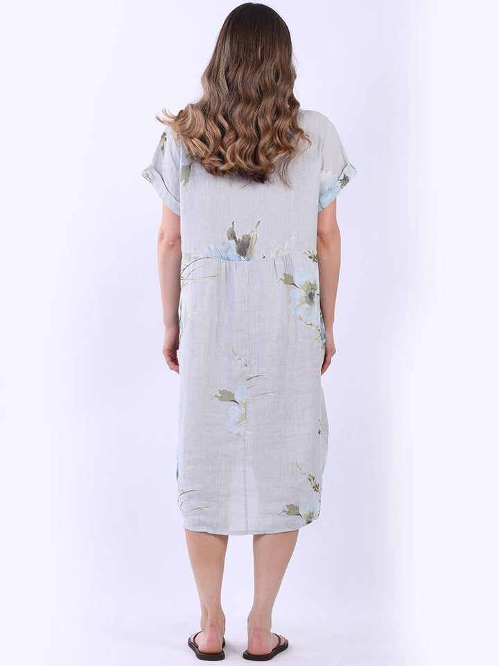 Italian Floral Linen Lagenlook Midi Dress