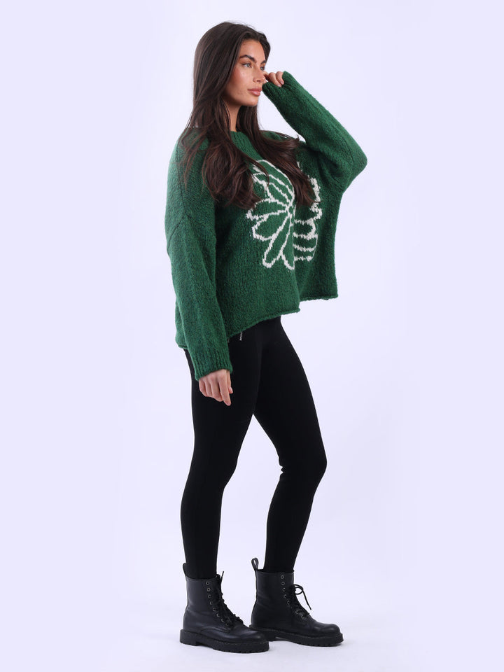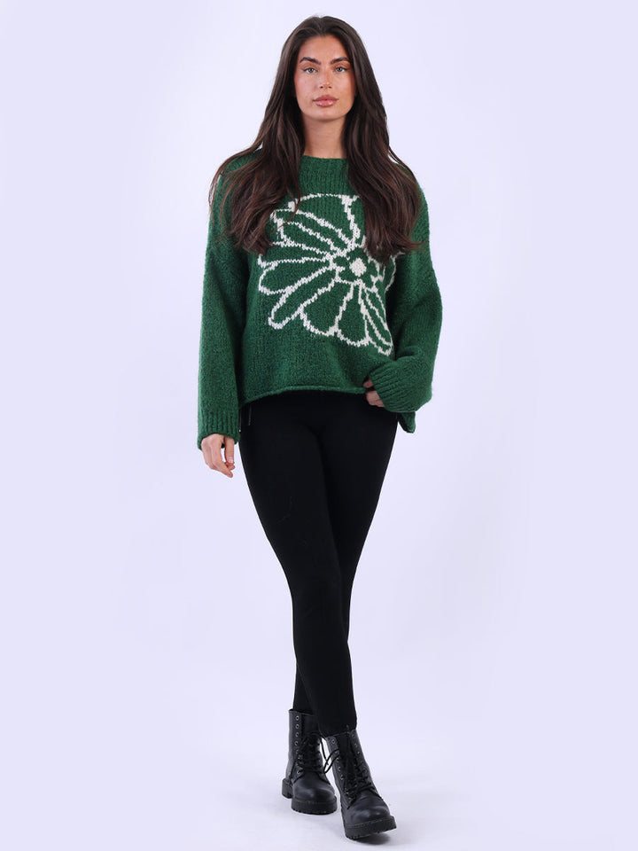 Master the art of grace and sophistication with this classy wool-knit jumper that is made in Italy. Floral pattern gives it delicate feminine vibe while long baggy sleeves and crew neck make sure of the coziness and comfort that is much needed in the chilly winter season. Women would love to make a lasting impression on their casual gatherings, wearing this oversized sweater.