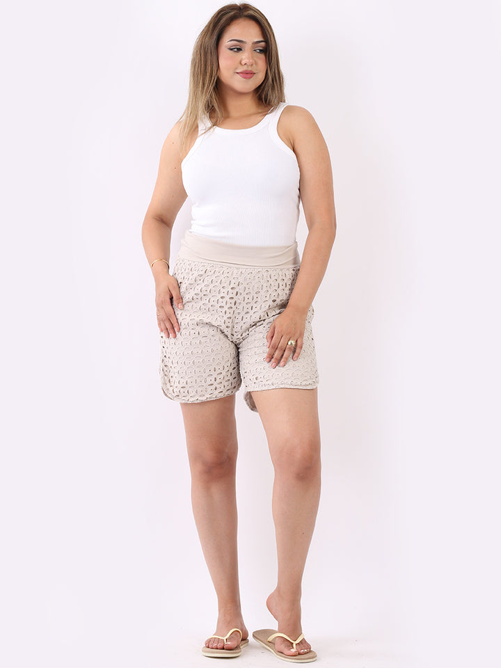 Summer in style is the target for women wearers with made in Italy stylish shorts. Real soft cotton with soft fabric waist, intricate and chic broderie that is timeless and vintage all in one. Two layer styles go well with high gladiator heels and crop tops.
