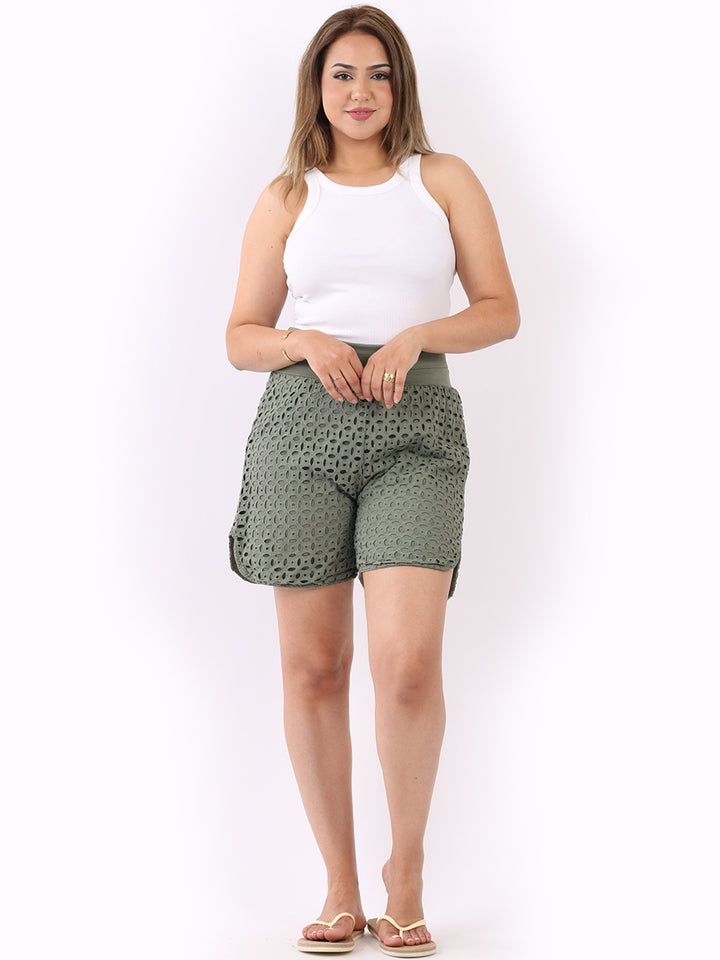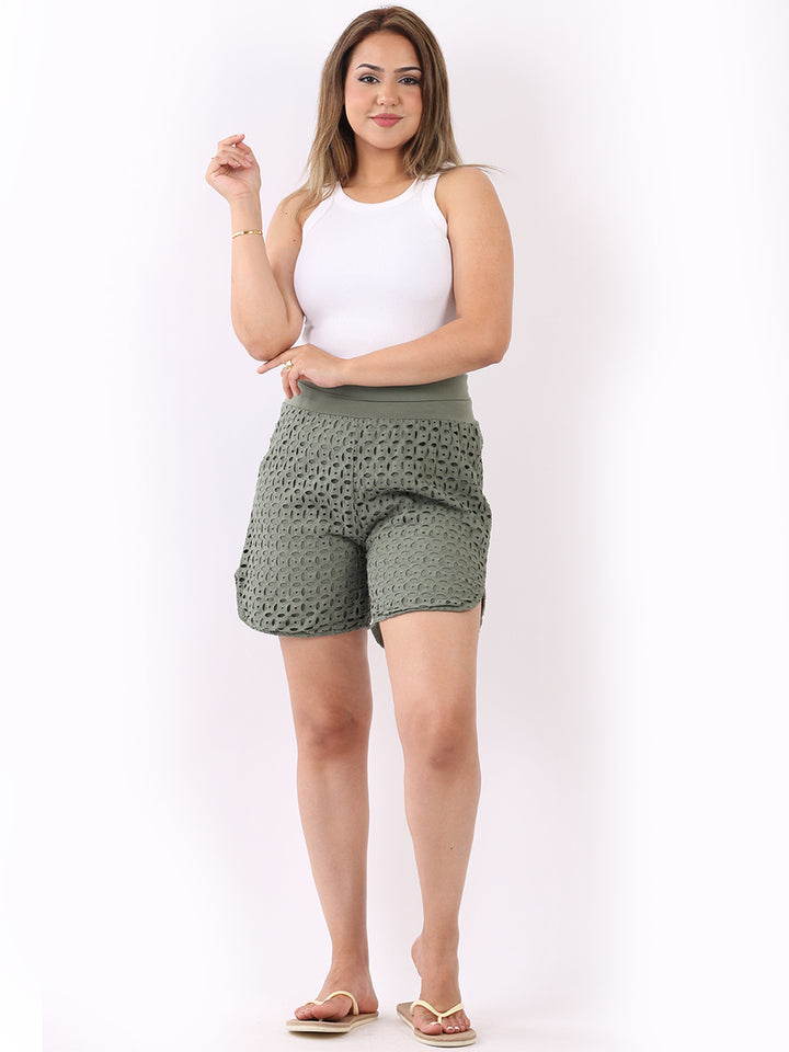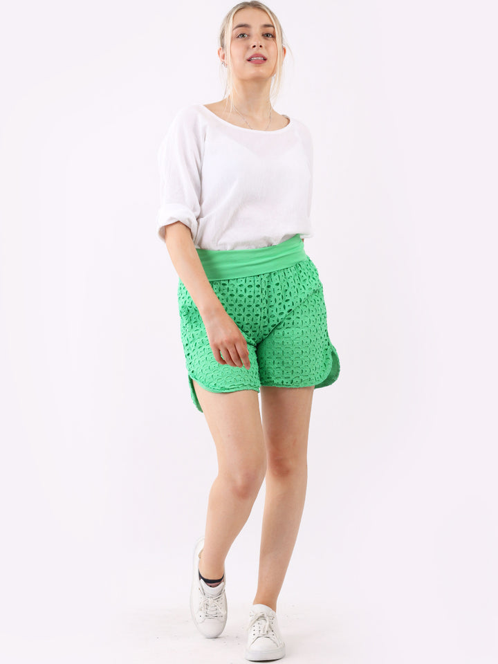 Italian 2 Layered Cotton Broderie Mini Shorts