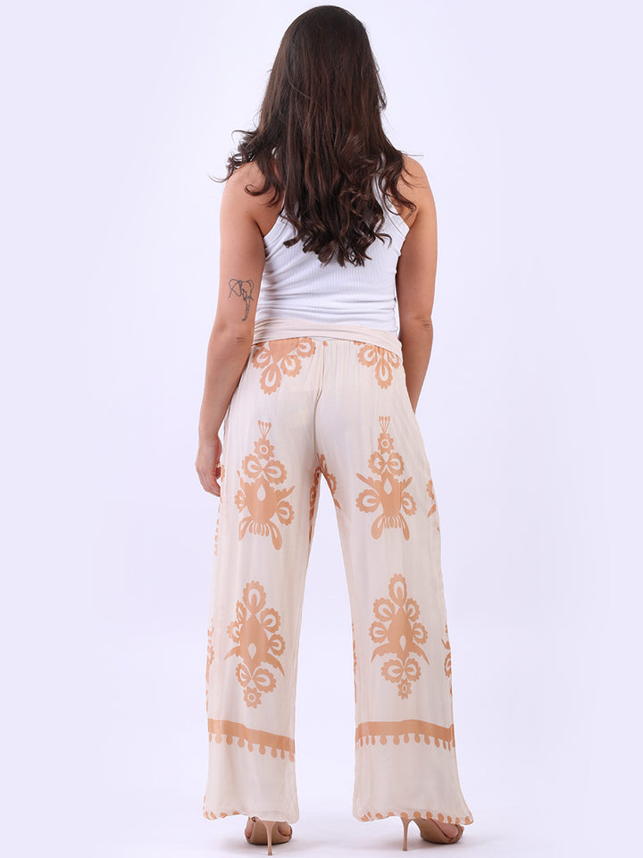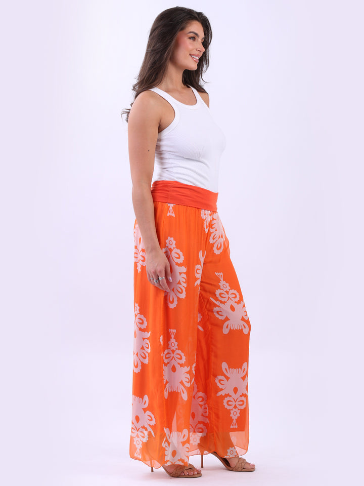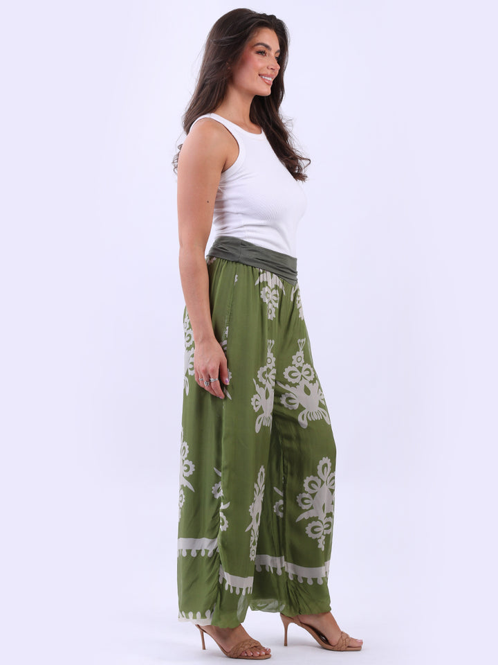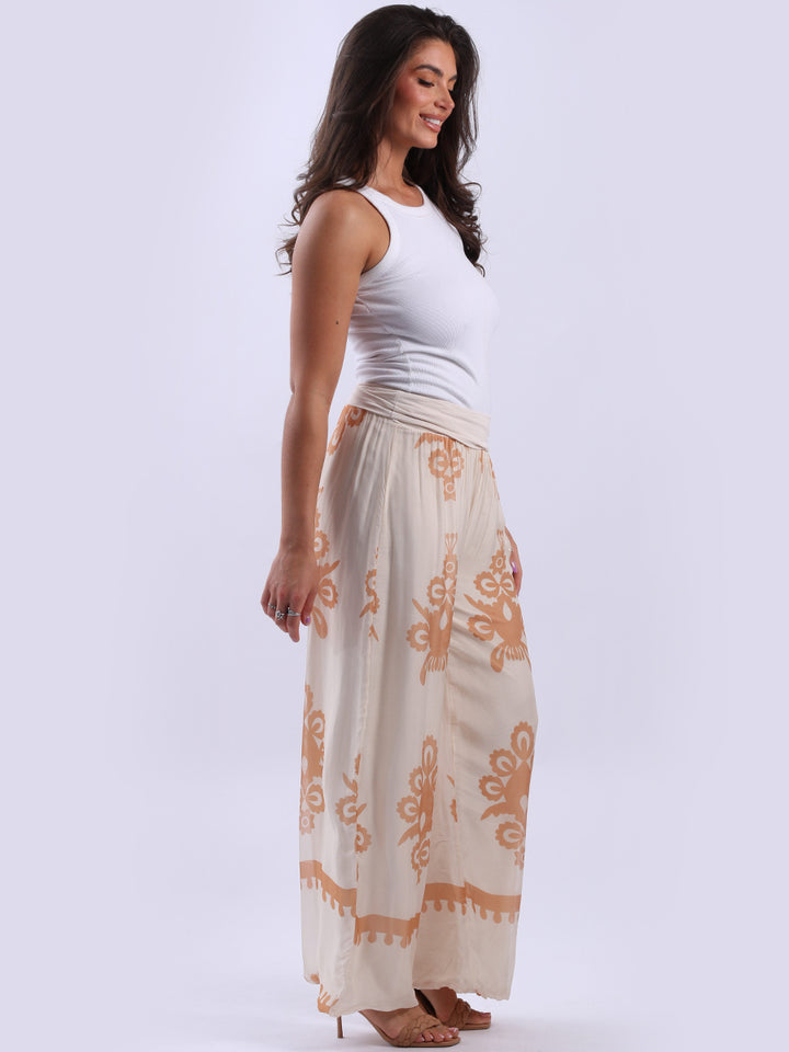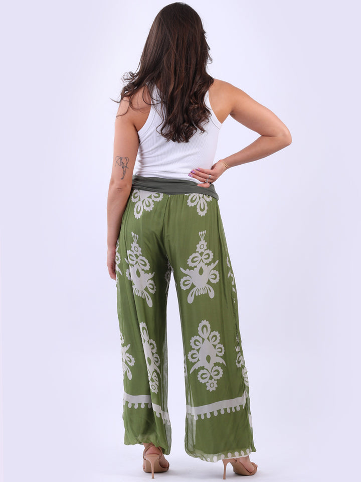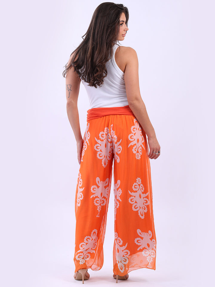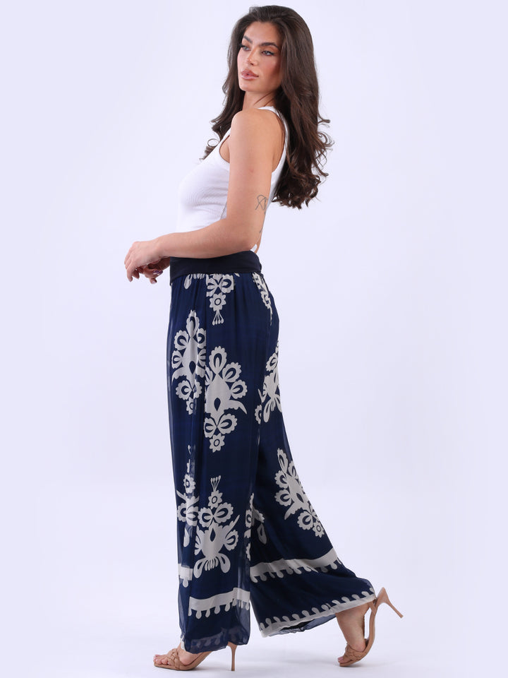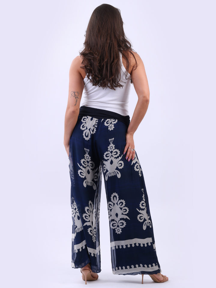 Italian 2 Layered Wide Leg Printed Silk Trouser