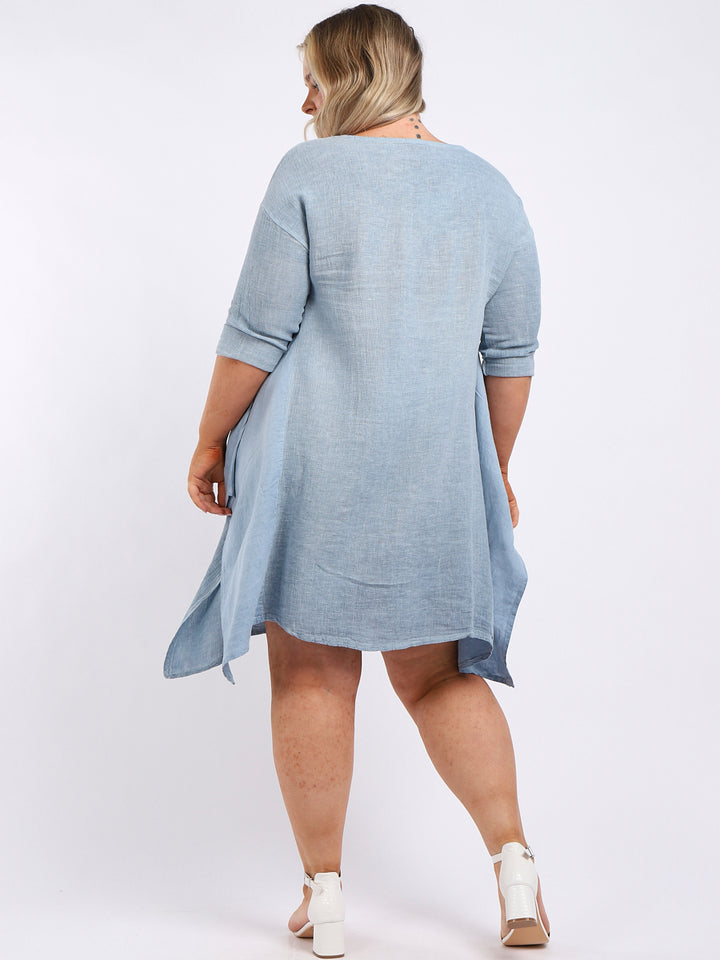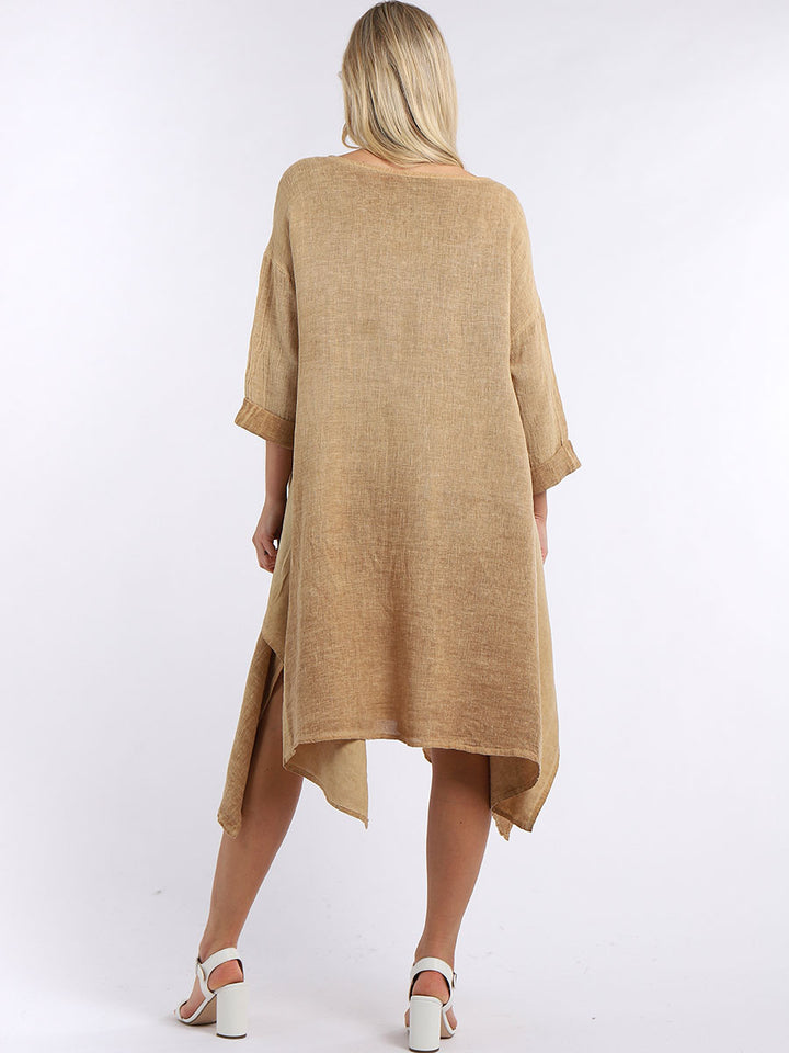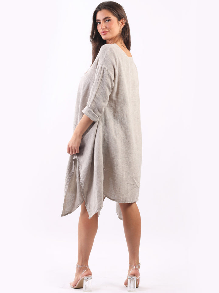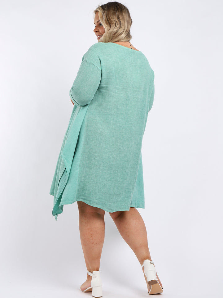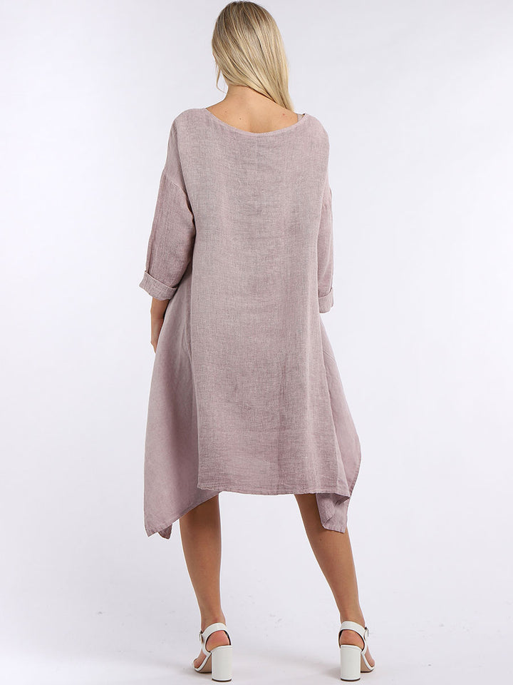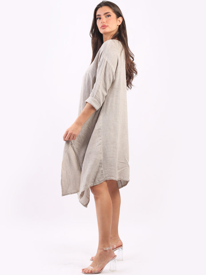 A little fun goes a long way with this pure and soft to touch and feel linen dress by Redwholesale. Made in Italy for promising quality this slouch dress is just so relaxing to look at and women wearers always adore these comfort wardrobe staples with features like turn up sleeves, tunic hem and acid wash dye. The dress would be a perfect partner for couch day in a laid back style.